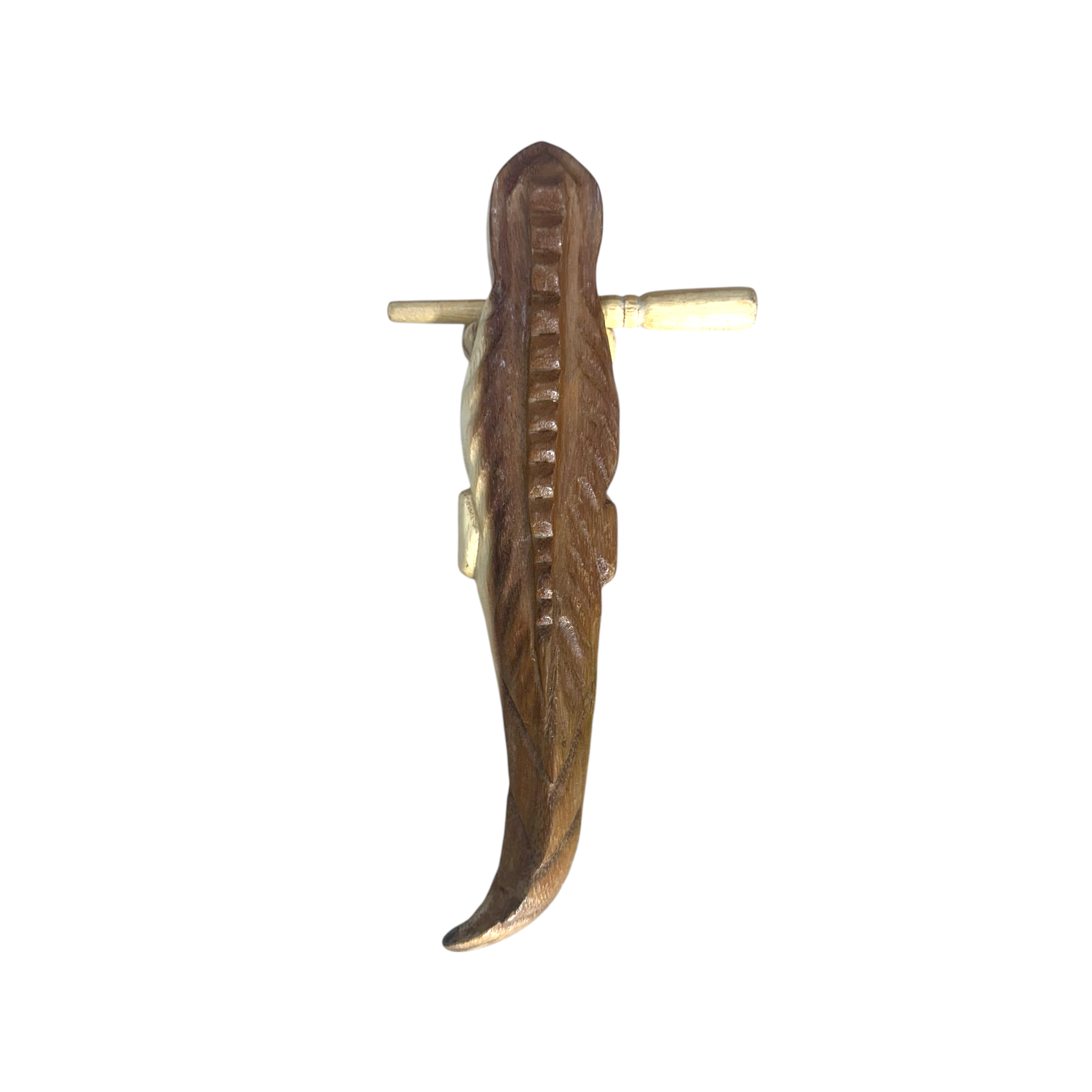 Take a walk on the wild side! Everyone knows that getting close to an Iguana is nearly impossible, but not if you purchase this wooden Iguana instrument! It is compact, crafted with care, tremendously detailed, and fun and easy to play. Simply remove the little wooden mallet from near its strong jaws and joyfully and rhythmically rub it up and down the gator’s grooved back. It feels smooth yet bumpy, like an Iguana itself, and was meticulously carved and lightly stained by hand in Thailand. A truly unique collector’s item or gift to give a host of a party; it will also become your child’s new favorite musical toy. Encourage them to make and keep various beats and create new and interesting songs about sneaky alligators. It will adorably adorn shelves in children’s’ rooms or make an interesting decoration in rooms that have a jungle theme or animal flair.ure all around, and several ridges that are intricately detailed, and its small, gleaming eyes add a realistic touch. It has a small hole in the side of its mouth to hold the wooden mallet when it is not in use. Gently stroke the iguana’s spikes or tap him on his tummy to produce a fun and vibrant beat. It makes a great gift for children who love to make music and serves as a collector’s keep sake that they will be able to pass down from one generation to another.