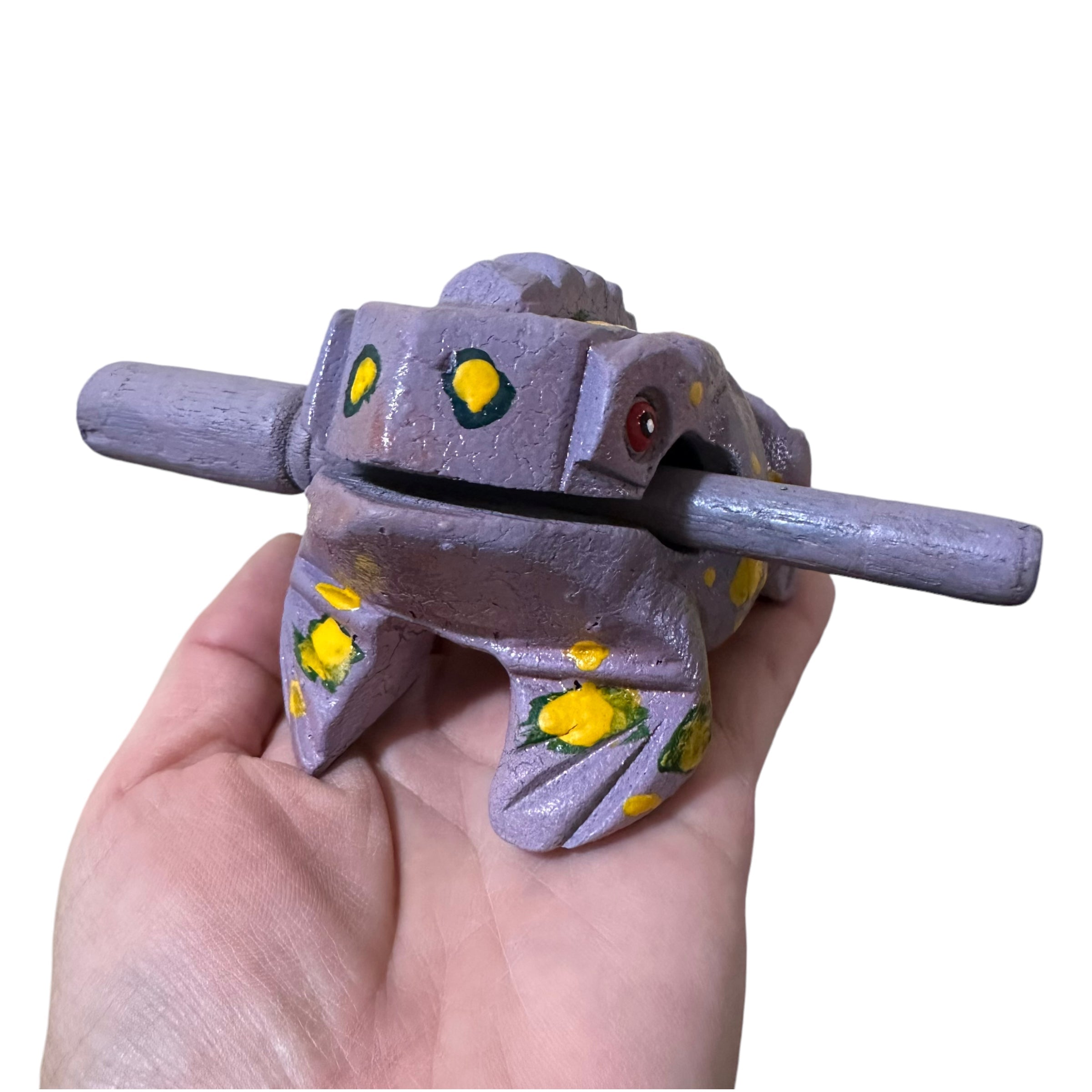 You can enjoy the soothing sound of a frog any time, and anywhere! Completely unique, the wooden croaking frog really does sound as it does in nature when you gently use the small wooden mallet and stroke its back, enabling it to make a croaking, “ribbit ribbit” sound. The wooden croaking frog is completely handmade and uniquely constructed in Thailand, covered in detail and constructed with quality craftsmanship. Rest the mallet in the mouth of the frog for safe-keeping and remove it when you are ready to play. The wooden croaking frog makes a great gift for frog lovers of all ages; or for children who express an interest in animals, music, or simply need to keep their hands busy. After all, the soothing sound of a frog beats the beating of a drum or strumming of a guitar! Plus, it’s affordably priced and makes a great collector’s item for all to enjoy for years to come.