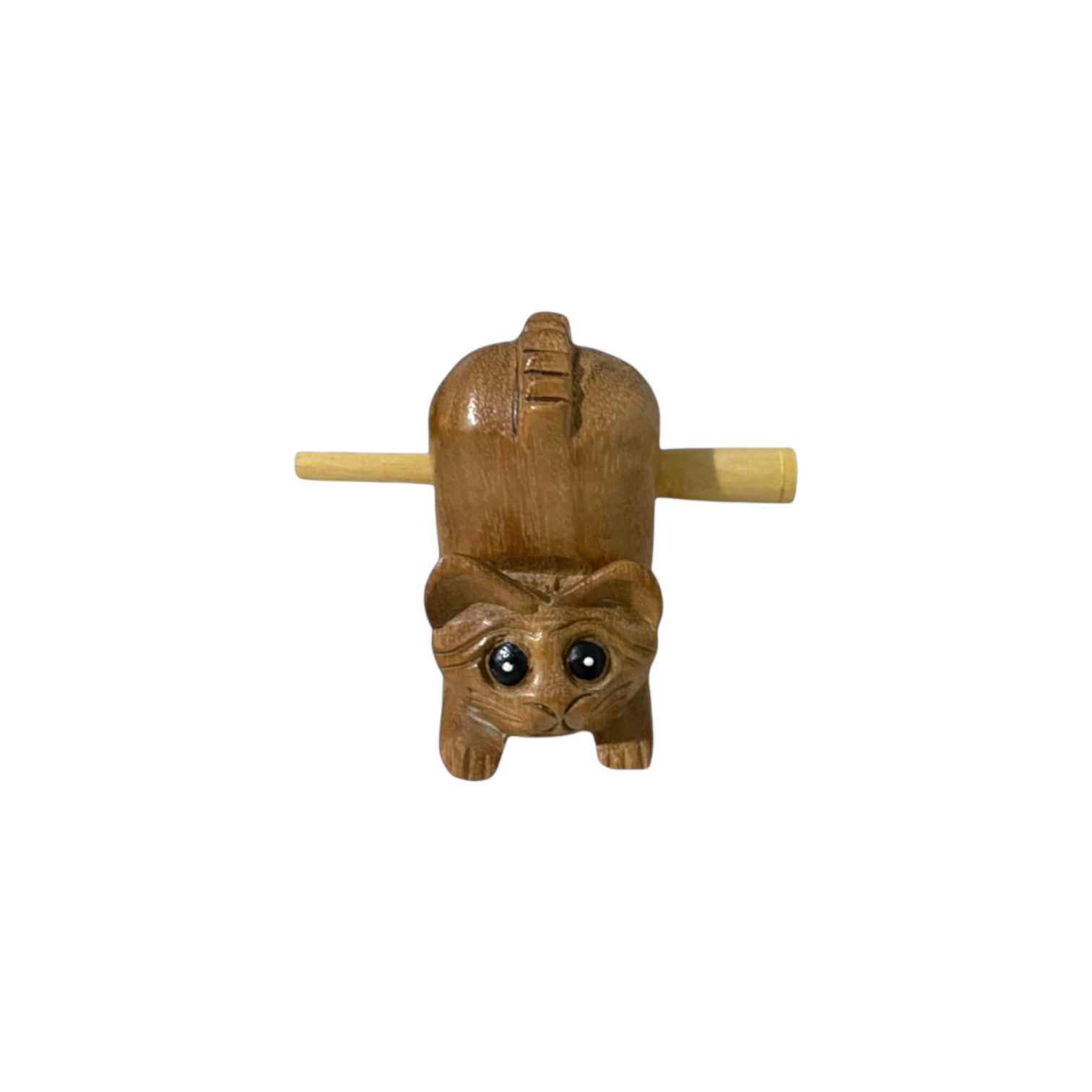 Meow! This pretty kitty isn’t just a cute decorative wooden knick knack; it is a delightful, playable instrument that is 100% handmade and 100% utterly unique. Made in Thailand, this carved cat is carefully constructed and allows you to stroke its back or tap on its tummy to create original sounds and beats. Use the small, wooden mallet which is kept near its back side for safe keeping; encourage the kiddos to march around the house to the beat of their own liking. The little kitty is fully detailed in each and every way; from its carved legs and whiskers, to its precious small eyes, and even its realistic hunched back. It is a great gift to give the children in your life who love animals and felines, or who simply like to get their hands on musical items and let their creative side show!