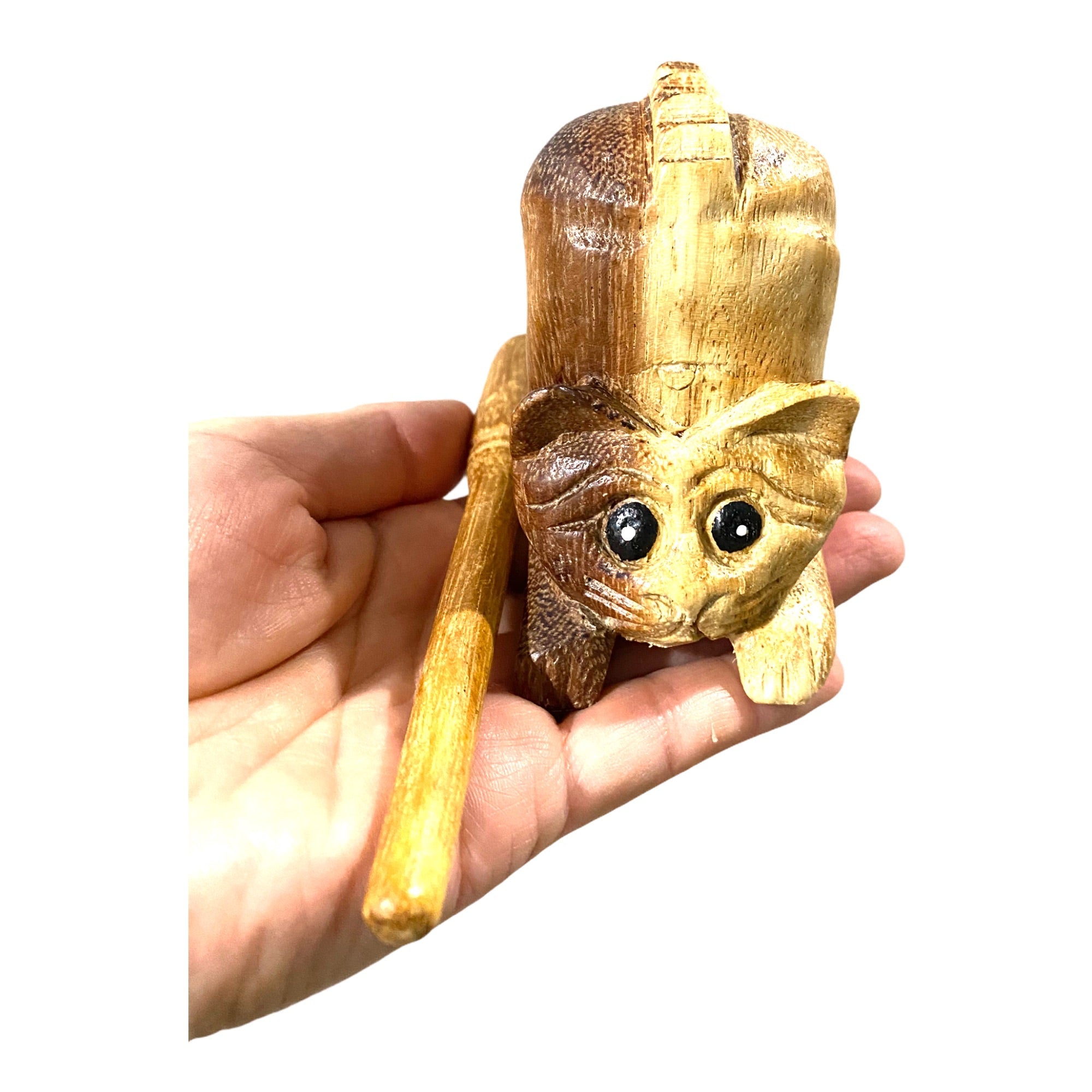 4" Musical Wooden Cat Percussion Whistle Instrument