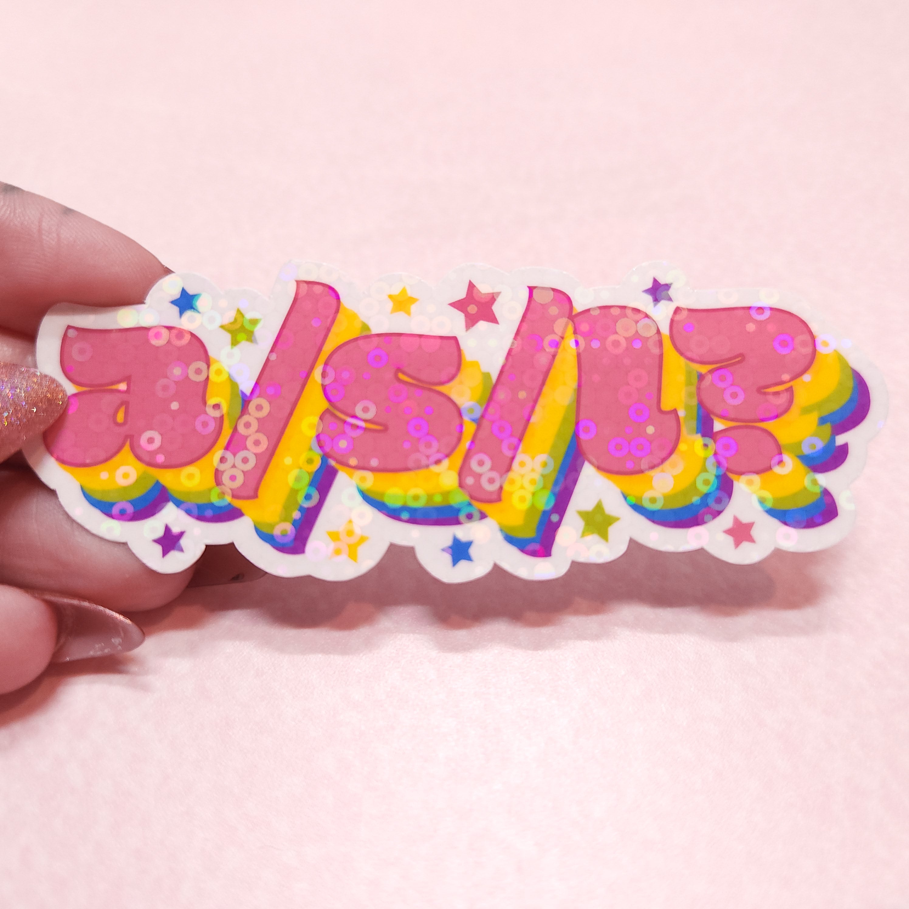 a/s/l? Holographic Vinyl Sticker, 3.5 x 1.25 in.