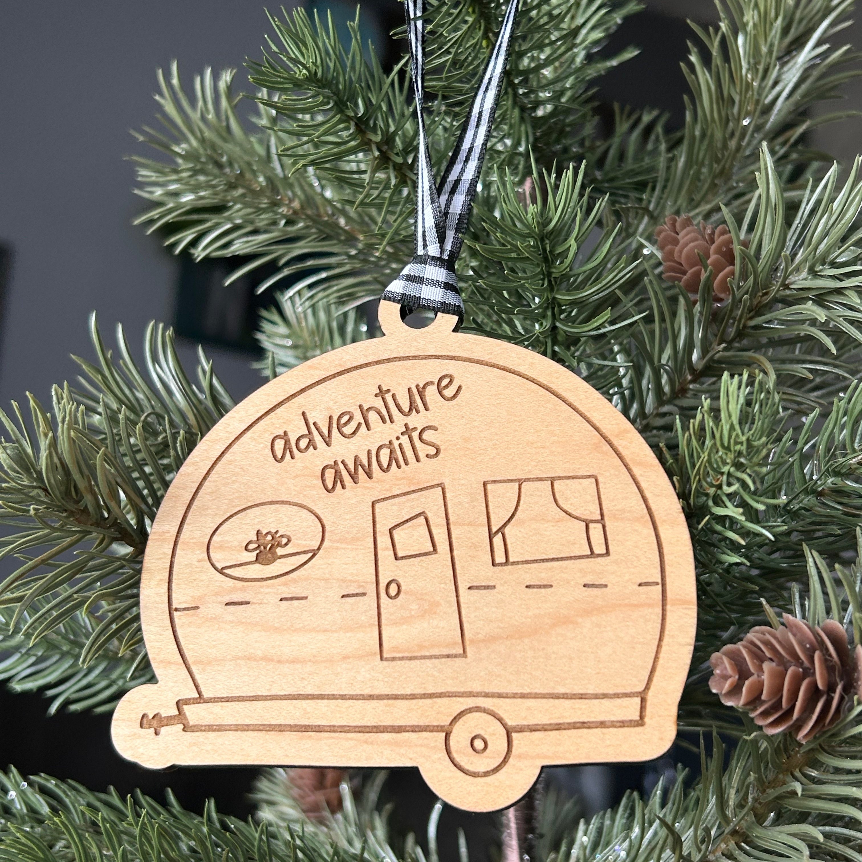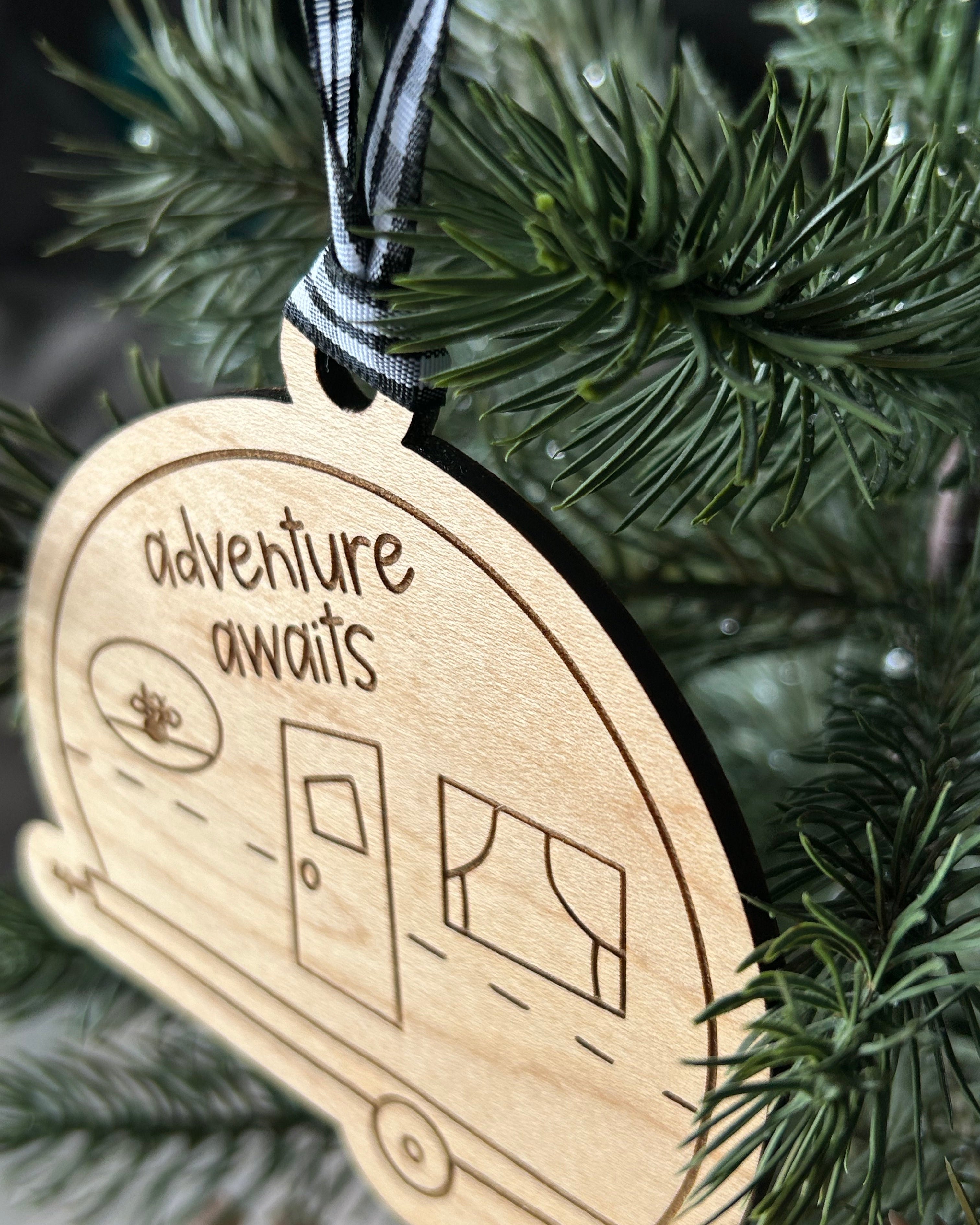 The original Novotny Designs camper doodle is now an ornament! This "adventure awaits" camper ornament is the perfect gift for your family or friends who love to camp! Give a nod to their camping adventures with a sweet keepsake.