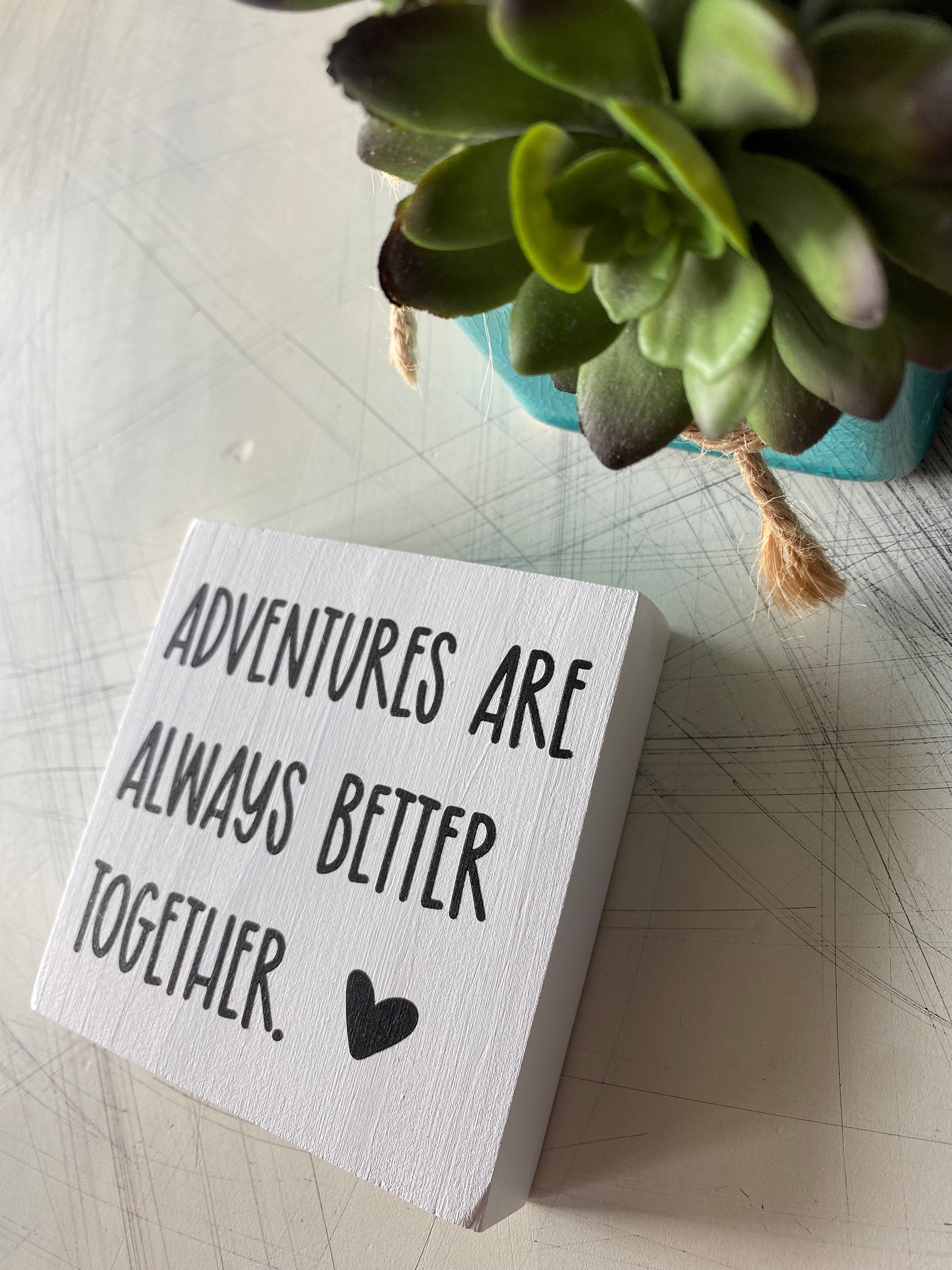 Make adventures more exciting with the, "Adventures are always better together" sign! This handmade wood sign is the perfect reminder that life's journey is more inspiring when shared with a loved one.