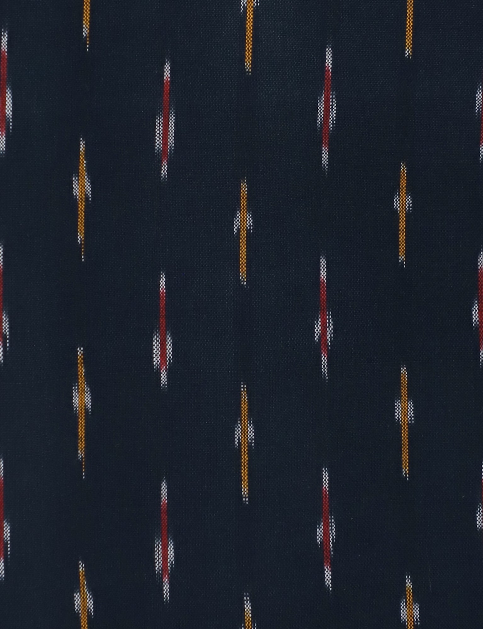 Our short sleeve men's navy button down features navy, red, orange and white handwoven ikat fabric. Gentle tapering at the waist with a straight and narrow profile and a broader fit in the shoulders gives this shirt the perfect fit. Wear it to work, at dinner dates or to the park with friends.