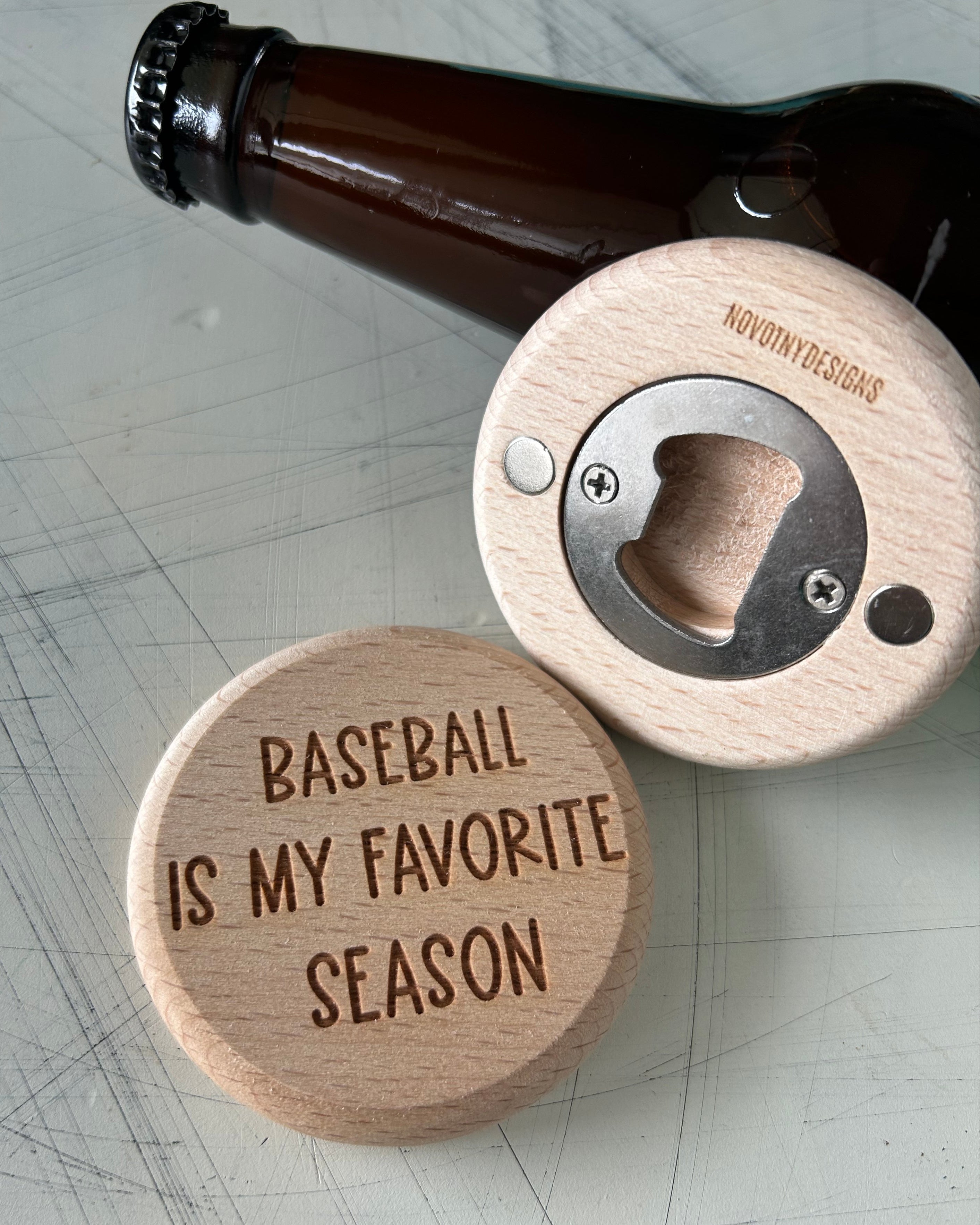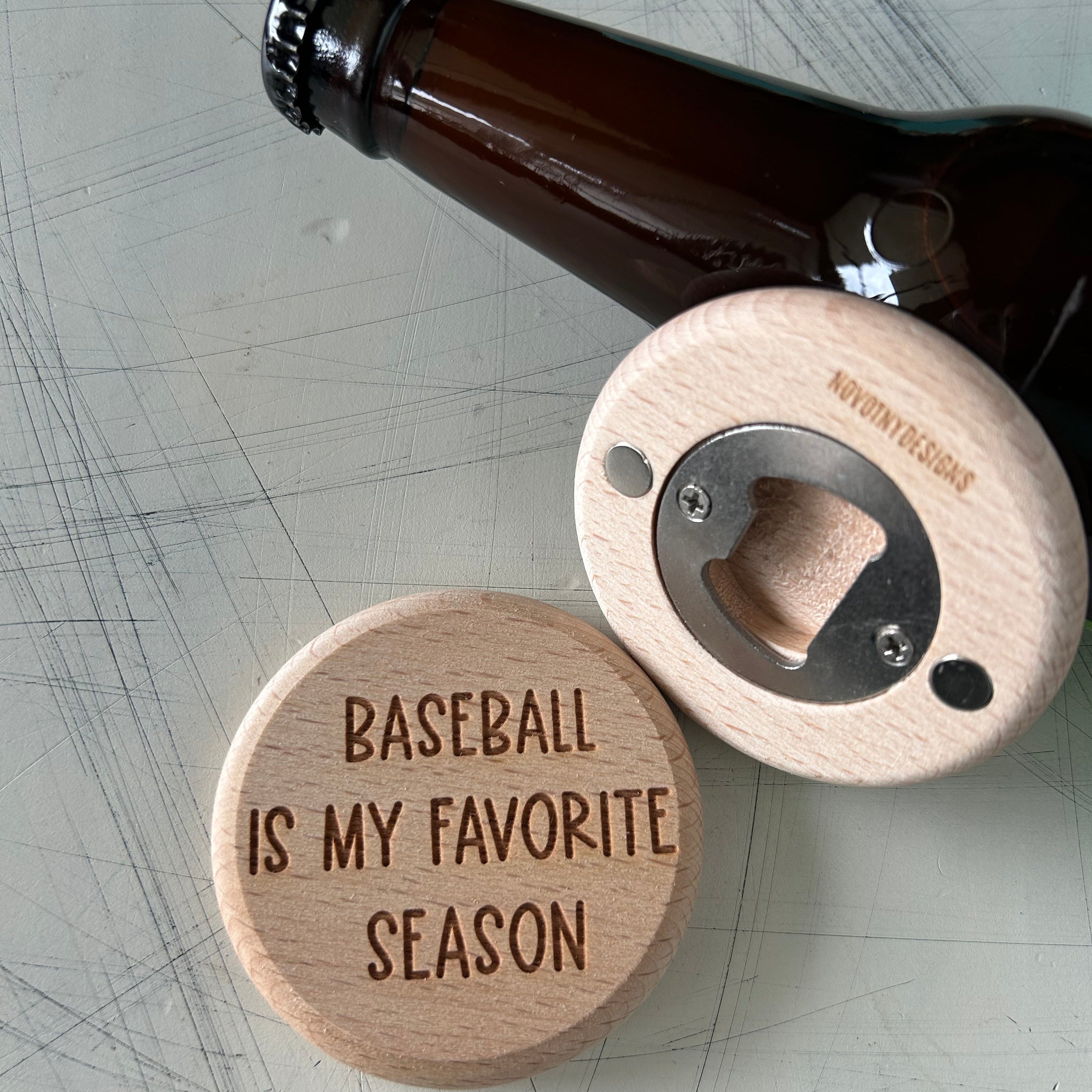 Baseball is my favorite season - magnetic wood bottle opener