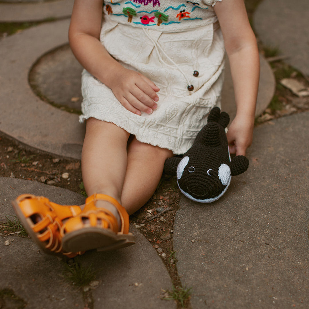 Splash into a world of imagination and creative play with this adorable plush orca baby toy. Pebble toys make lovely baby gifts and are perfect for baby showers, play dates, trips to the beach and much more. Perfect for tiny hands to grab and shake, these rattles are designed with baby's safety and happiness in mind. Handmade. Fair Trade. Ethically Sourced. Organic.