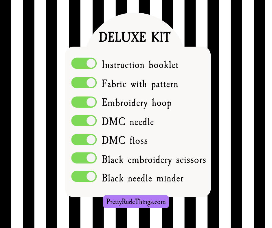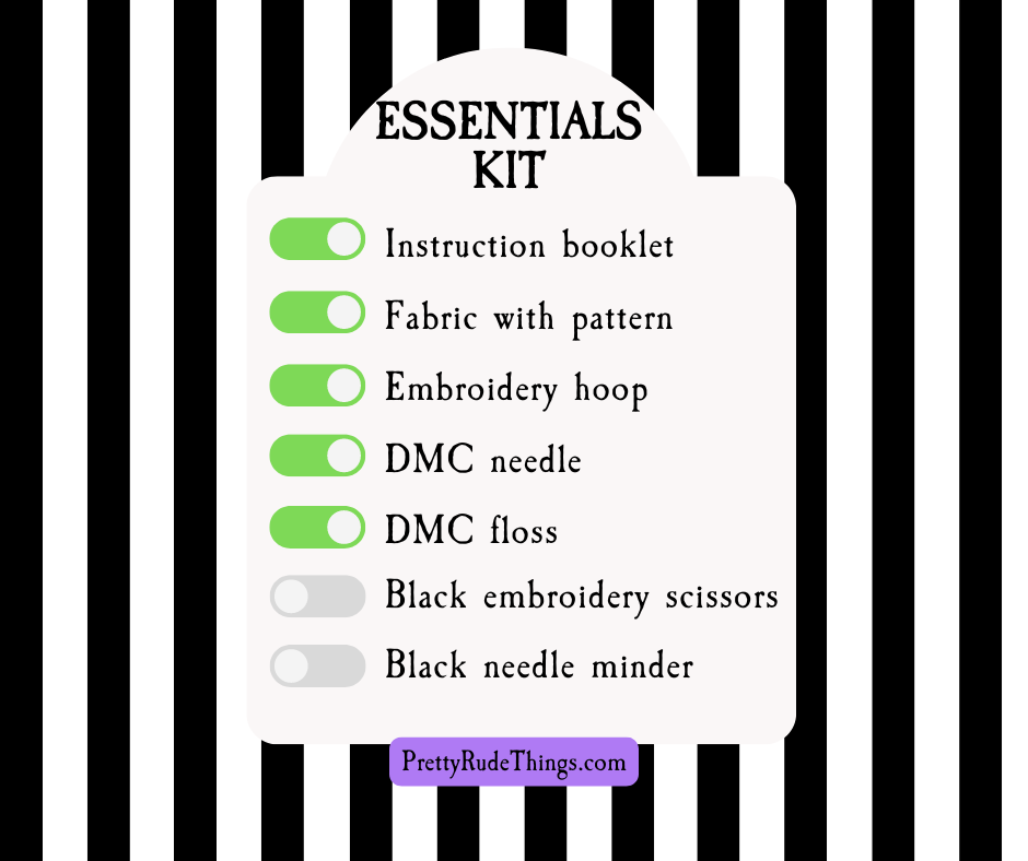 - Black crystal needle minder (to keep your embroidery needle from getting lost)