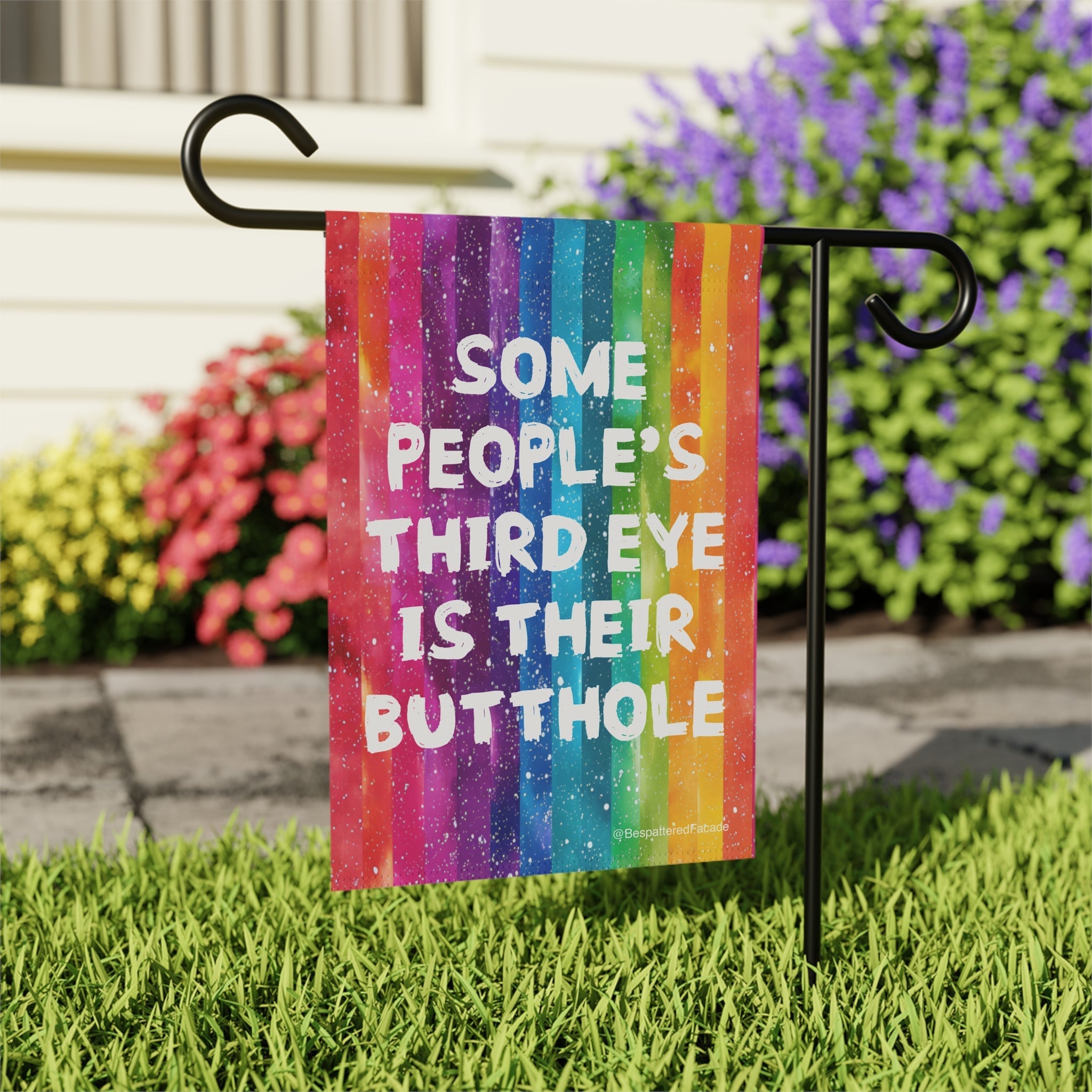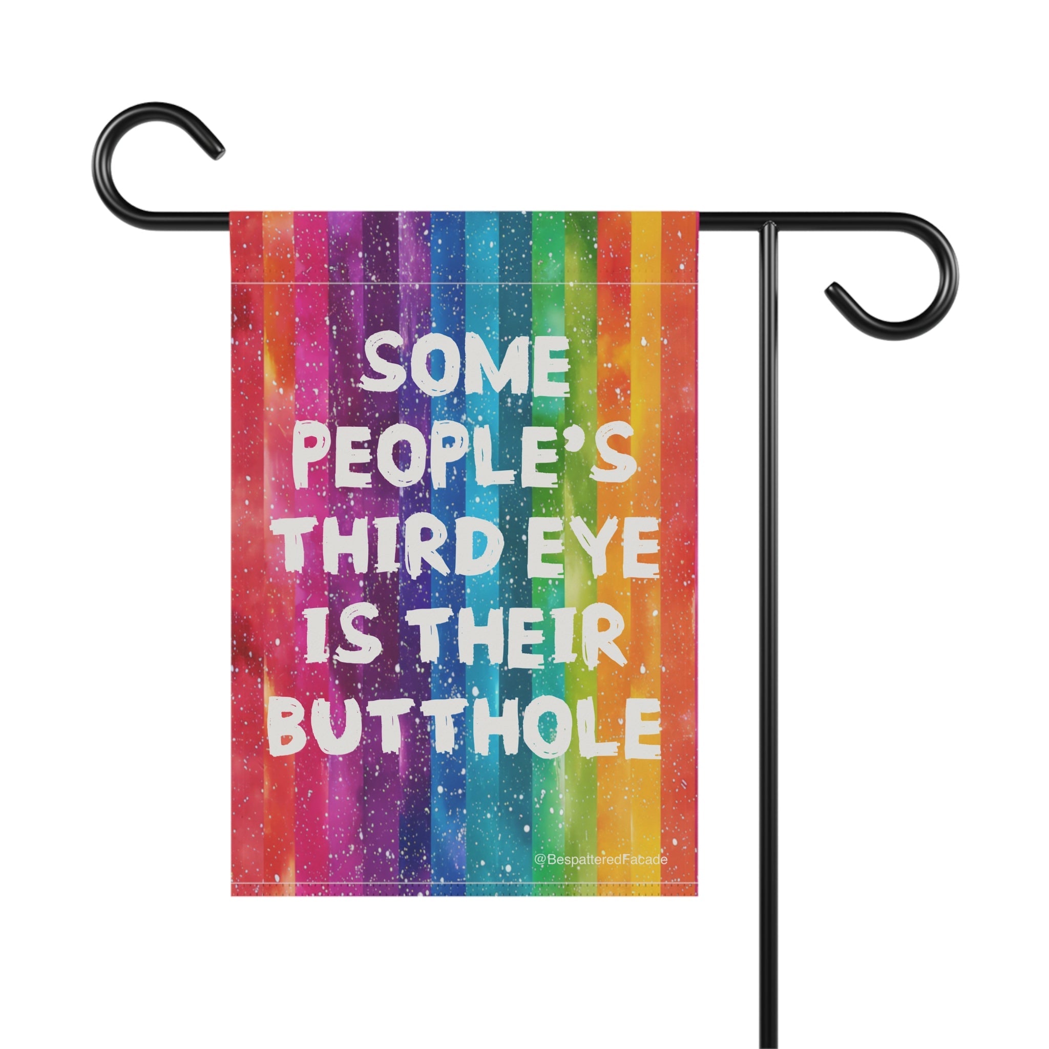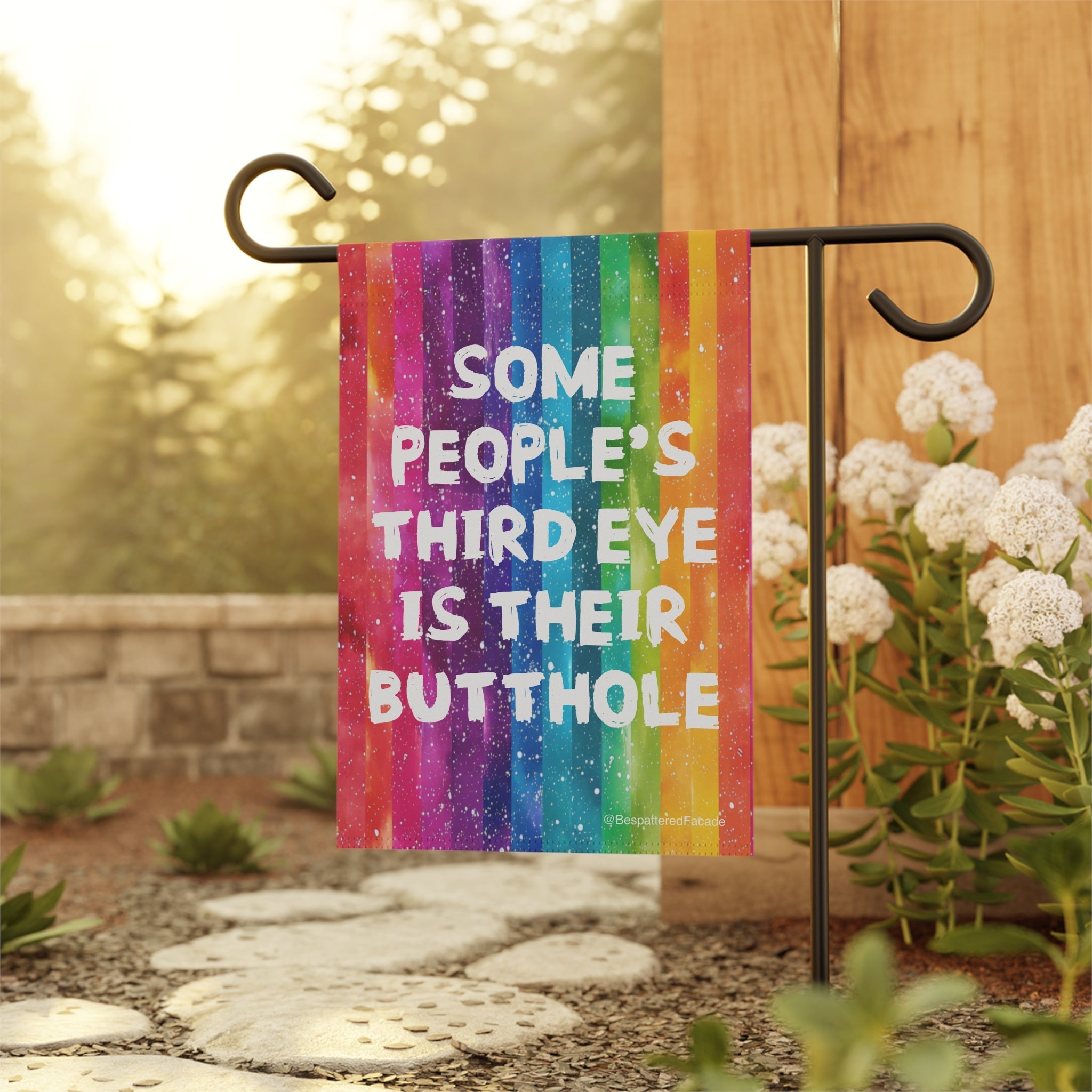 Bespattered Facade All-Seeing Butthole Rainbow Garden Flag