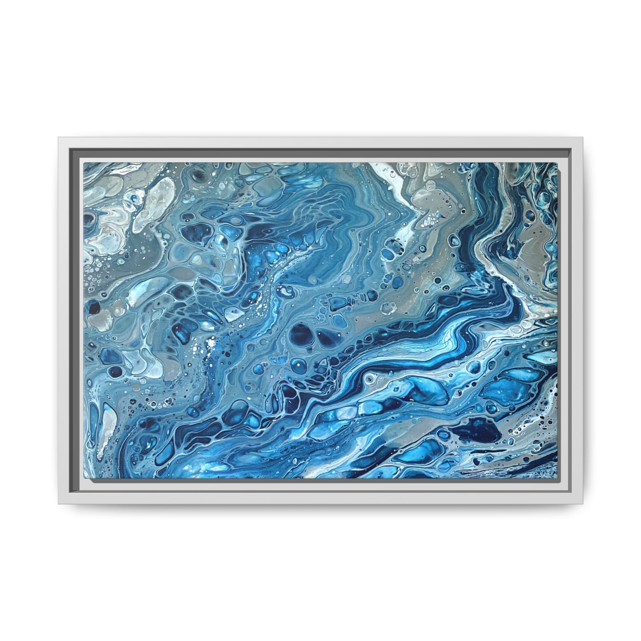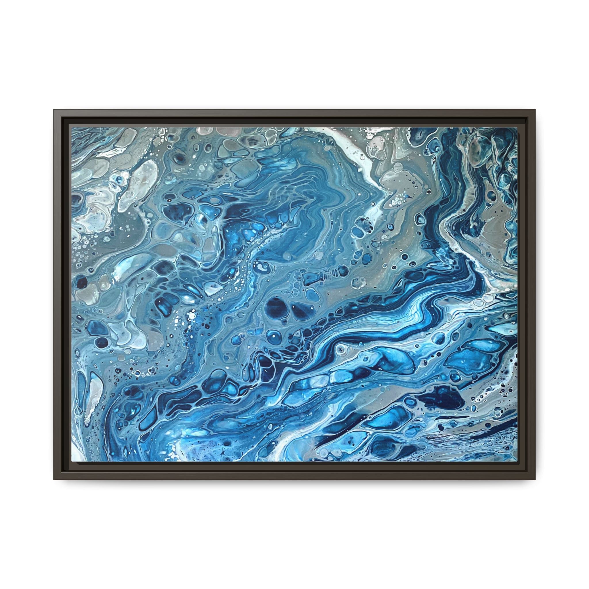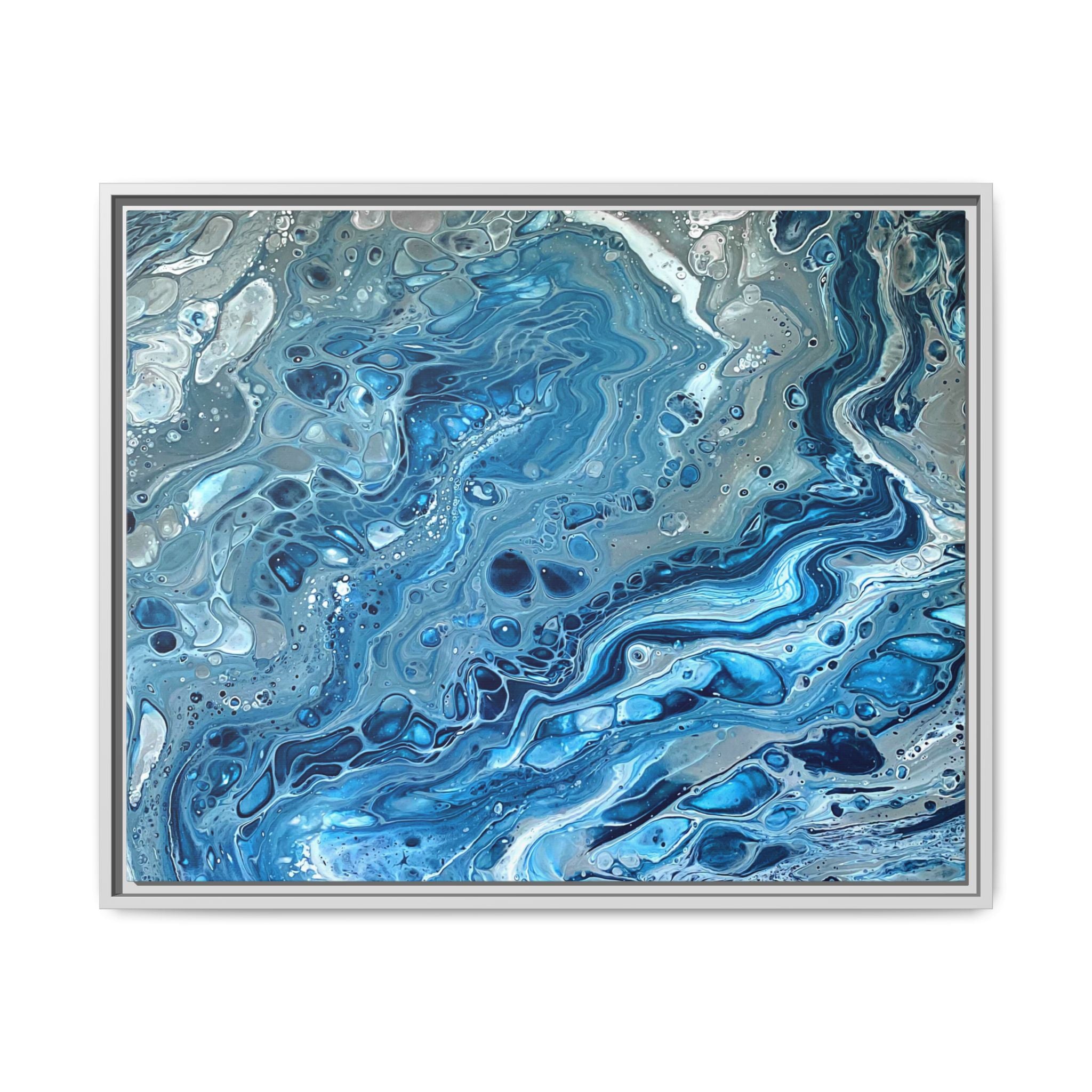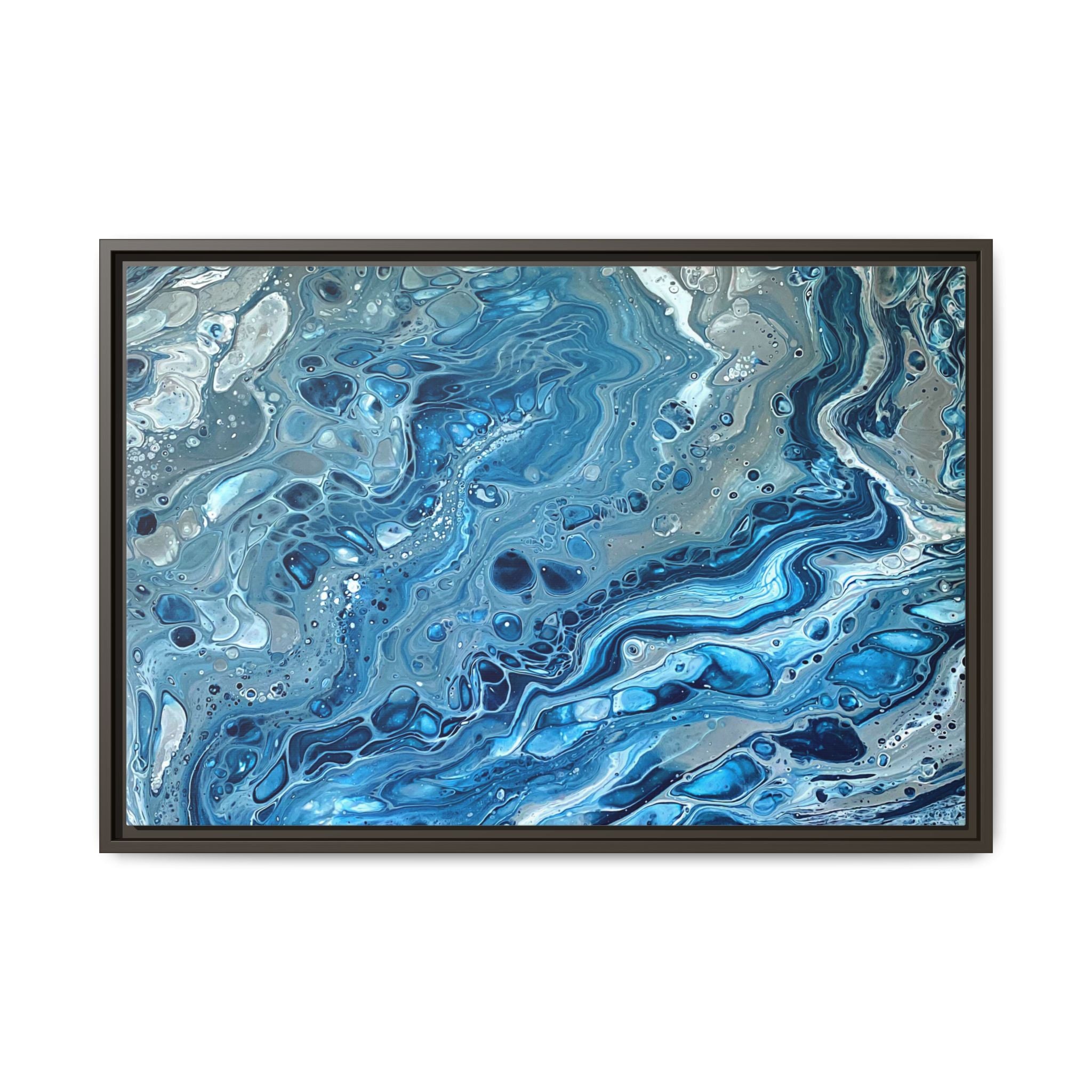 Bespattered Facade Blue Marble Framed Canvas Art Print | 3 Frame Colors | Multiple Sizes