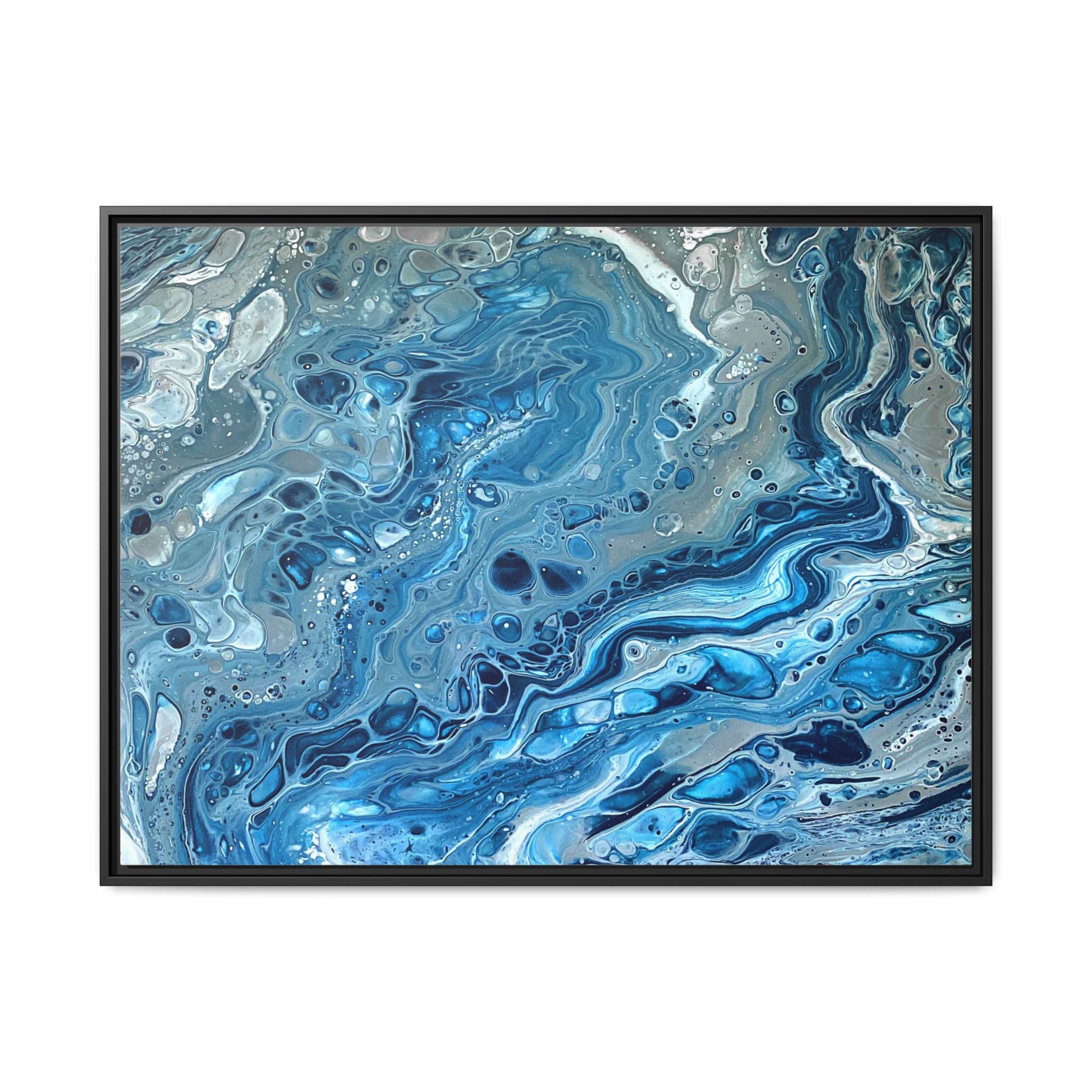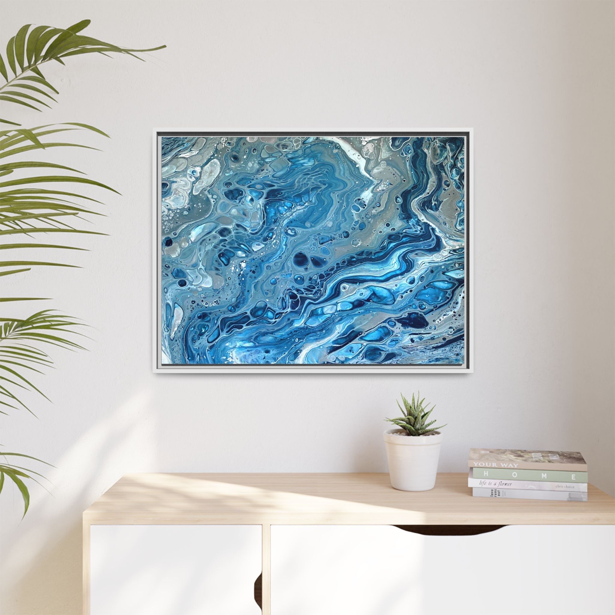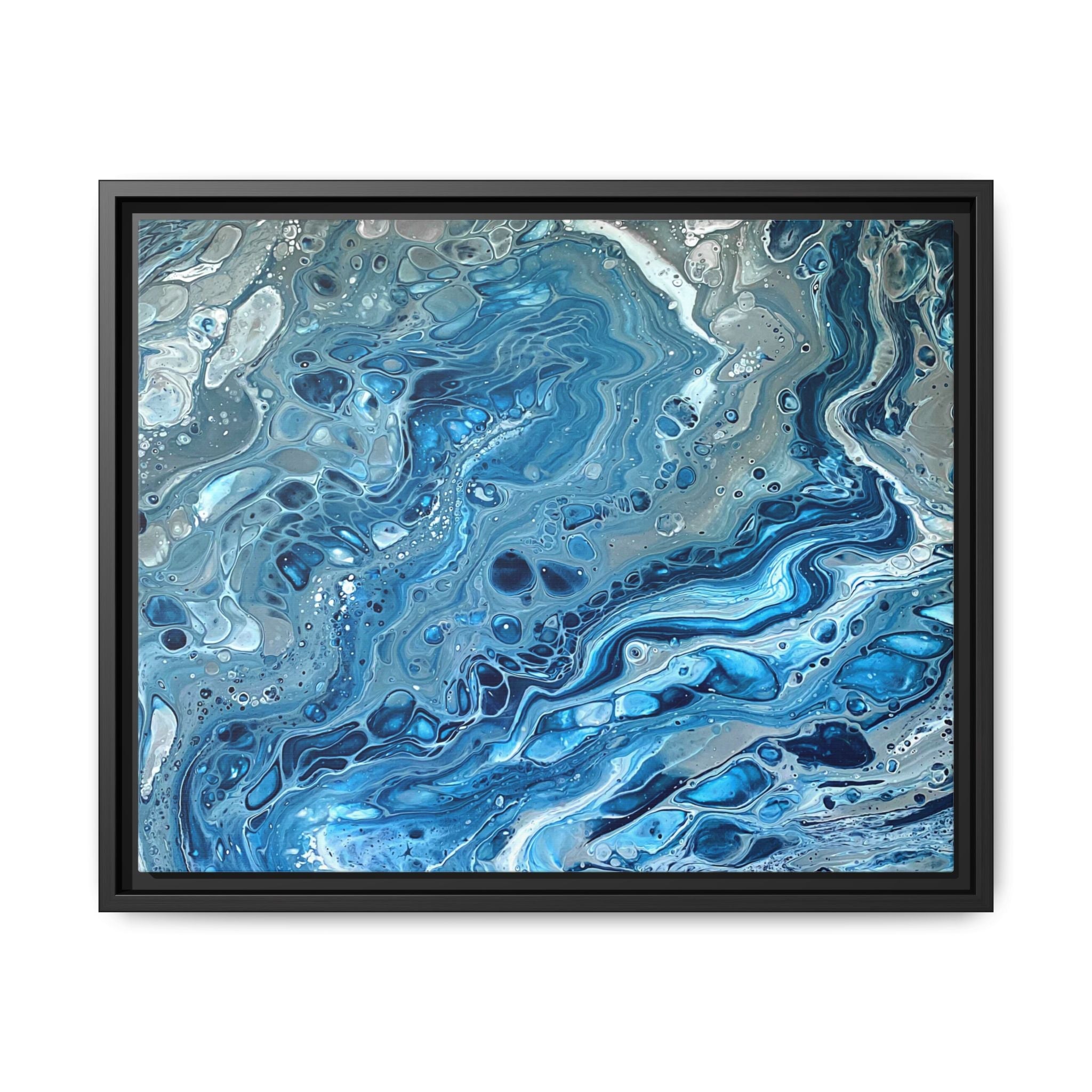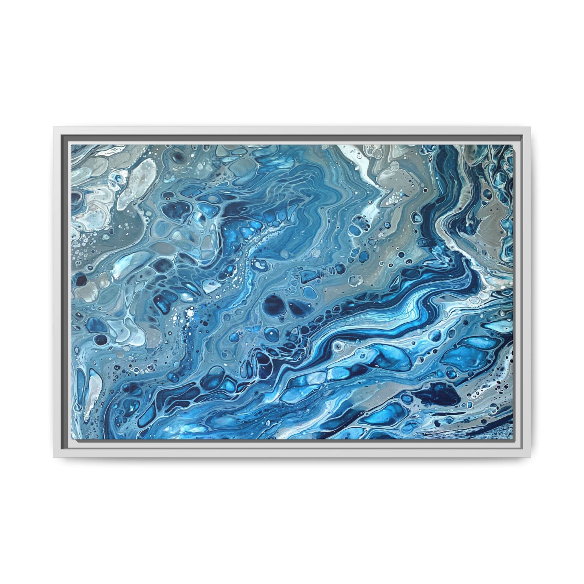 Bespattered Facade Blue Marble Framed Canvas Art Print | 3 Frame Colors | Multiple Sizes