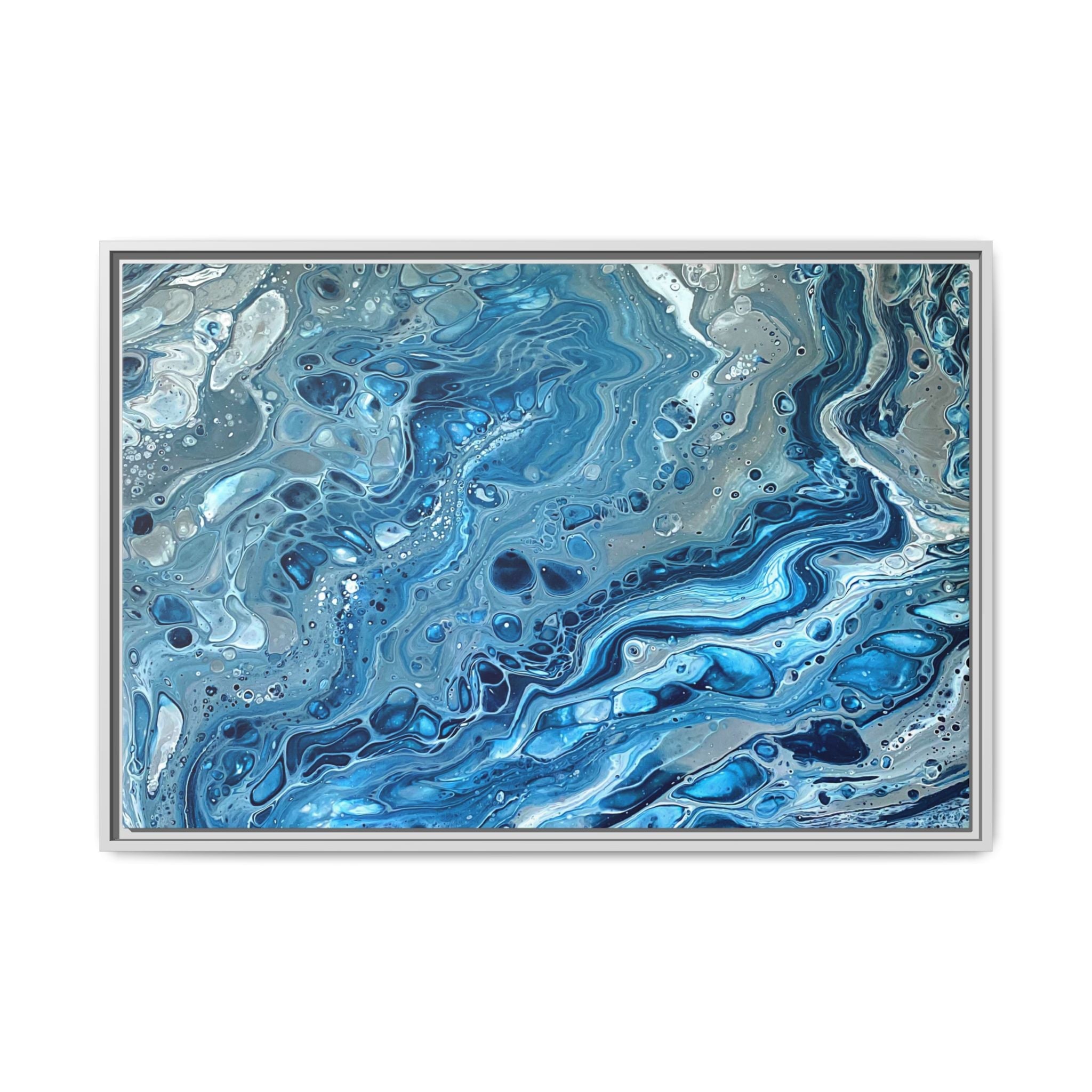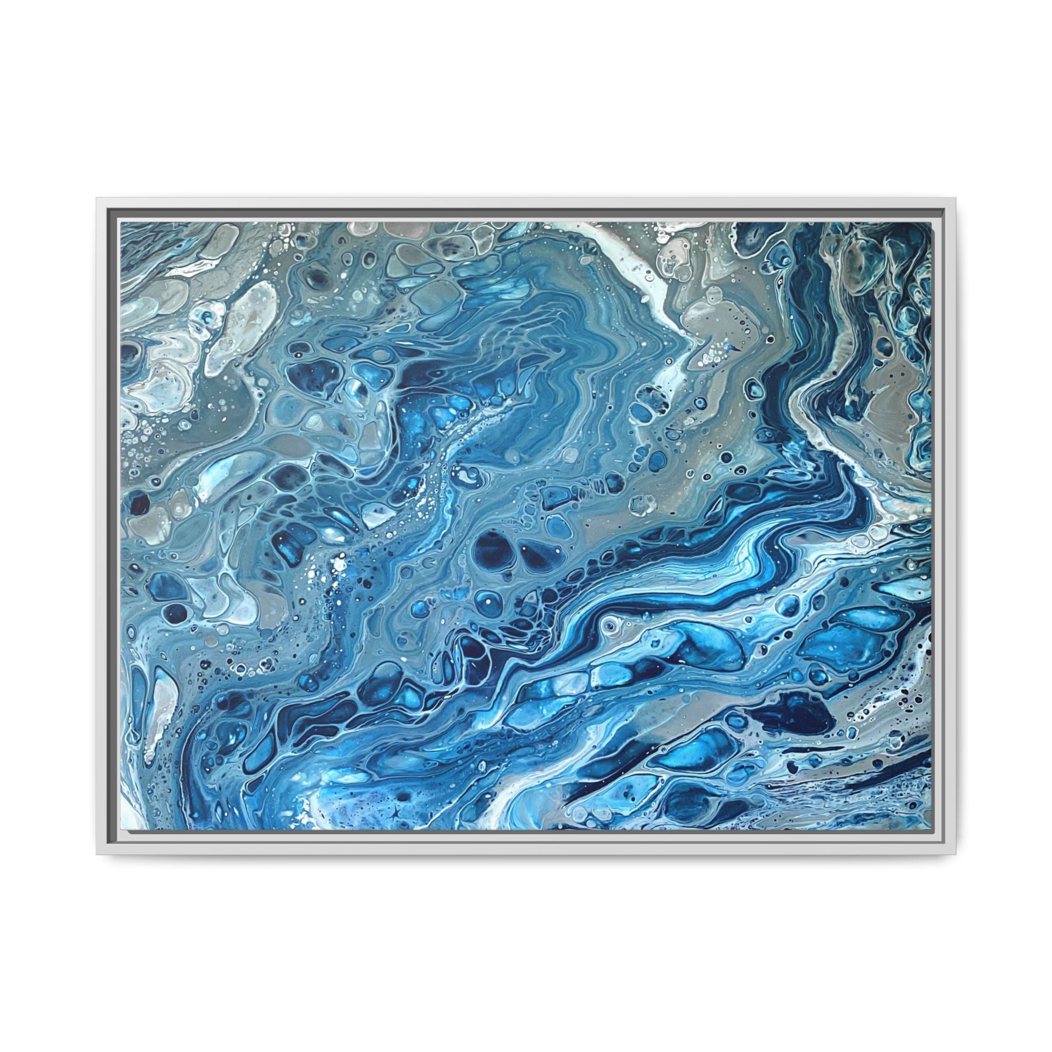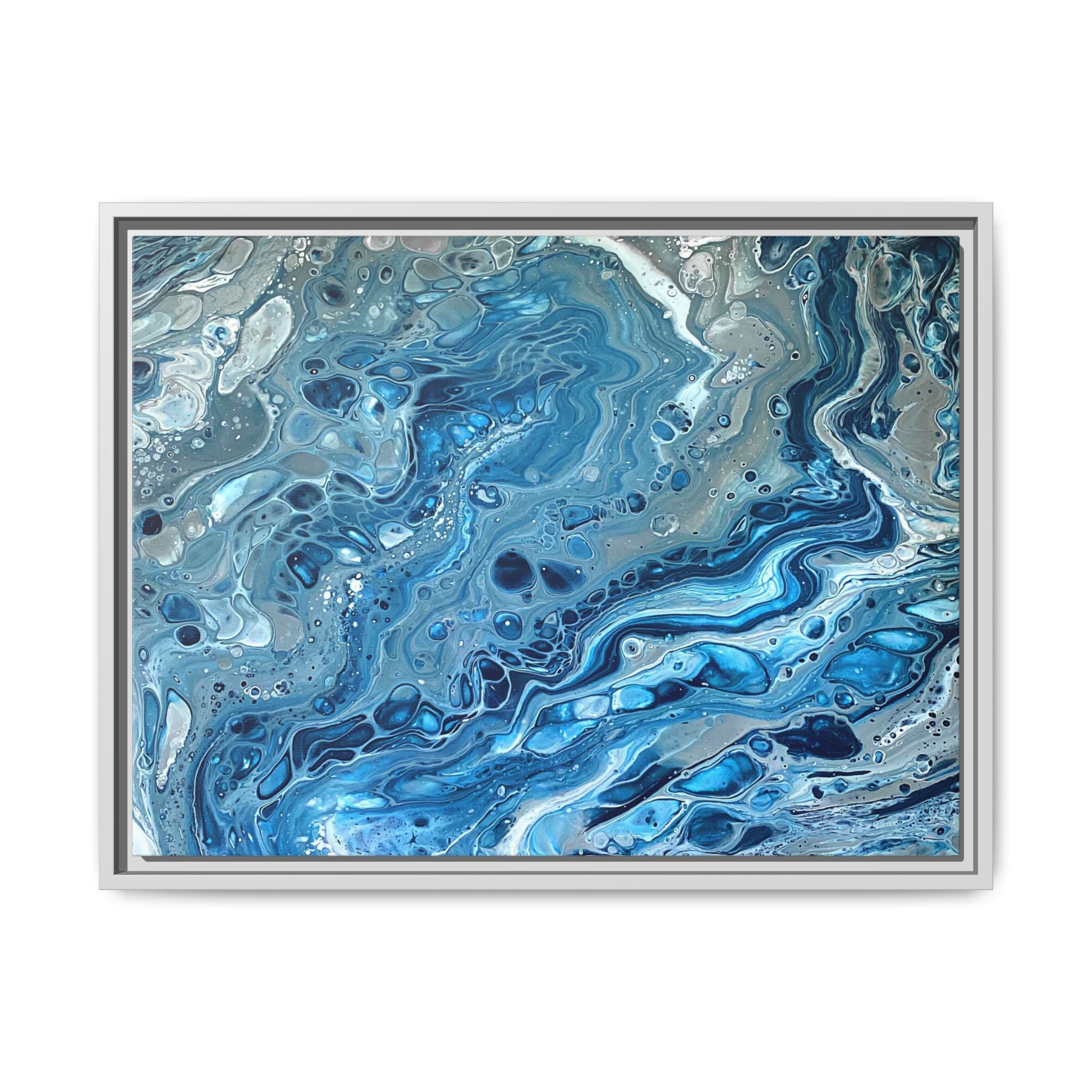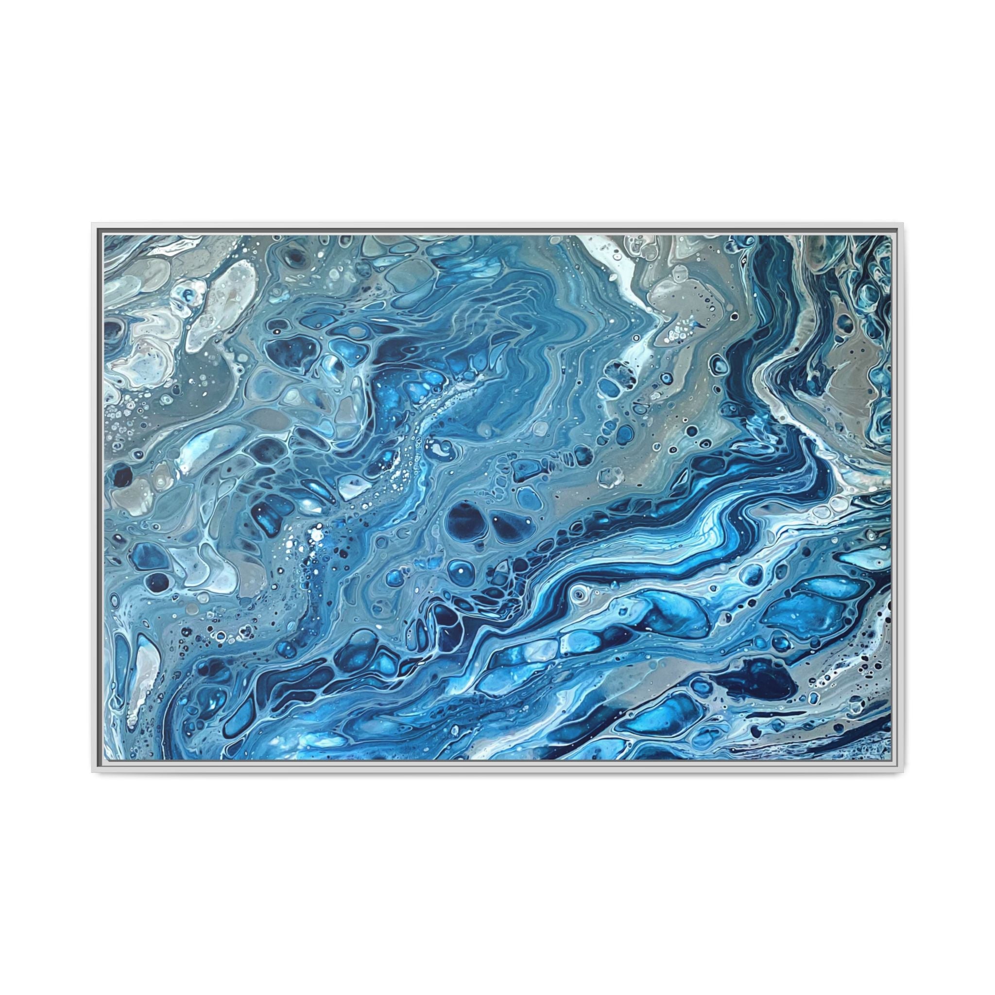 Bespattered Facade Blue Marble Framed Canvas Art Print | 3 Frame Colors | Multiple Sizes