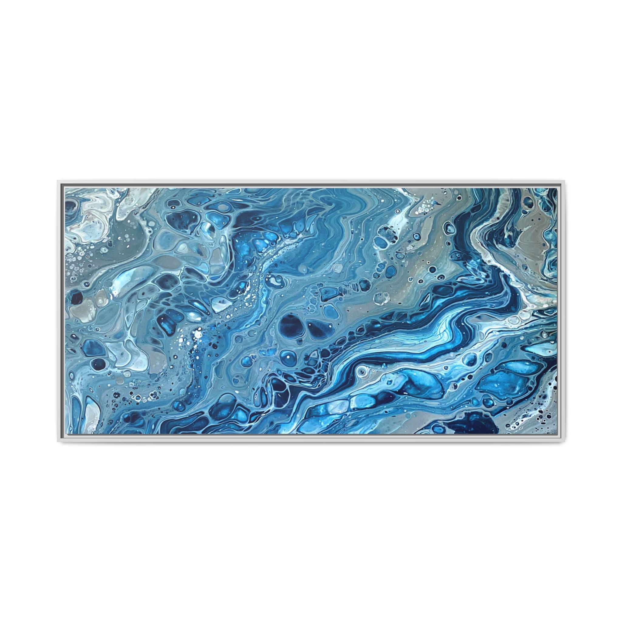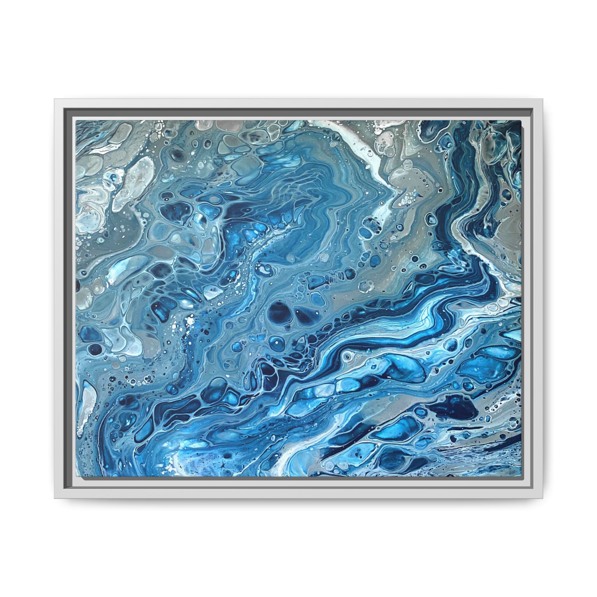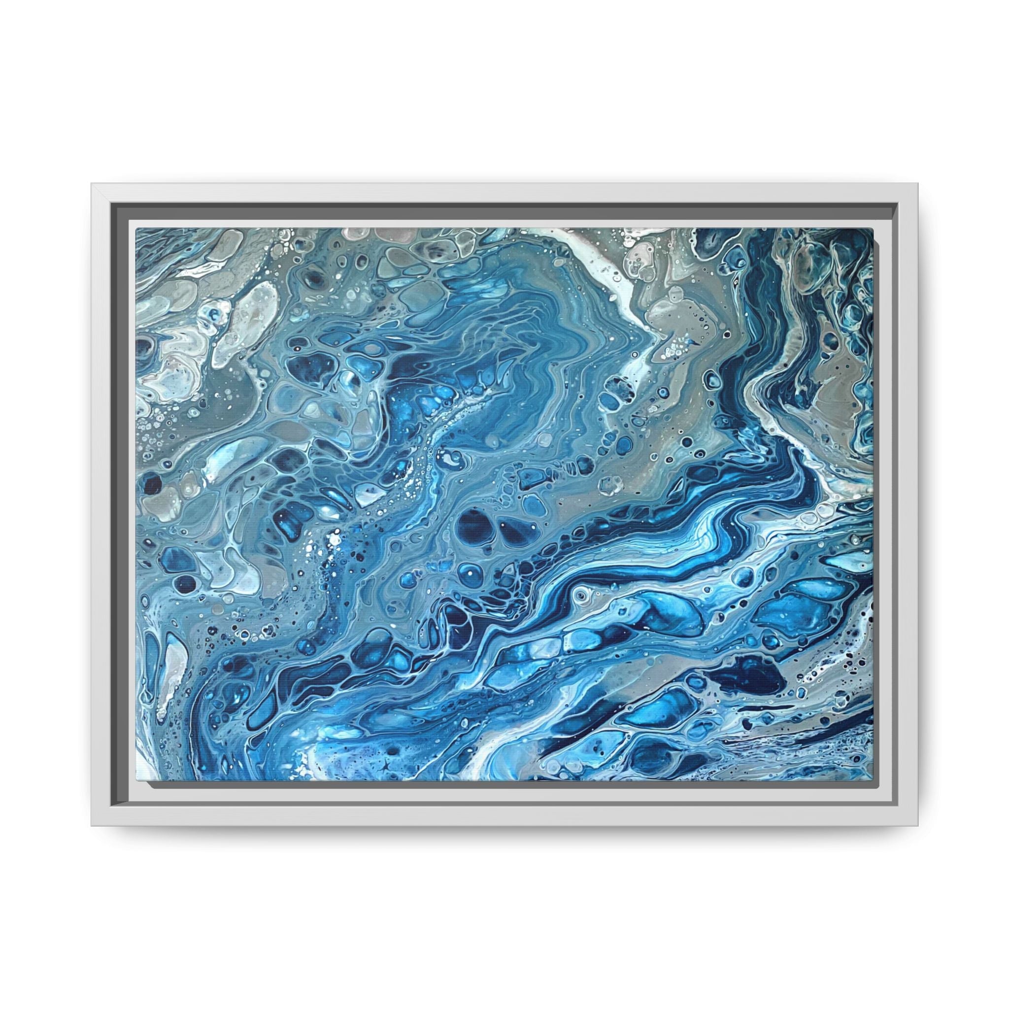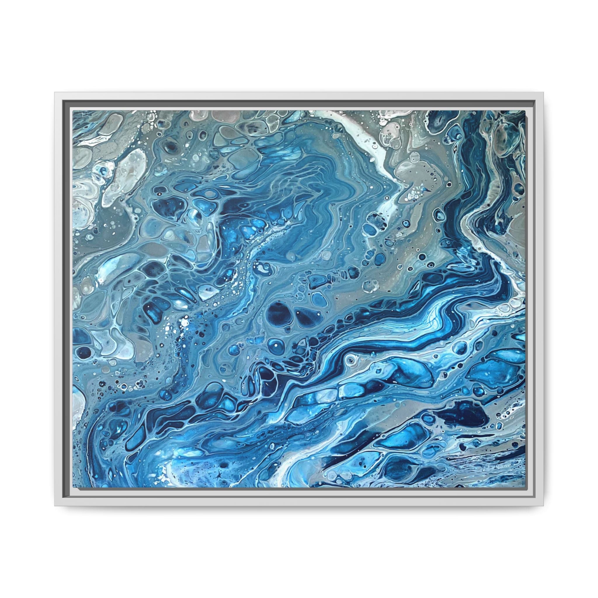 Bespattered Facade Blue Marble Framed Canvas Art Print | 3 Frame Colors | Multiple Sizes