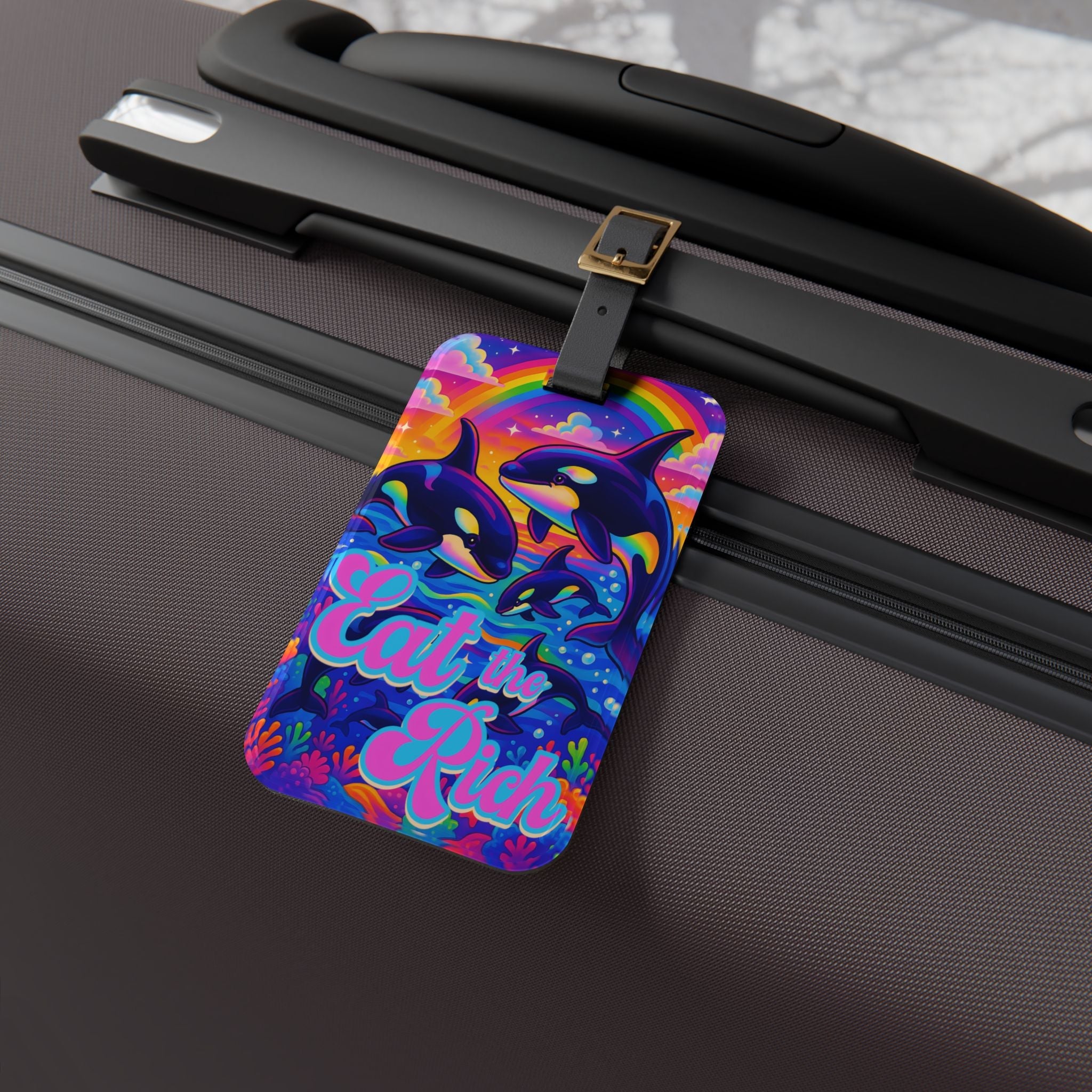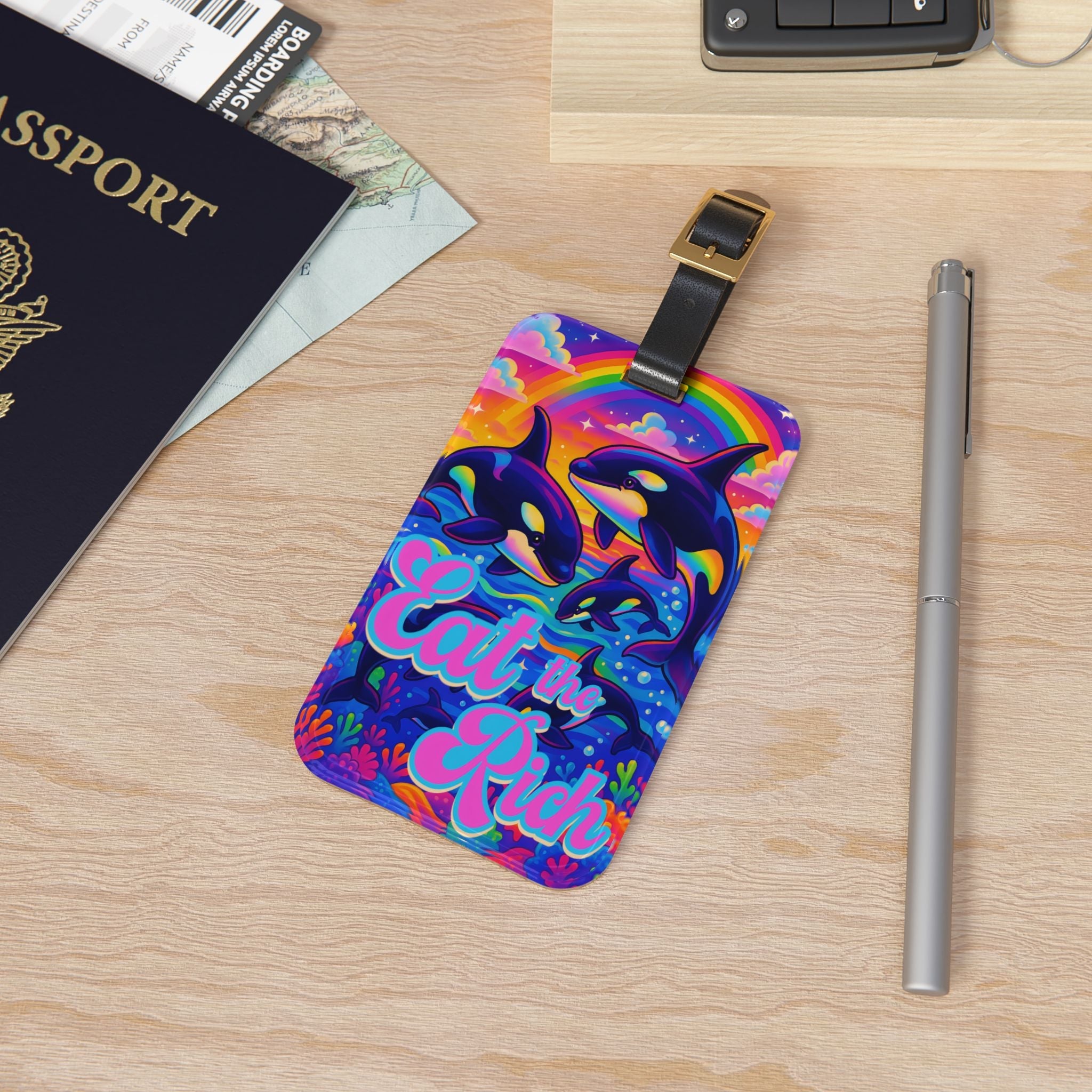 Bespattered Facade "Eat the Rich" Orcas Luggage Tag with Leather Strap
