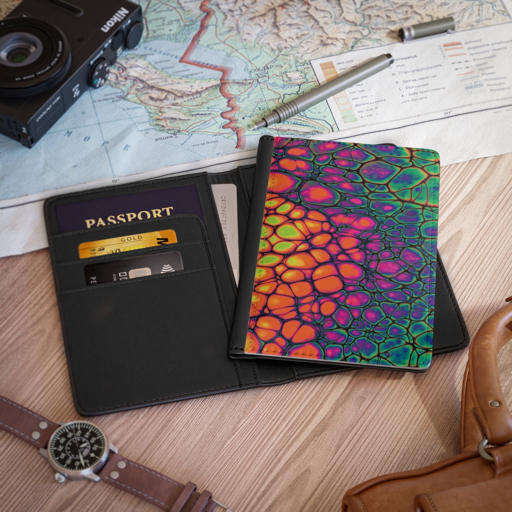 Bespattered Facade Neon Butterfly Vegan Leather Passport Cover