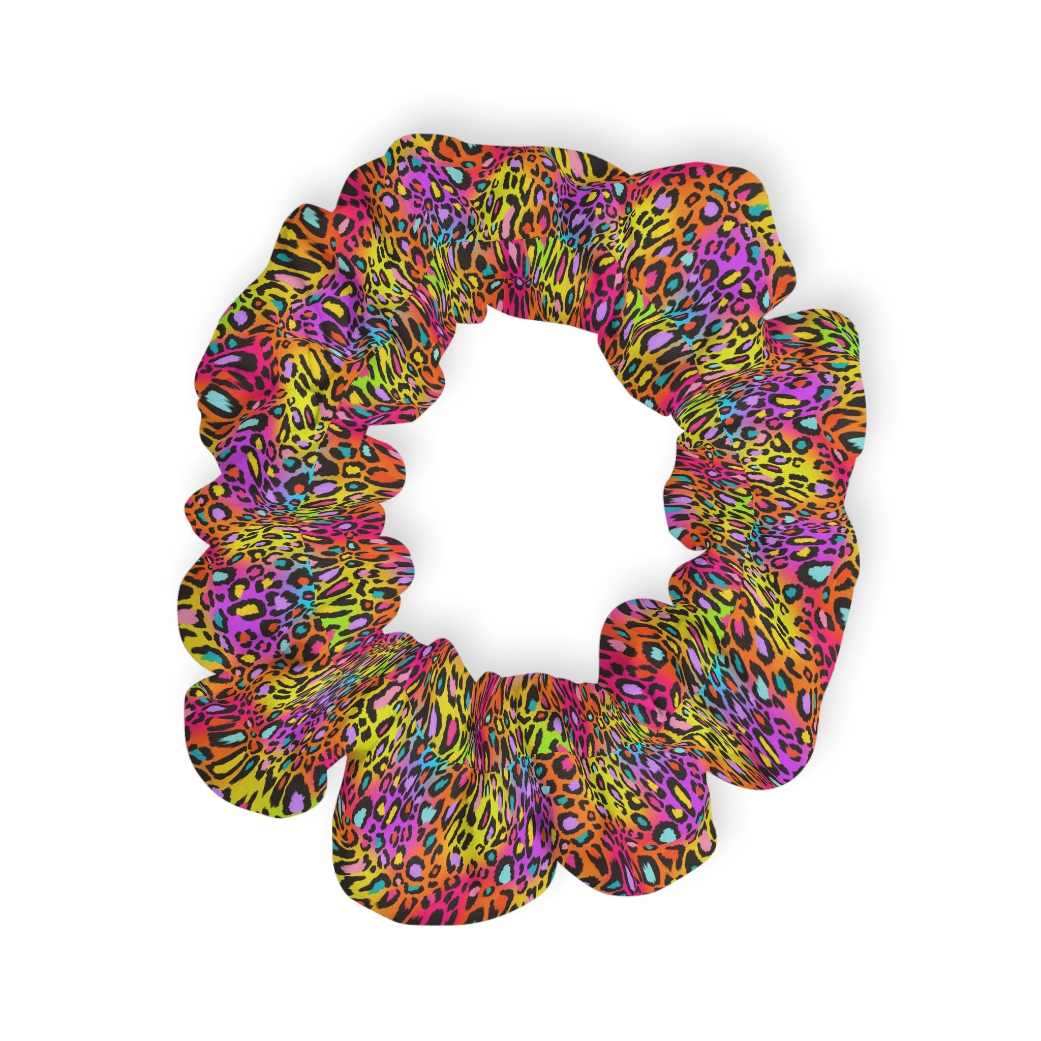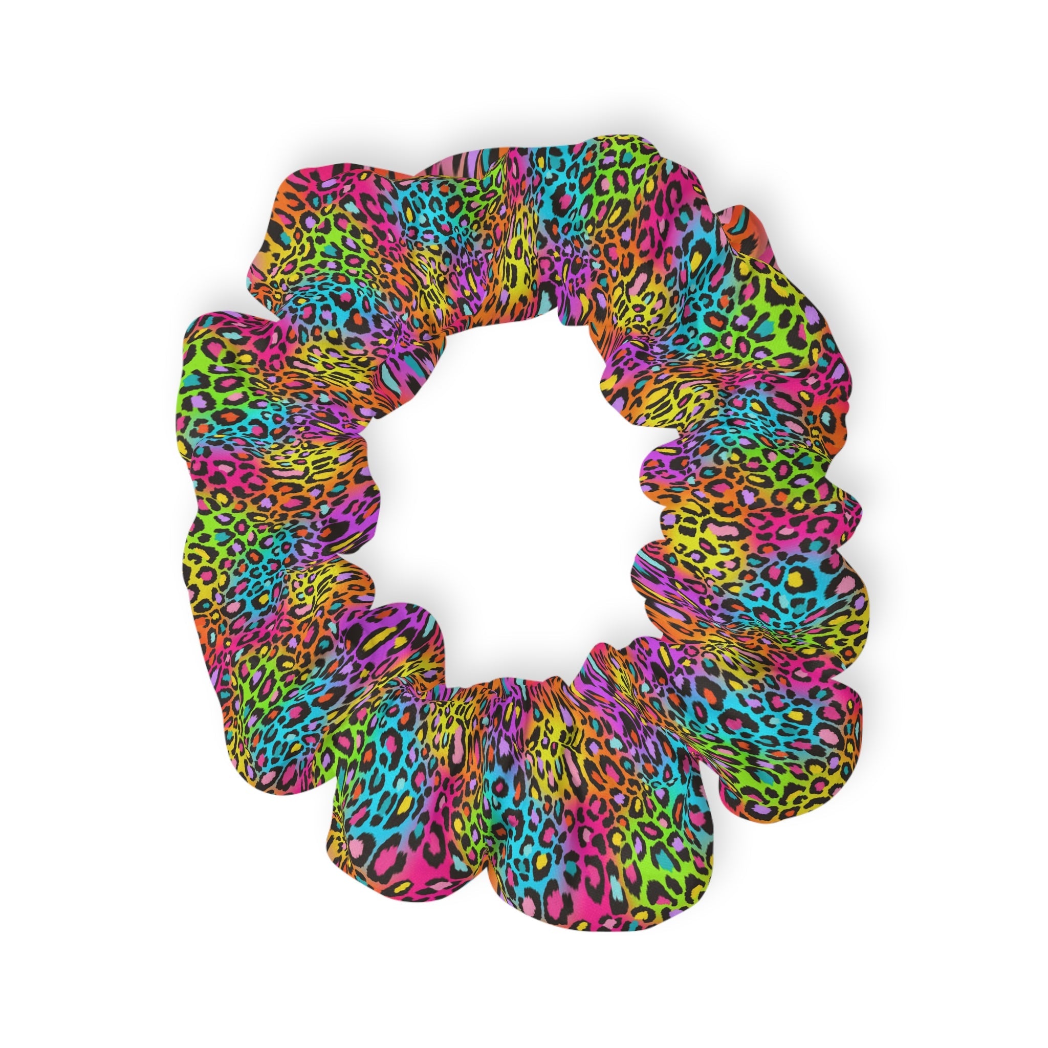 Bespattered Facade Neon Rainbow Leopard Scrunchie