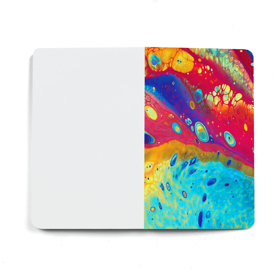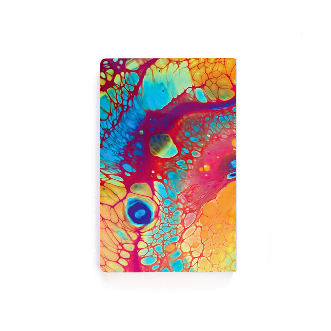 Each softcover notebook measures 5.25 x 8.25 inches and contains 144 pages of (70-pound) premium recycled paper. They have a durable, smyth-sewn binding that enables them to lay flat when opened. The (100-pound) laminated velvety soft-touch cover features a print of one of my art designs that extends to the inside cover as well for maximum color enjoyment. I also will sign the inside cover of each notebook with a metallic acid-free pen for a personalized touch.