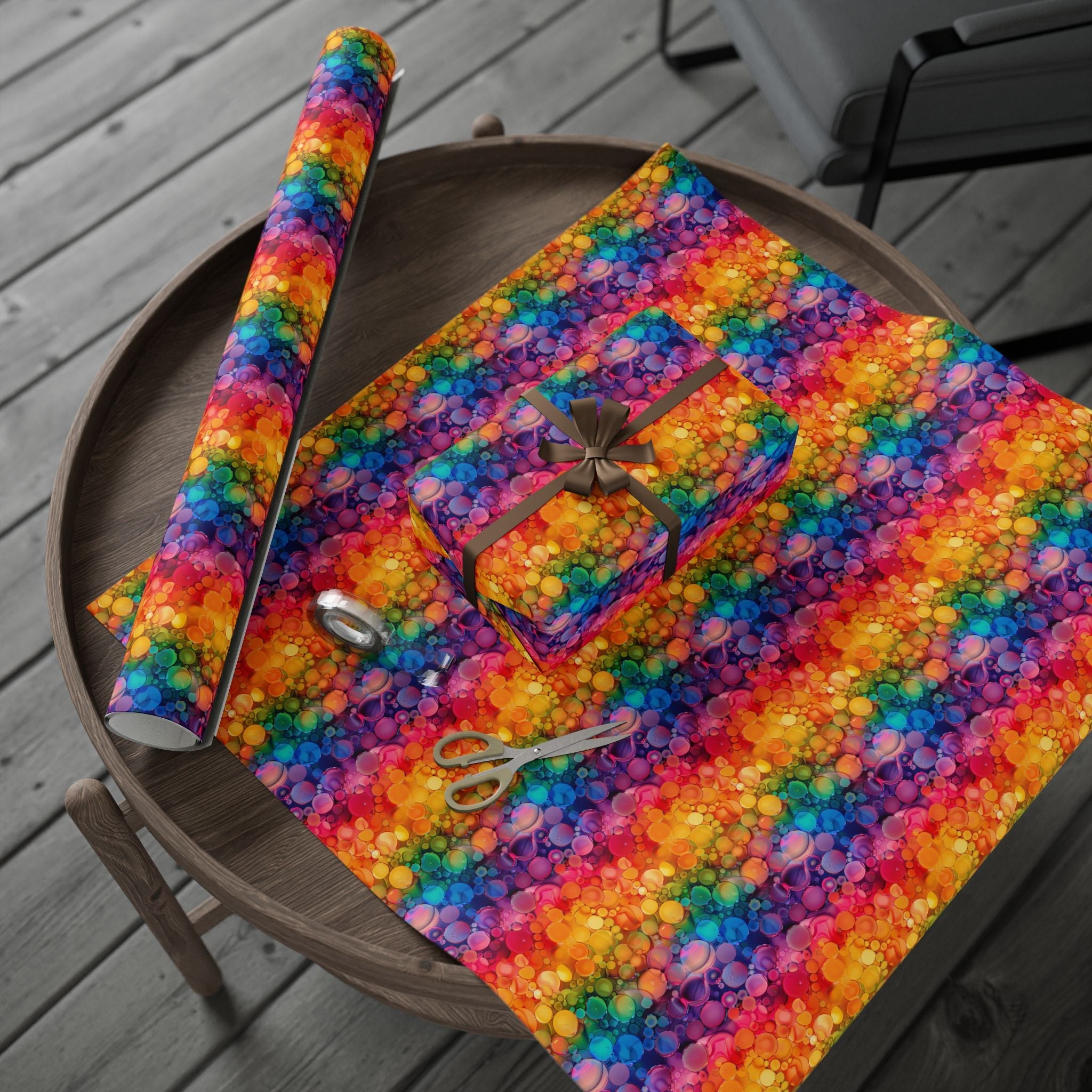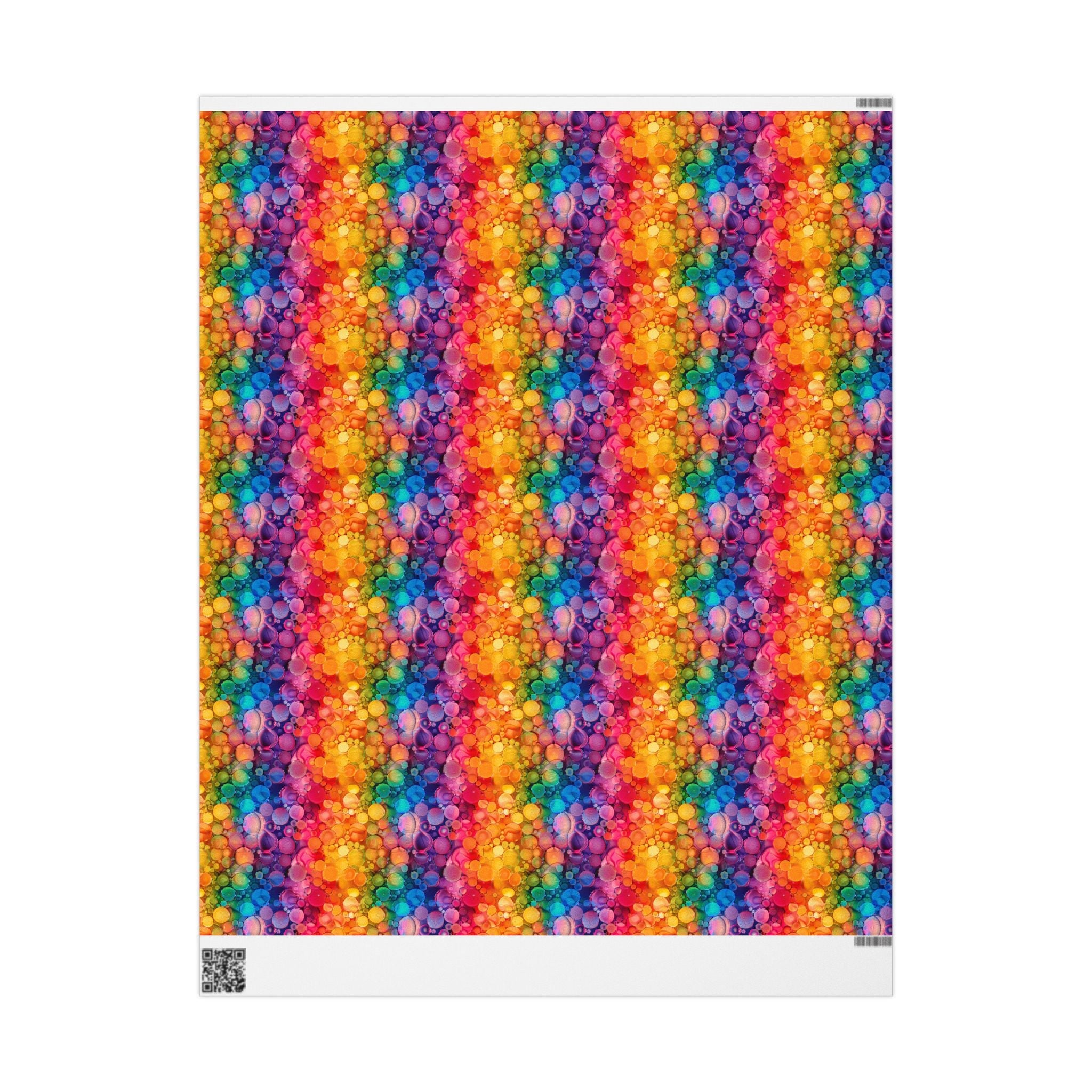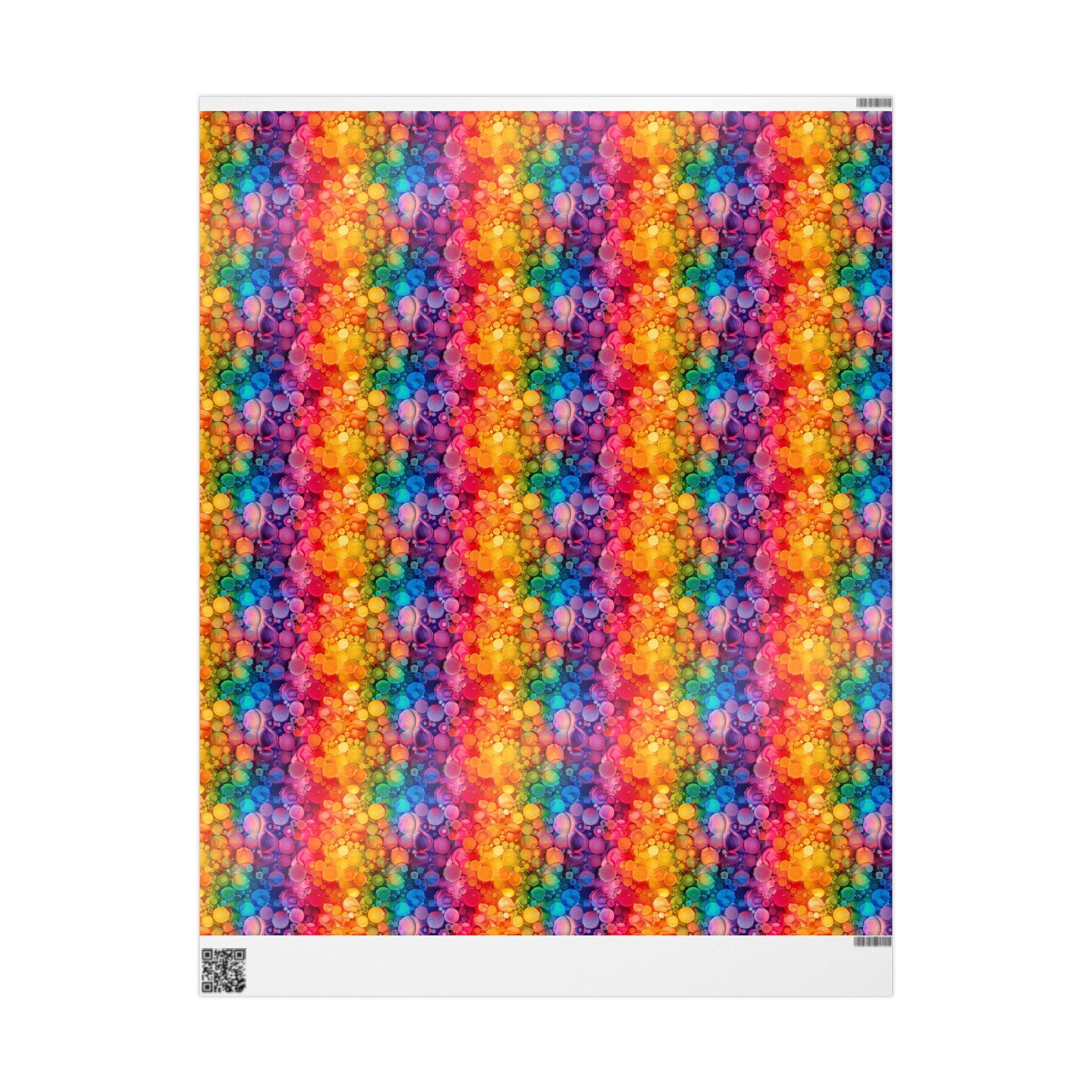 Bespattered Facade Rainbow Ink Circles Wrapping Paper | Three Sizes | Glossy or Matte