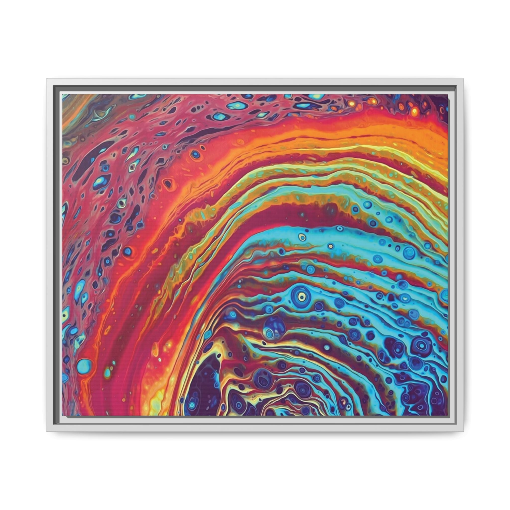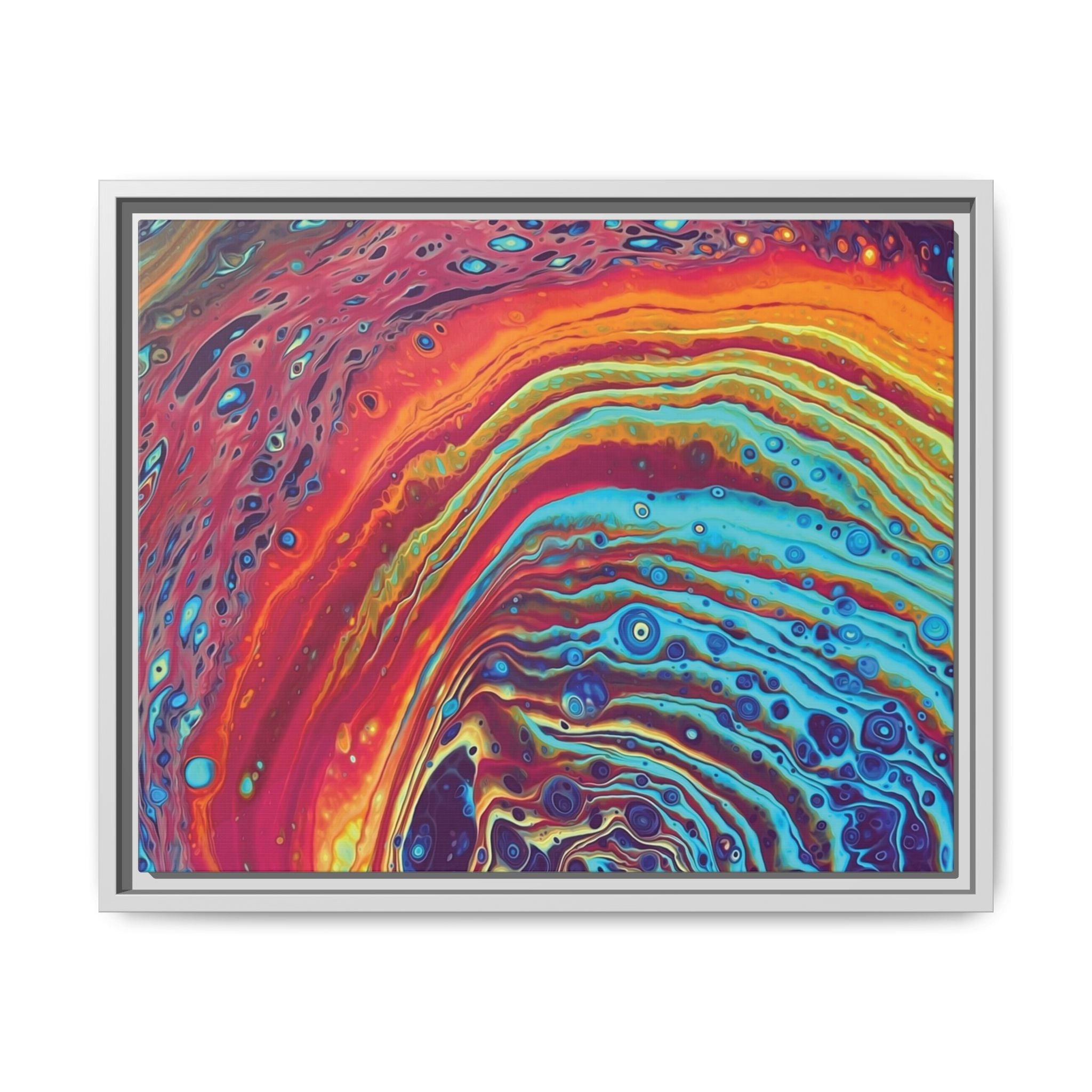 Bespattered Facade Rainbow Rings Framed Canvas Art Print | 3 Frame Colors | Multiple Sizes