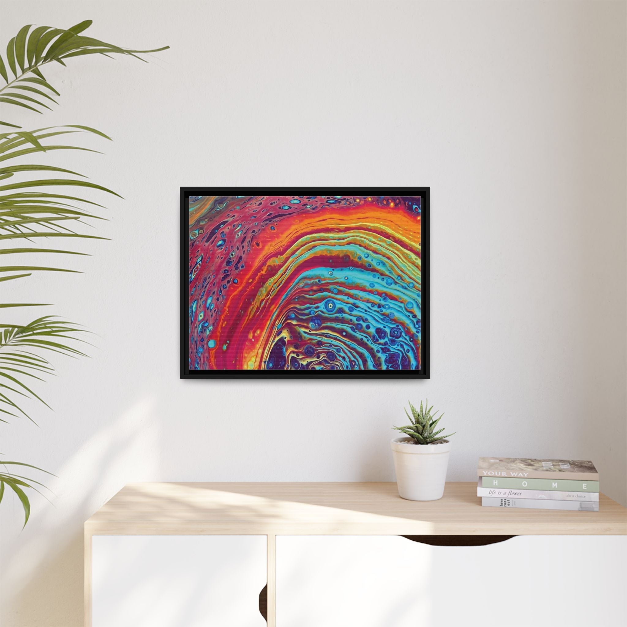 Transform your living space with this vibrant framed canvas art piece. Ideal for adding a pop of color, its multi-colored designs create a lively atmosphere in any room. Perfect for art enthusiasts or anyone looking to brighten their home decor. This canvas is not just a visual delight but also a sustainable option, made from responsibly sourced materials. It’s a fantastic gift for housewarmings, birthdays, or holidays and is sure to be a conversation starter in any setting. Whether it's for a bright living room or an inspiring home office, this framed canvas perfectly complements your style and enhances your environment.