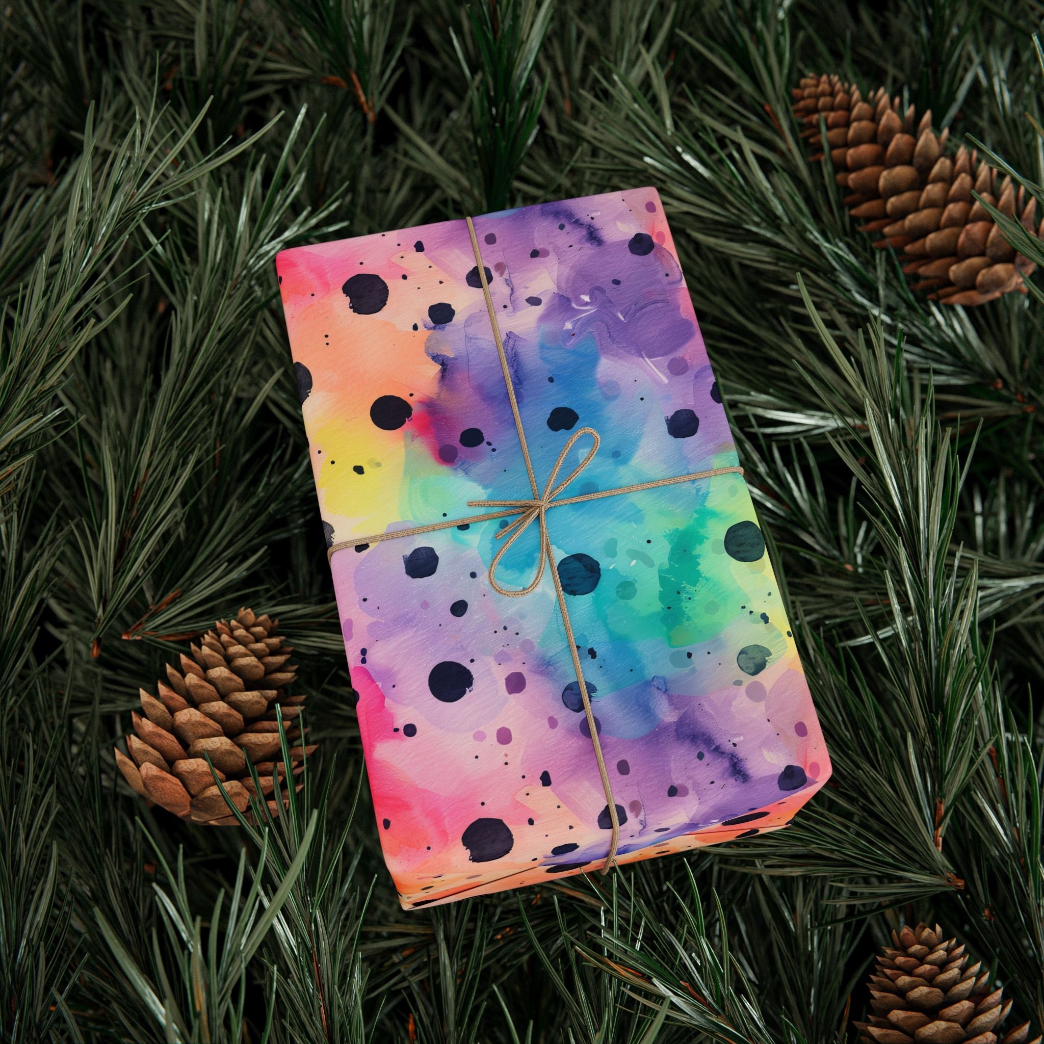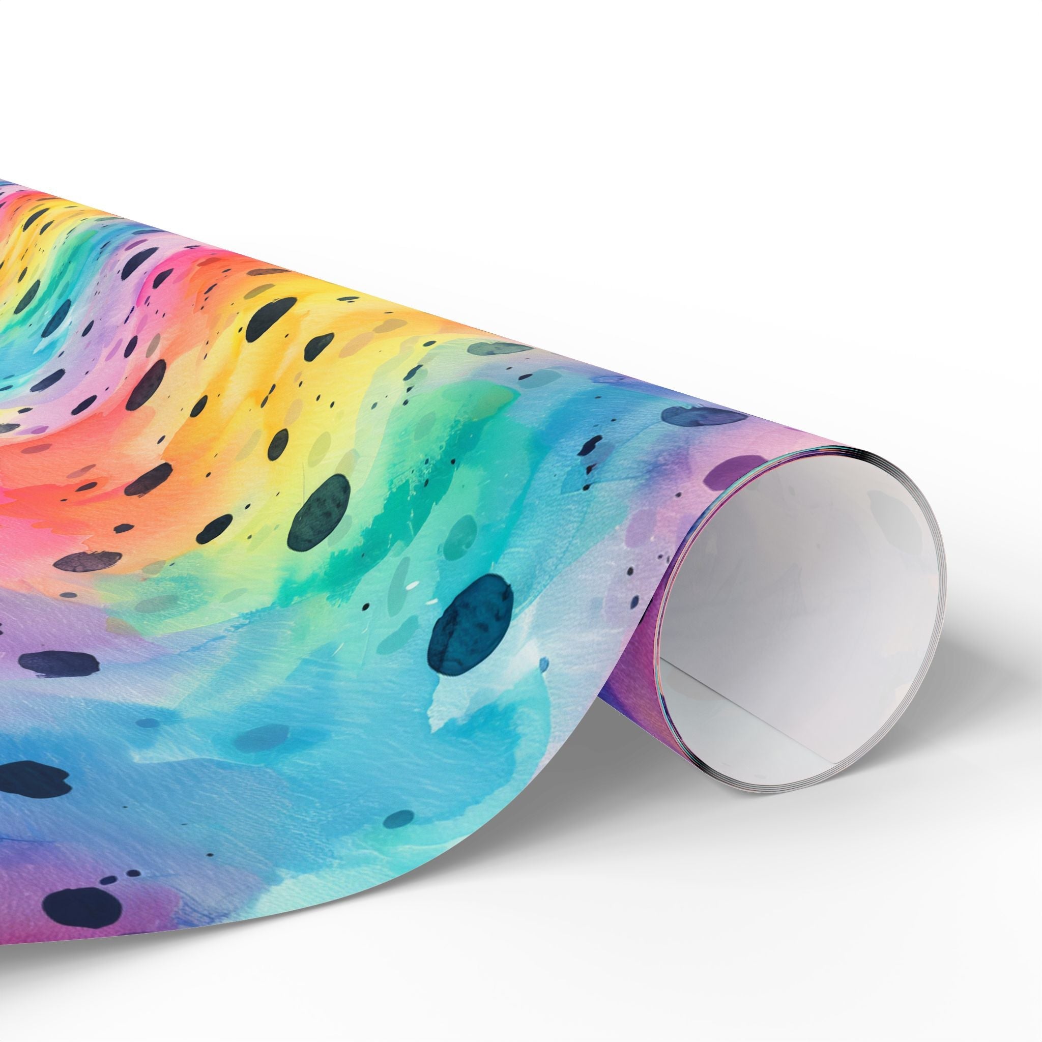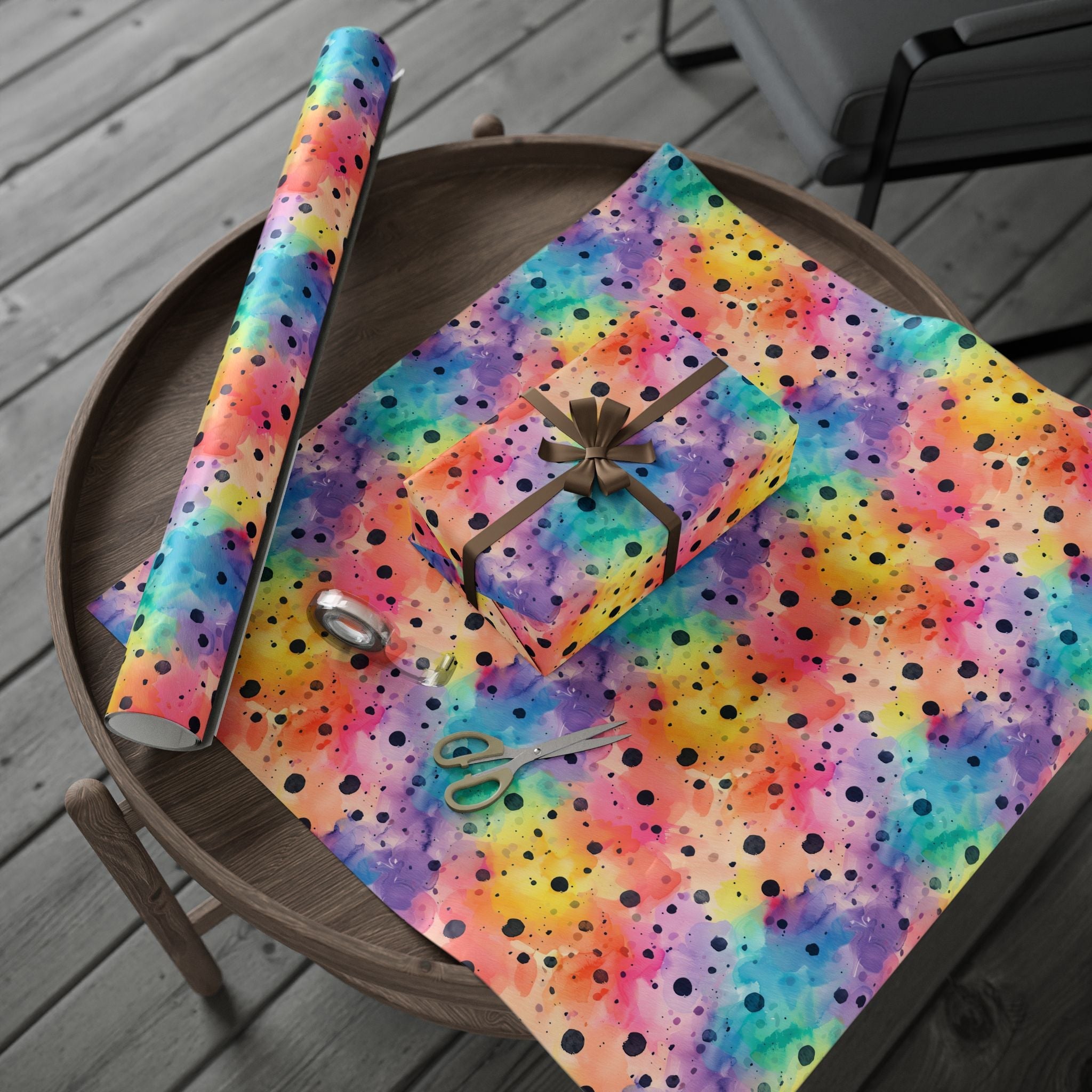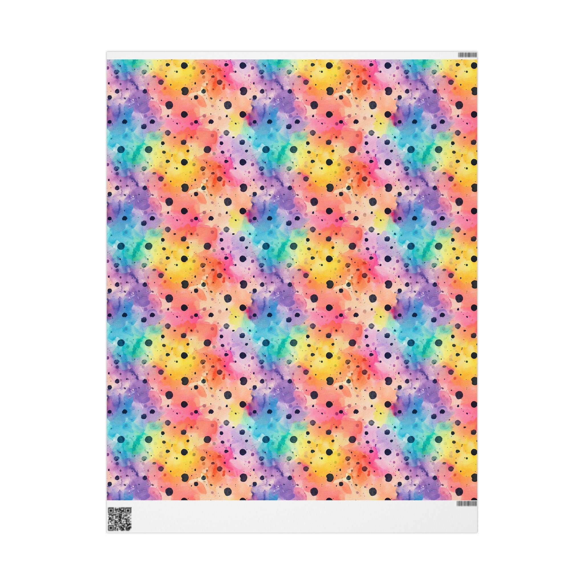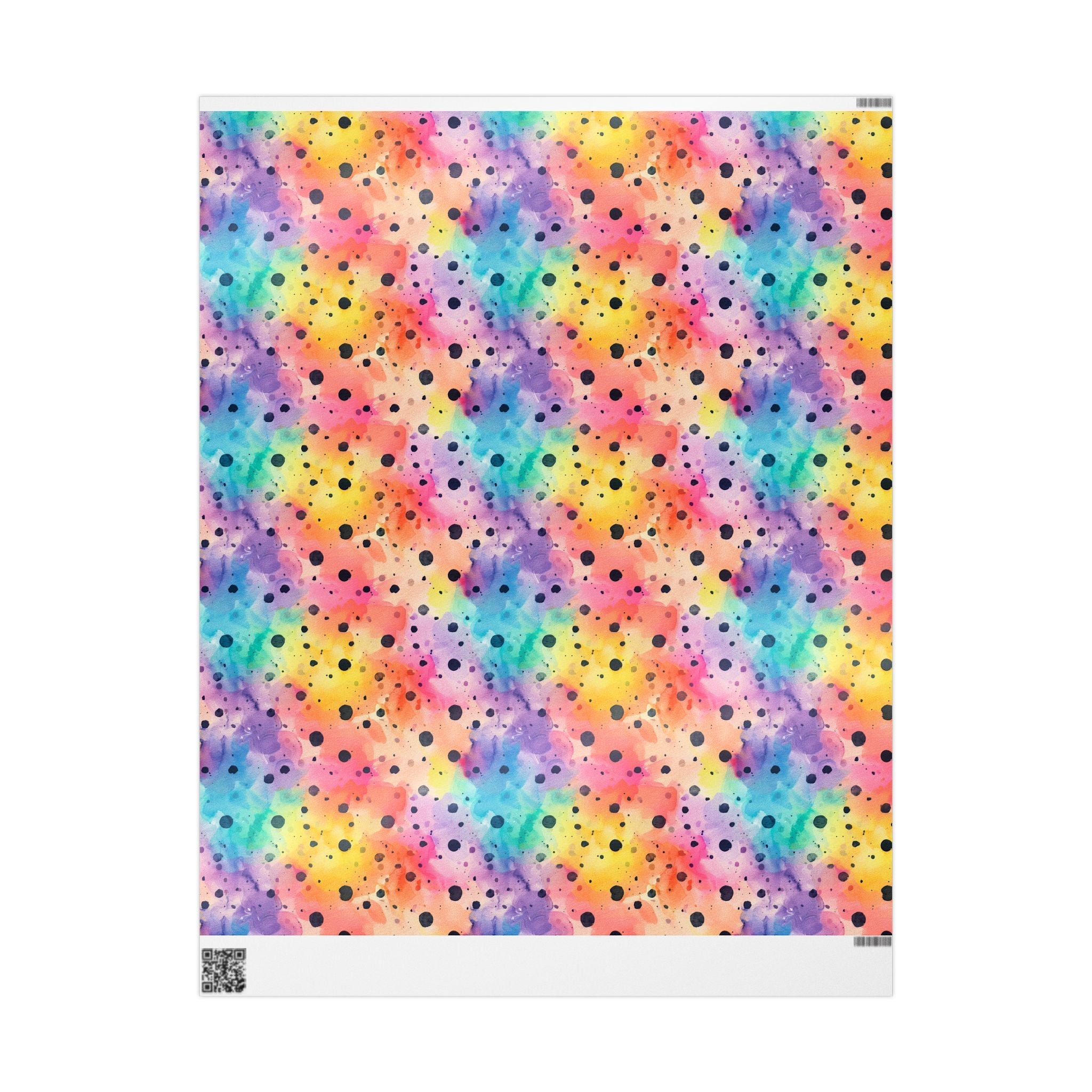 Bespattered Facade Rainbow Watercolor Dots Wrapping Paper | Three Sizes | Glossy or Matte