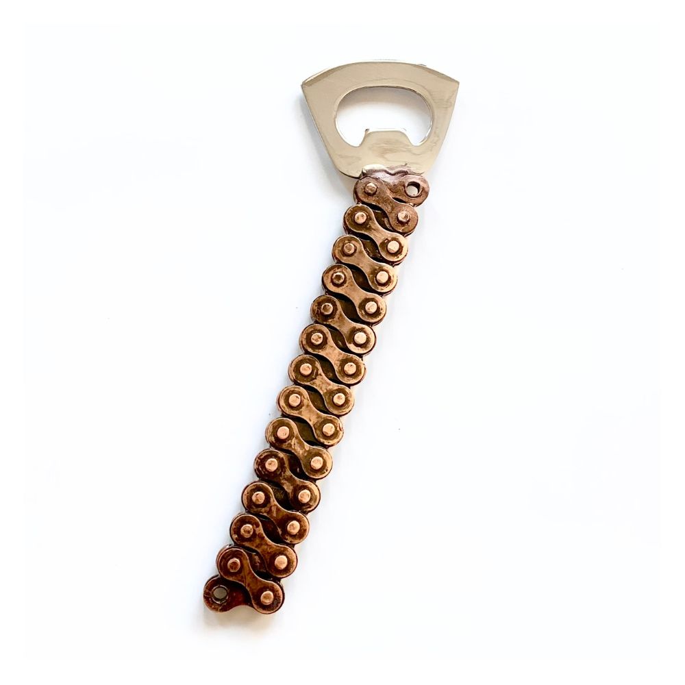 A bottle opener for your favorite bicyclist! It's designed with a tilted fulcrum for easy use.