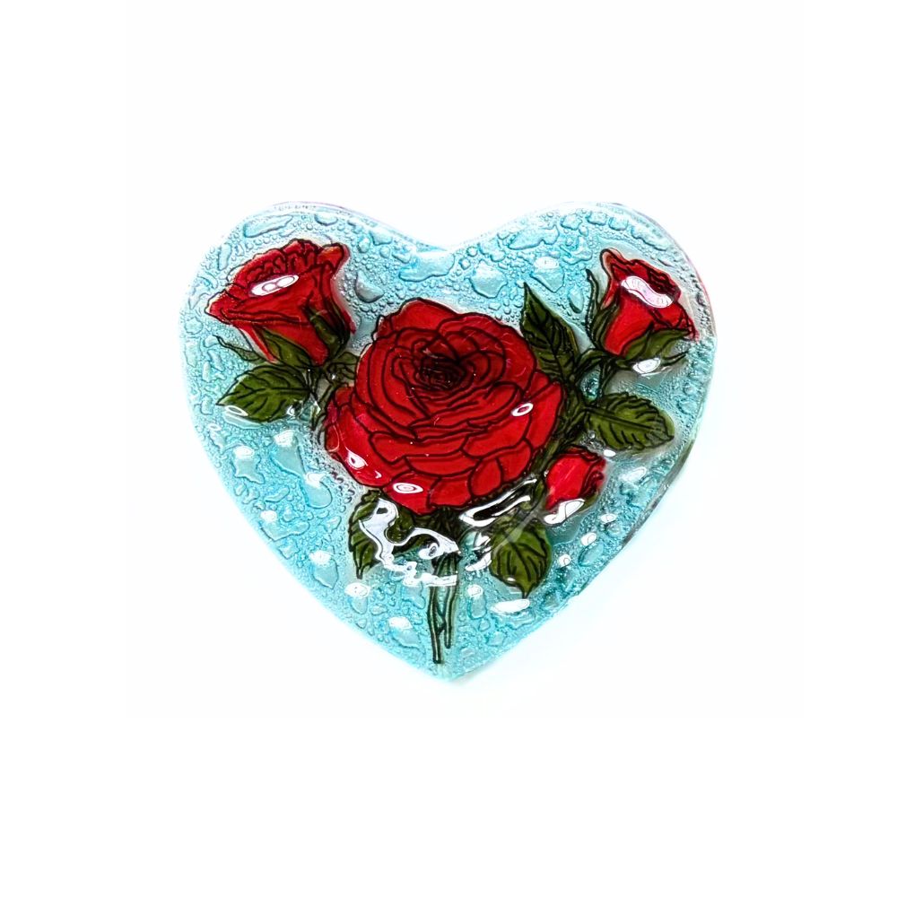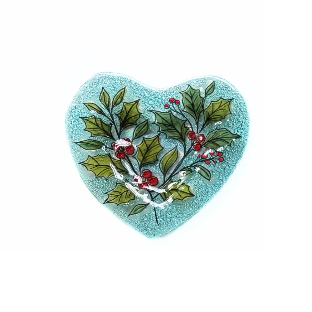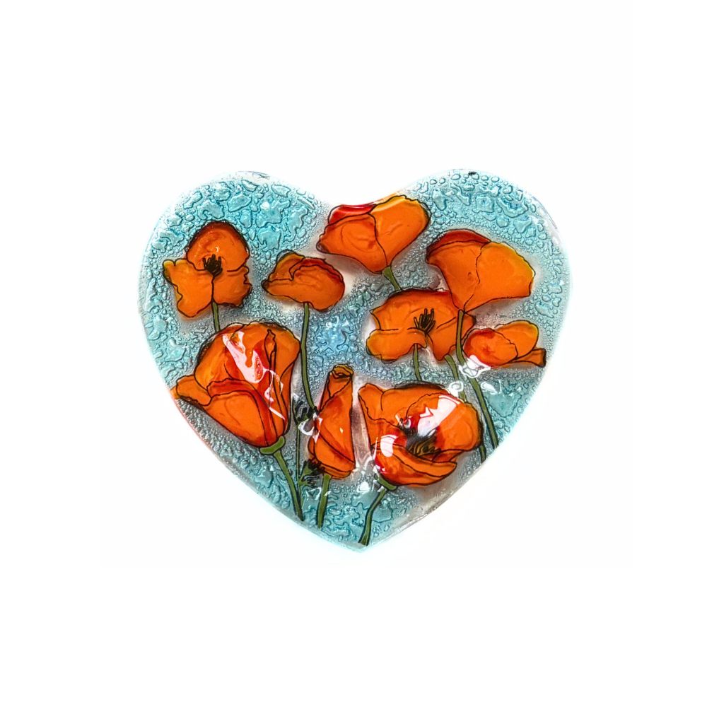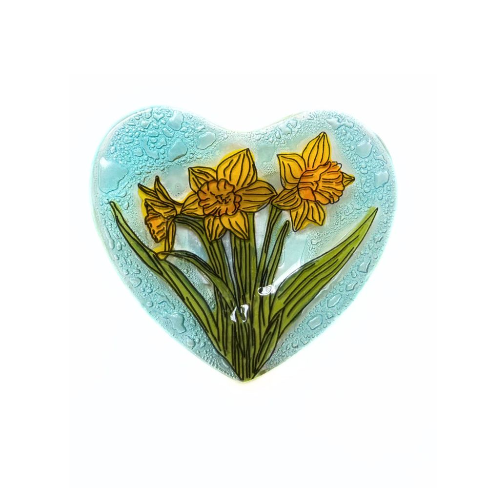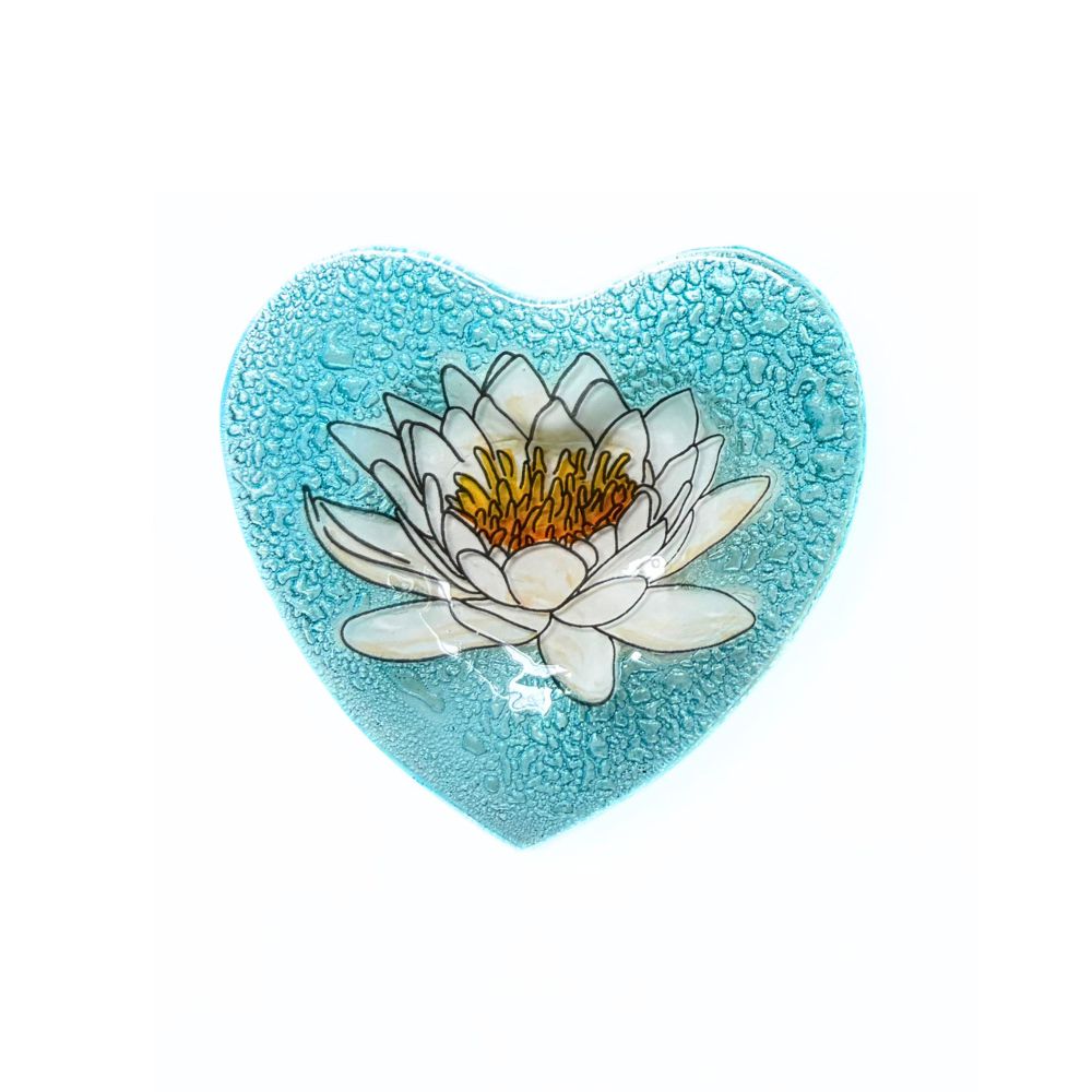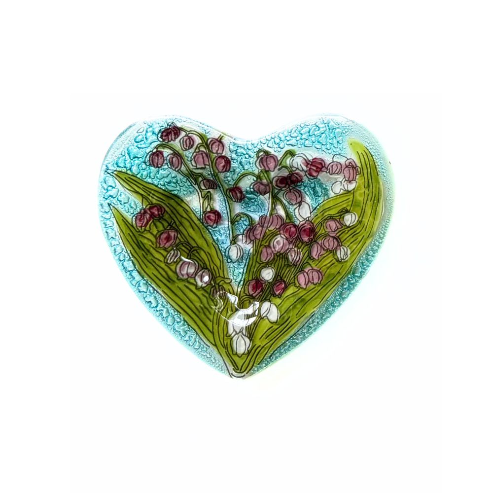 Choose from 12 months of flowers! Pick your birthday blossom or any floral that speaks to you. This unique heart dish is handcrafted from recycled glass and then colors and shapes come to life with fusion. Perfect for rings, small jewelry or change.