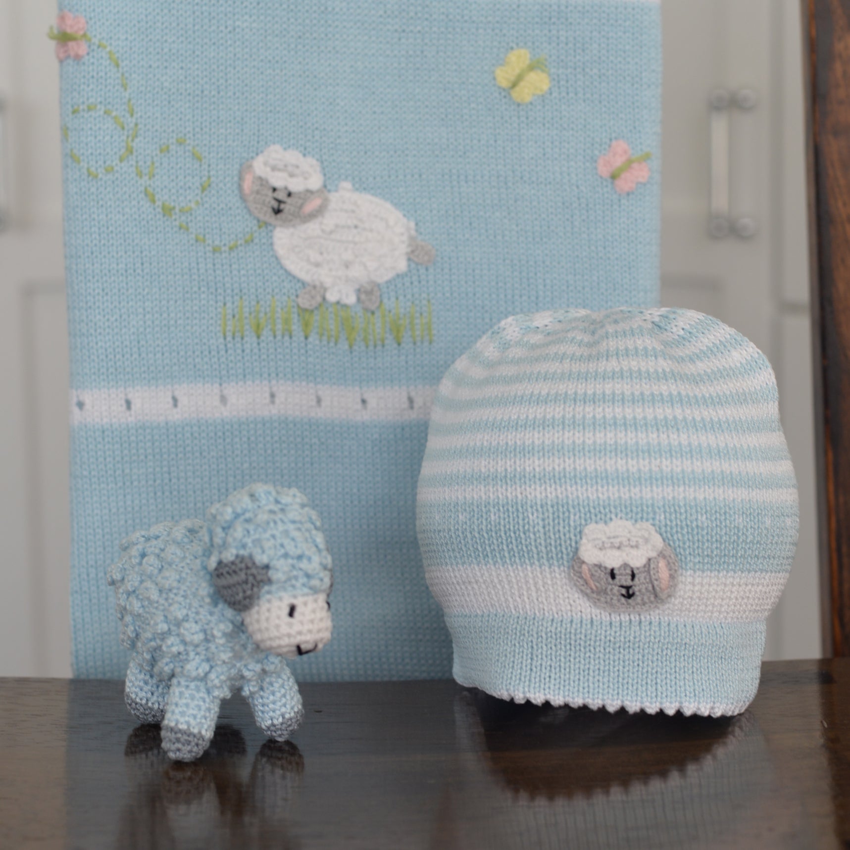 Coordinates with the crochet lamb, lamb baby blanket and lamb throw pillows for the perfect baby gift!