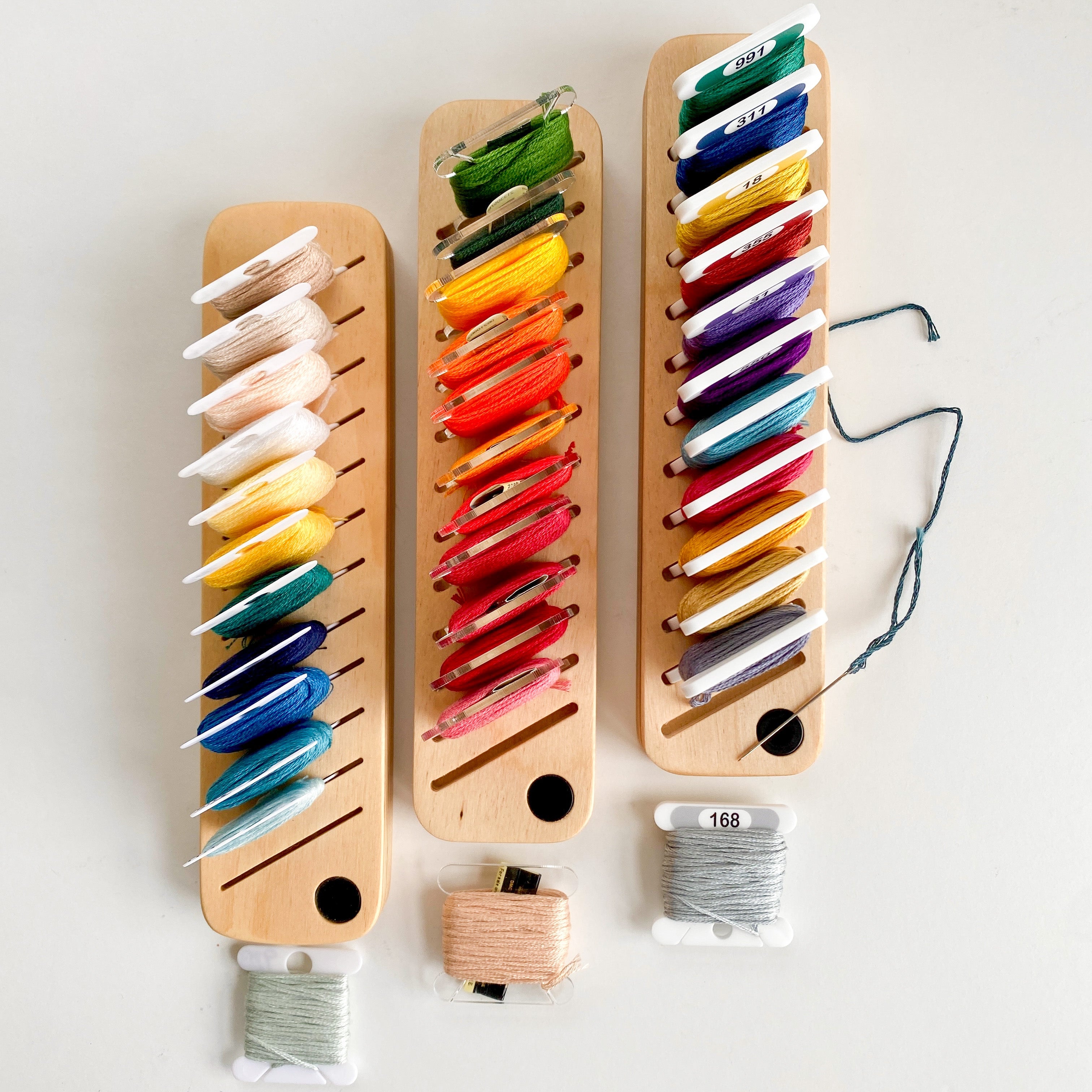 You love your box of bobbins. We all do. But during a project, isn’t it nice to have all of your colors at the ready? AND, not in a pile? or on the floor, right?