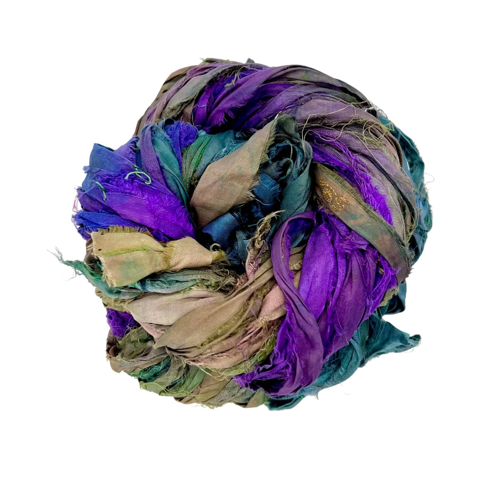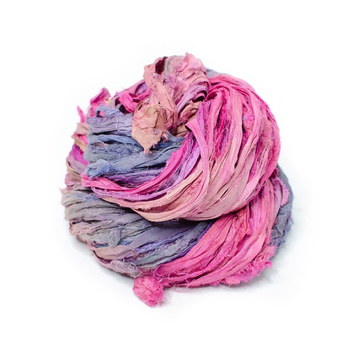 - And, let's talk about the yarn, it's actually an exotic recycled silk ribbon cord that has been dyed with a cool splatter technique. It doesn't get any cooler than that!