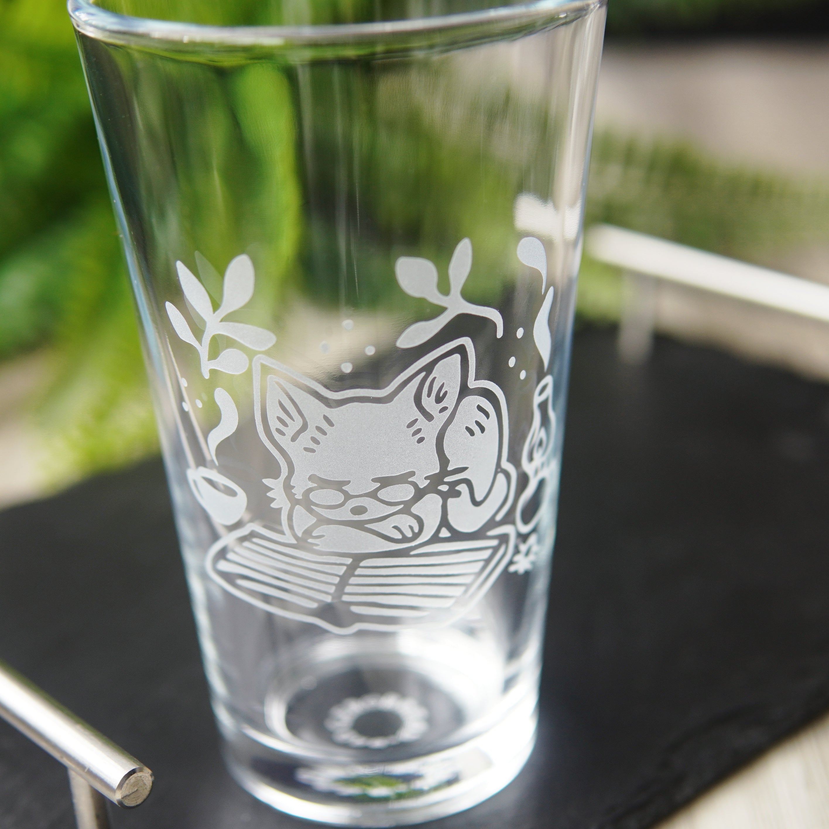 Cheers to the Book Cat pint glass, your perfect companion for a wild night of reading! Whether you're a cozy cat cuddling up with a good book or a party animal tearing through the pages, this etched glassware ensures you'll stay hydrated for any all-nighters.