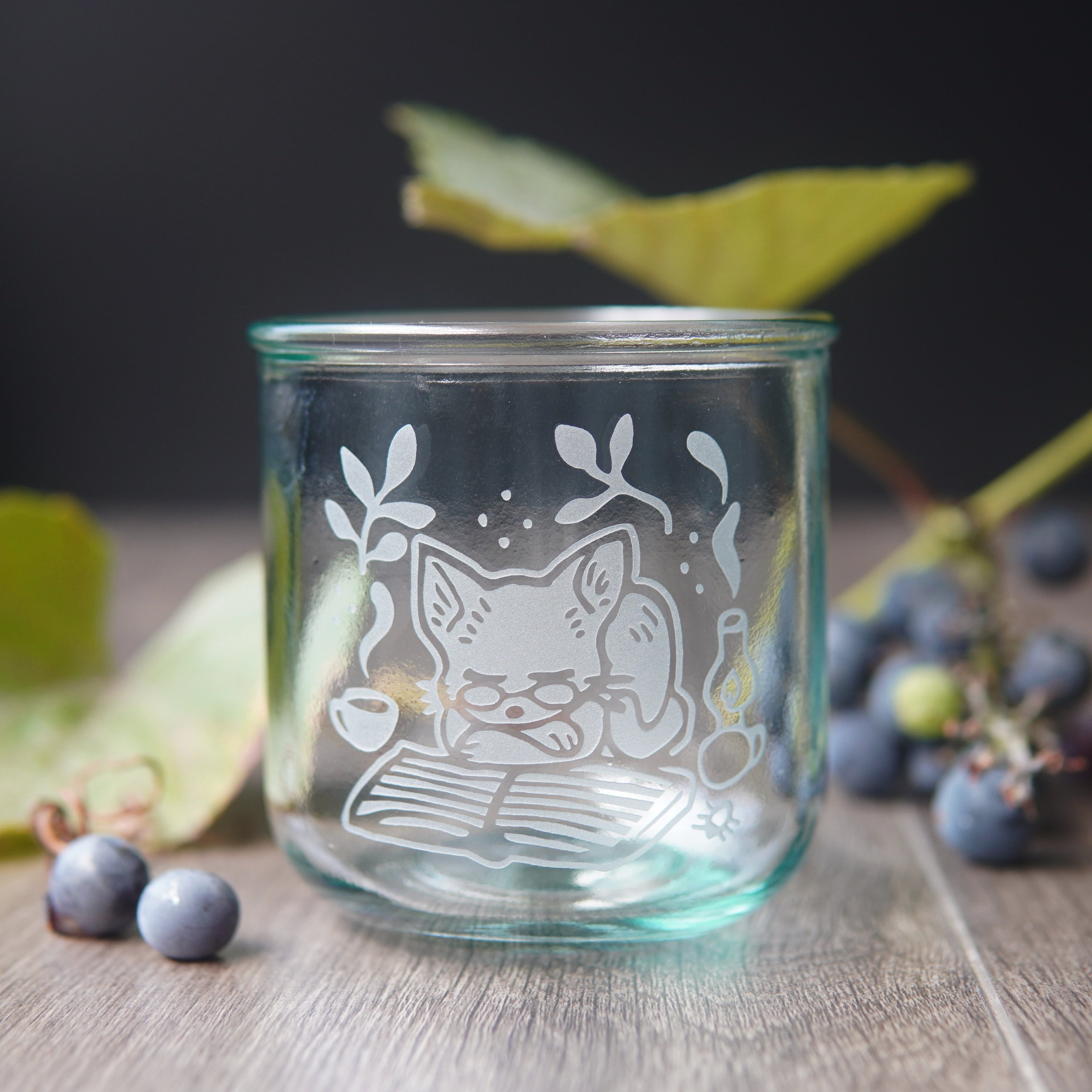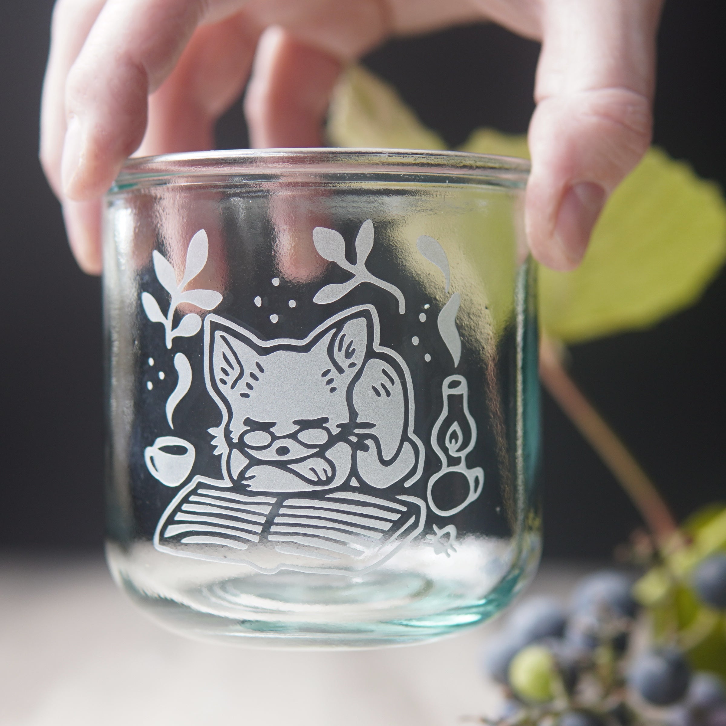 Book Cat Rustic Recycled Glass Candle Cup