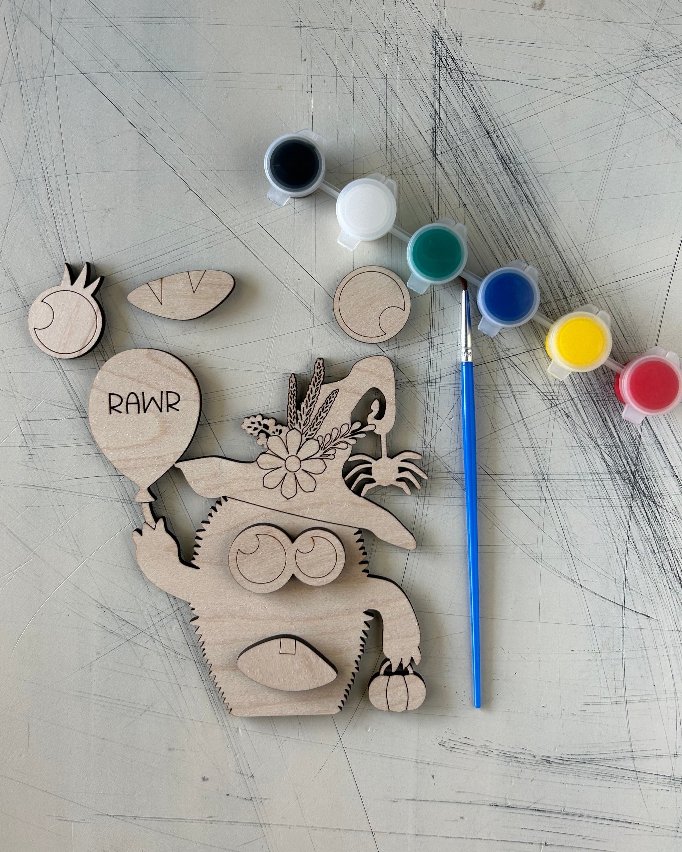 Build your own monster with this wood canvas paint kit. It makes for the perfect Halloween craft and/or Halloween party favor!