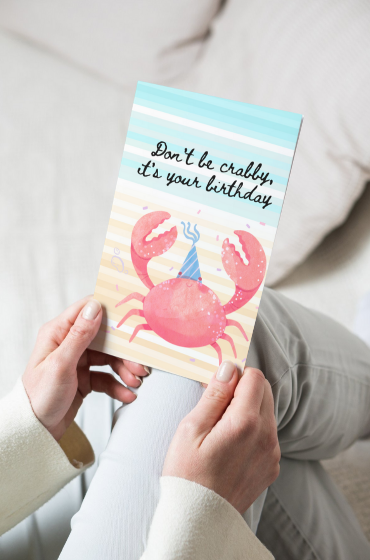 Card: Birthday animal themed punny cat, dog, horse, chick, crab, otter