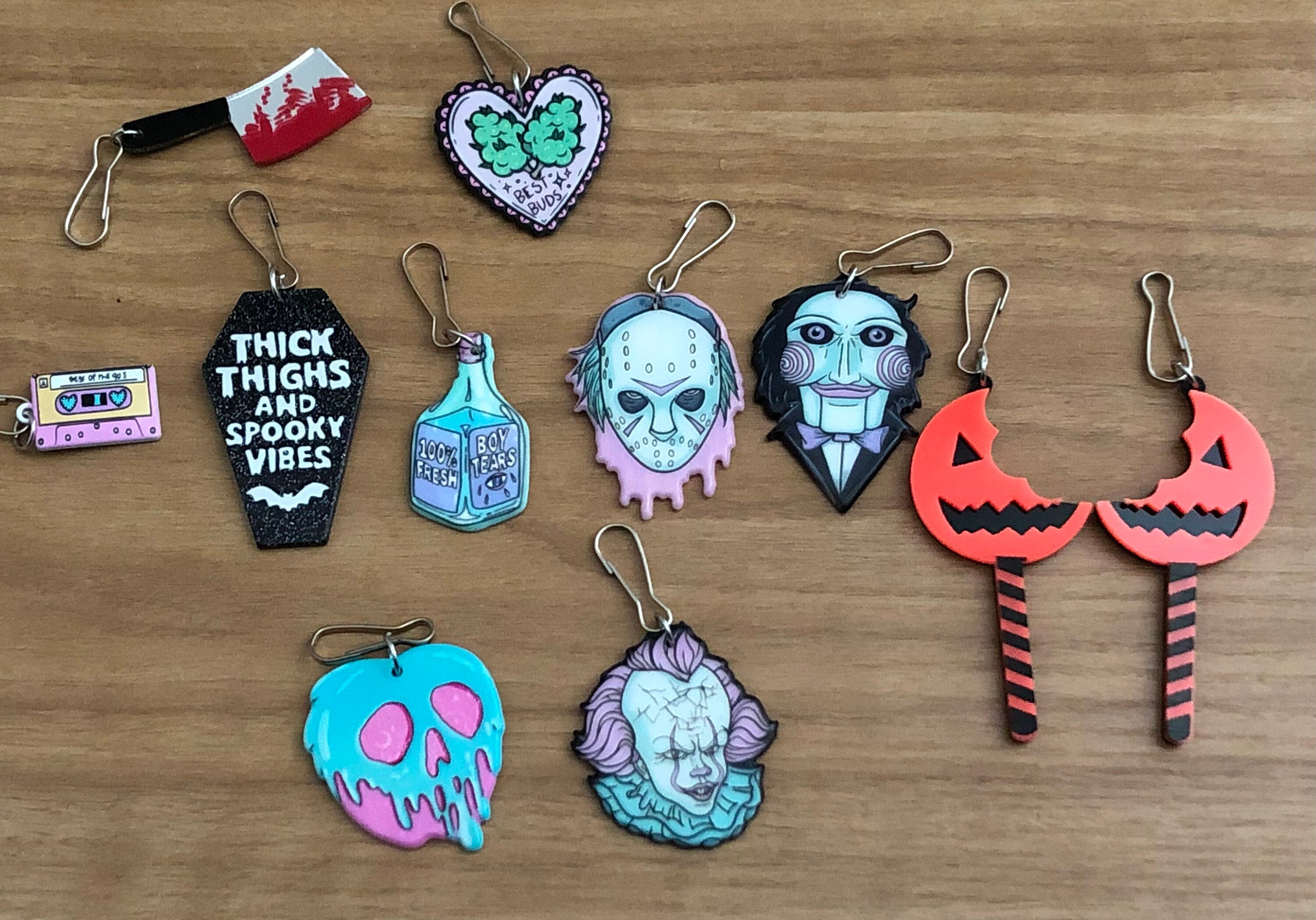 Spooky and cute charms. Great to hook onto a dog or cat’s collar, purse, or backpack.