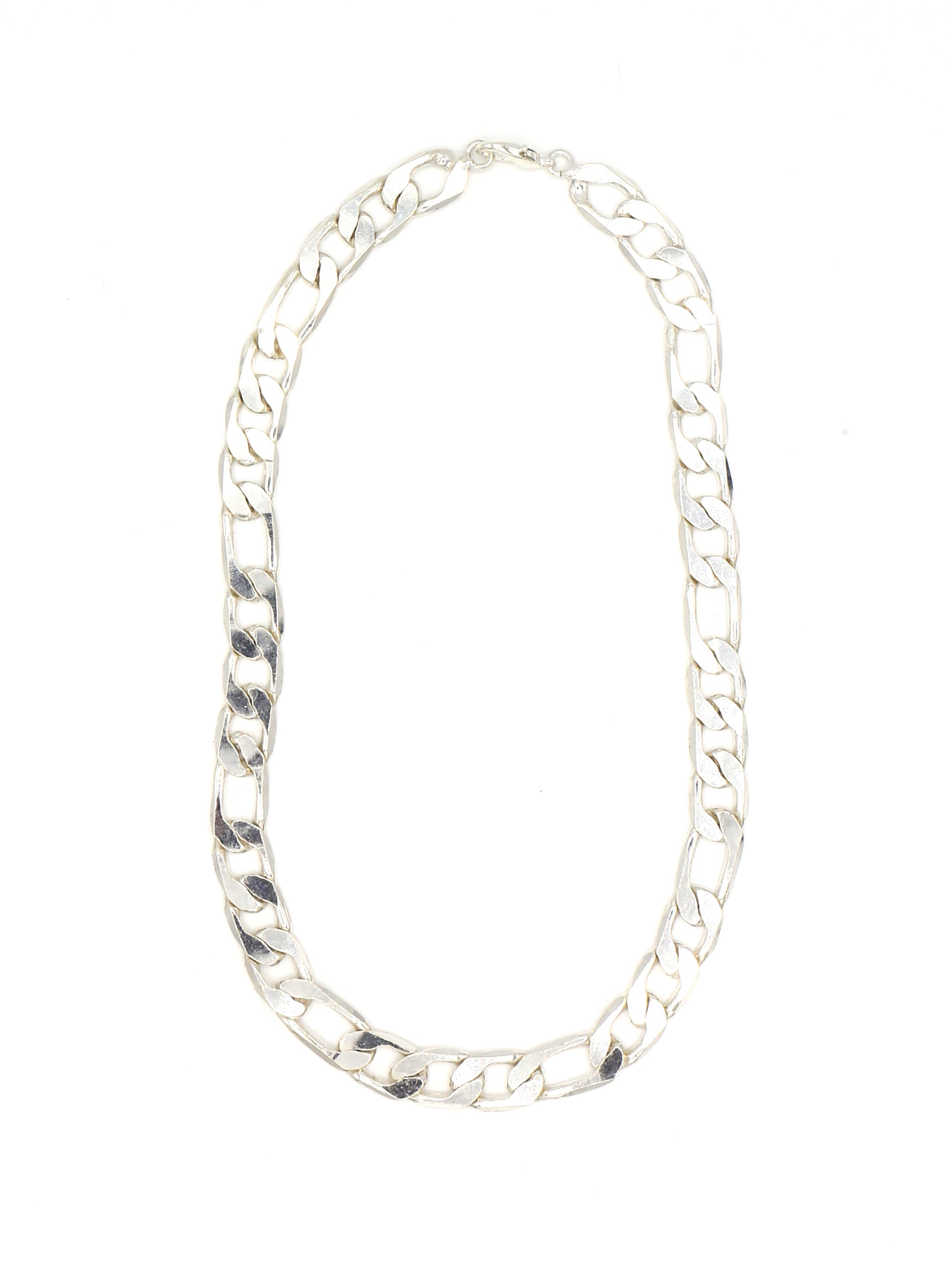 Silver necklace measures 18". Silver-plated recycled metal. Nickel-free.