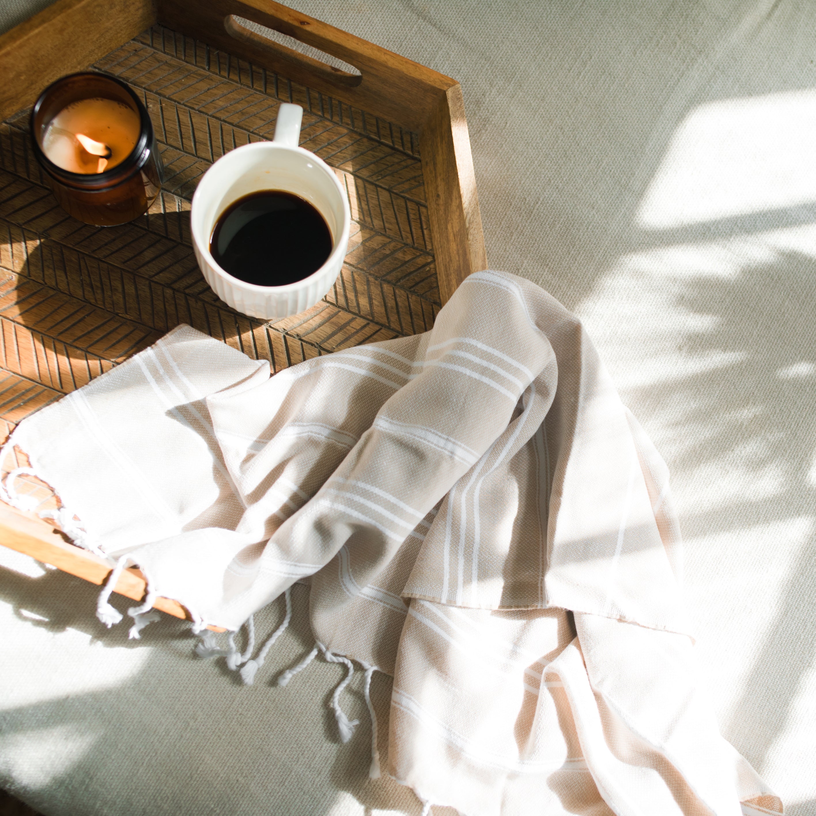 Our Turkish towels are loomed by small, family owned workshops in the Denizli region of Turkey. Weaving is the main source of income for these skilled weavers, who pride themselves on keeping the looming tradition alive, utilizing manual craftsmanship without compromising quality. They only use eco-friendly, OEKO-TEX certified, 100% natural fibers such as cotton and bamboo and colors are achieved through non-harmful dyes. Tassels are hand-knotted by women in their homes.