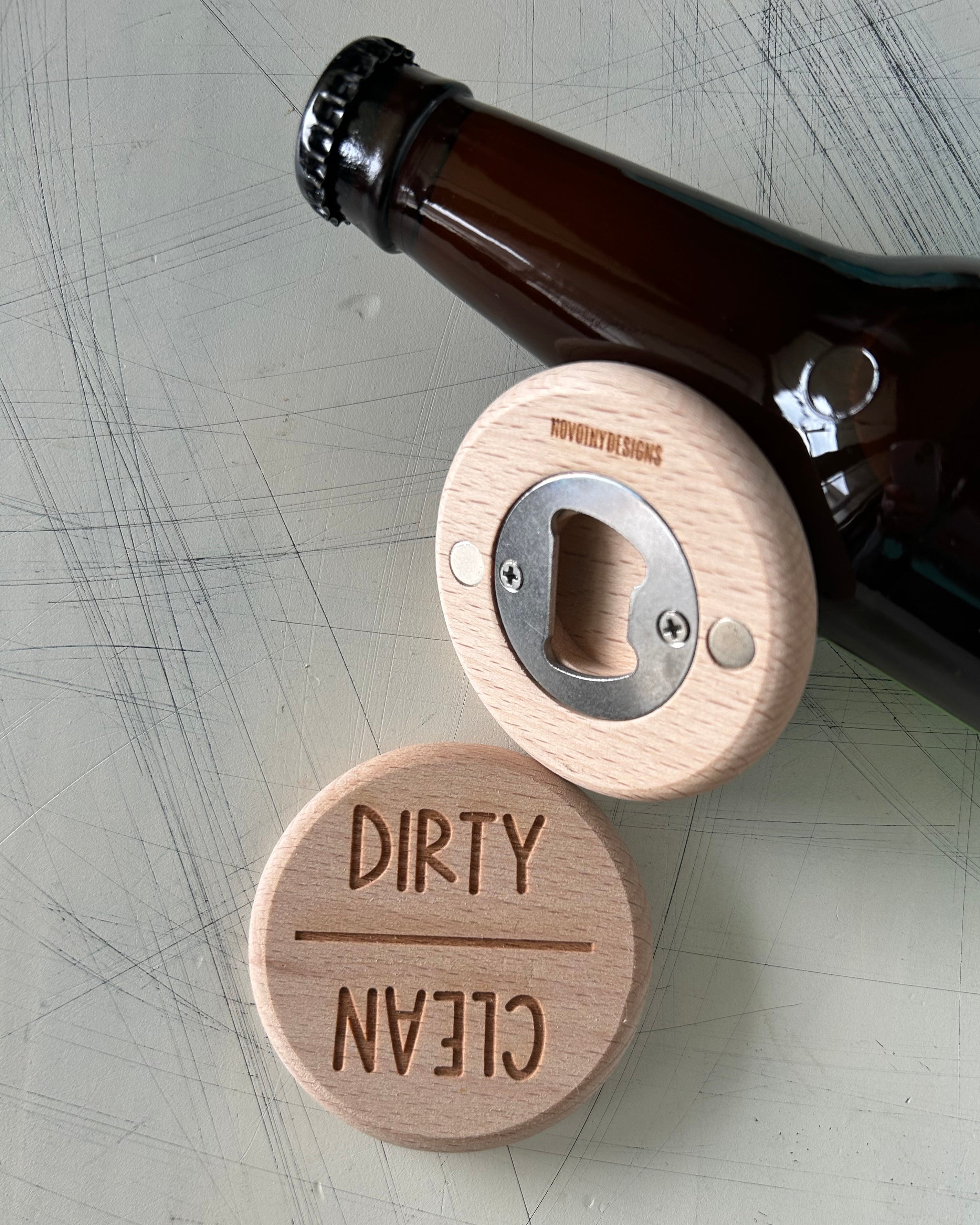 Clean/Dirty - magnetic wood dishwasher magnet and bottle opener