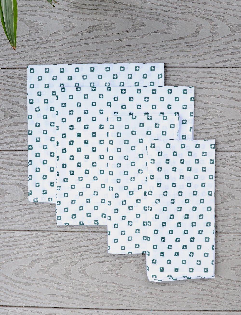 Cloth Napkins- Green Squares - Set of 4