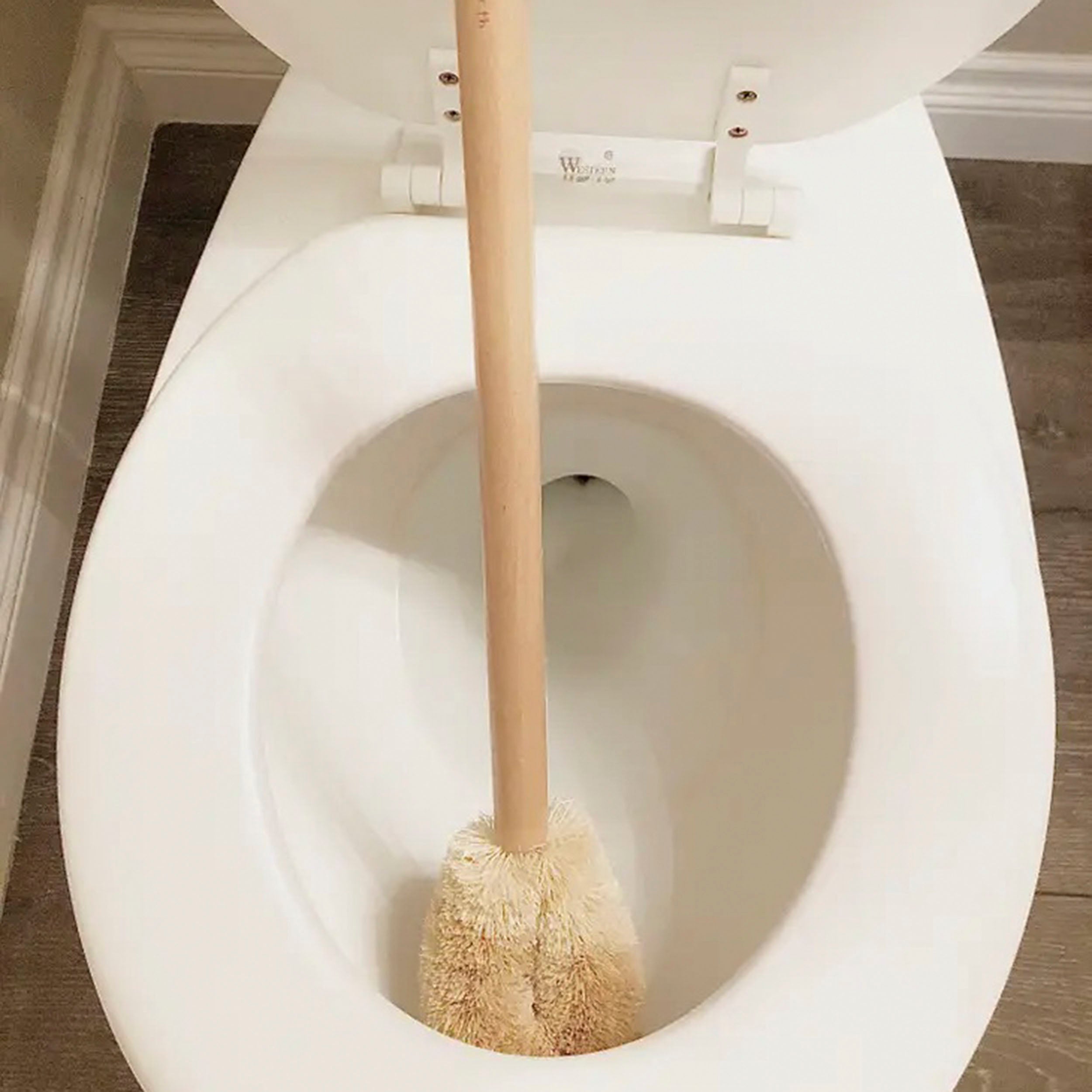 - Sustainable toilet brush with coconut fiber bristles and a beechwood handle.