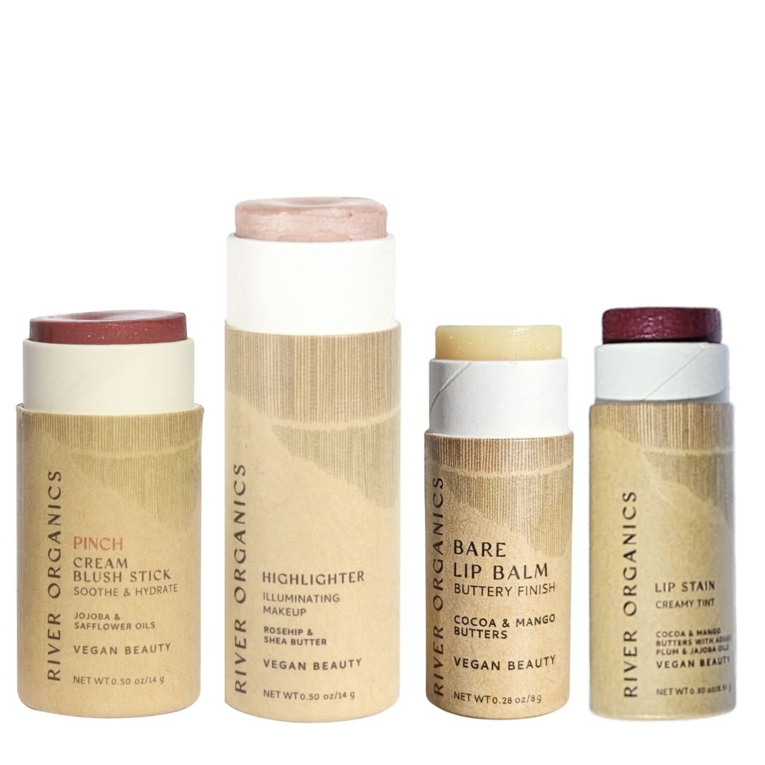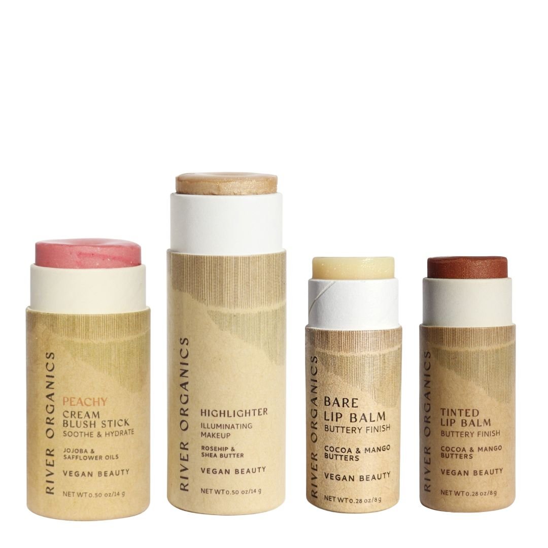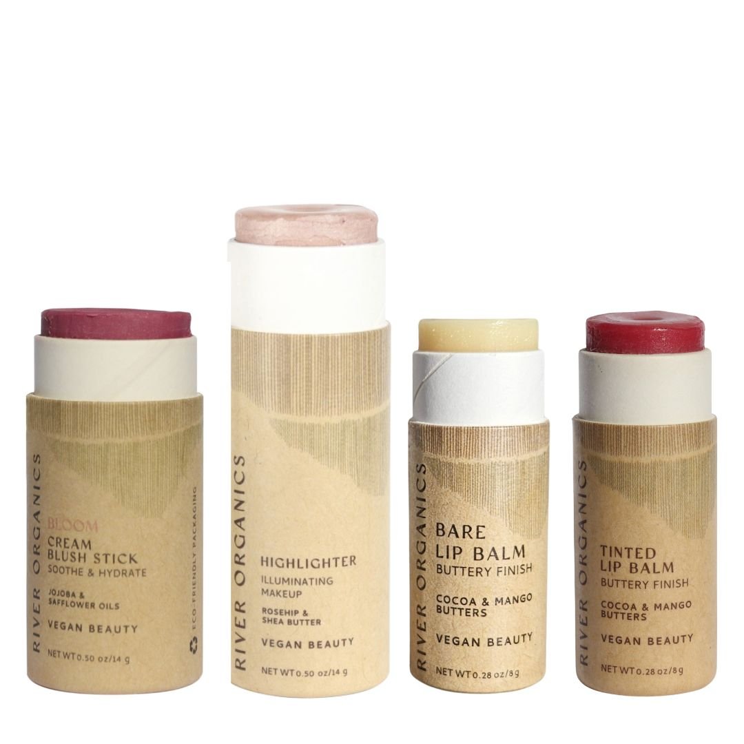 Sustainable makeup gift sets, vegan, zero-waste blush, highlighter & lip care curated in eco-friendly boxes for natural to bold beauty looks.