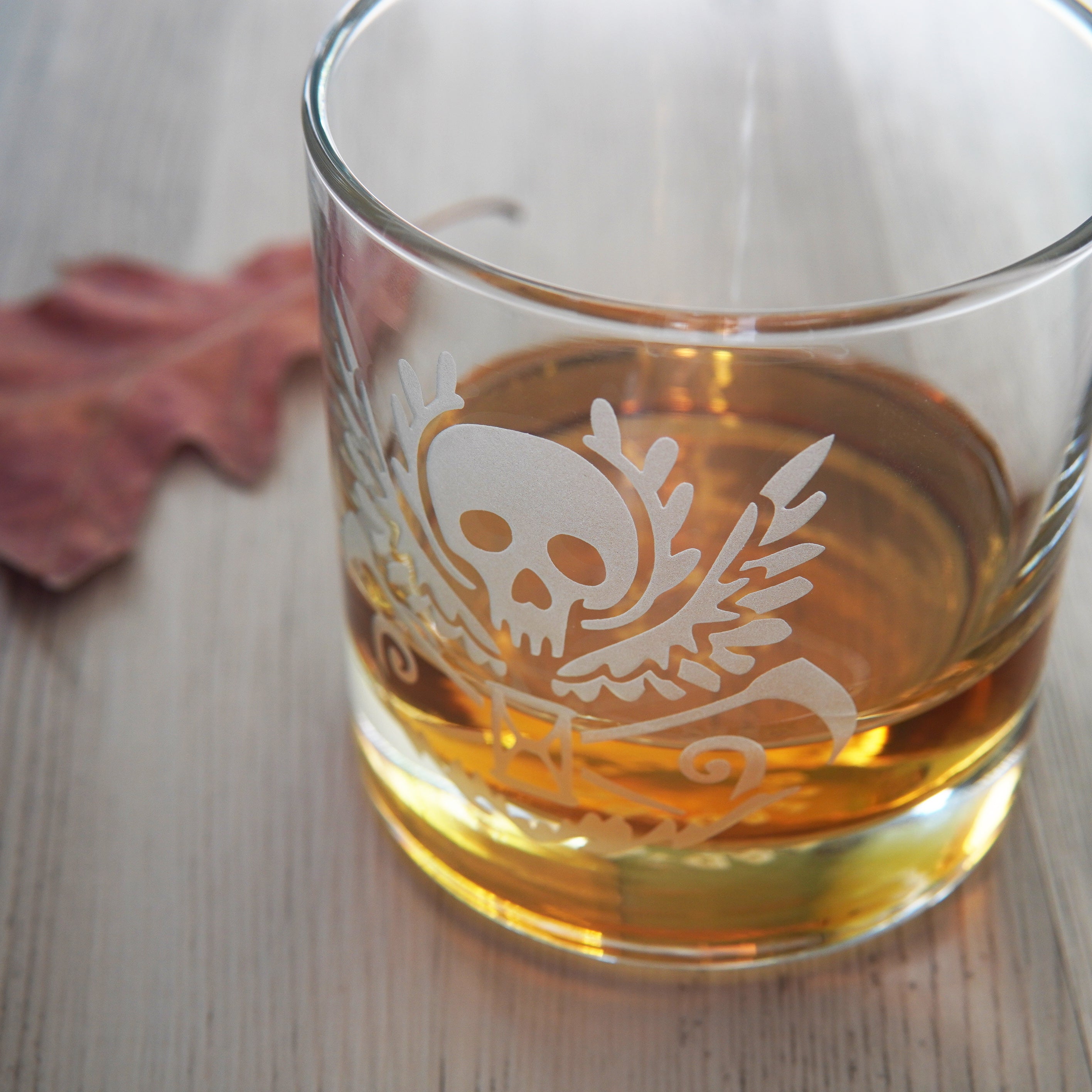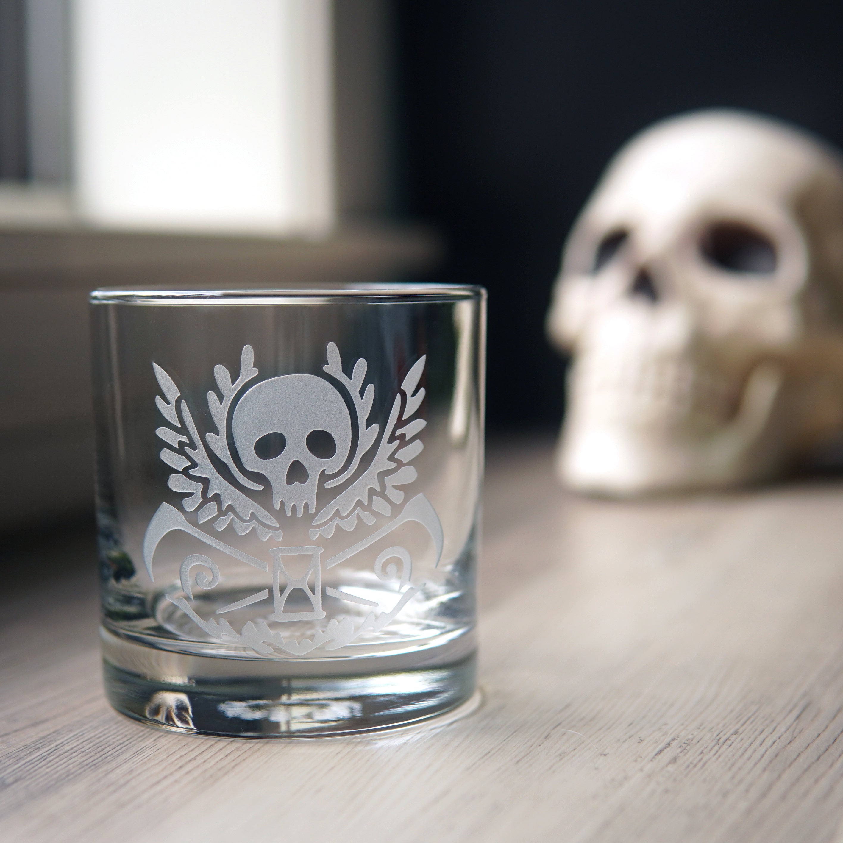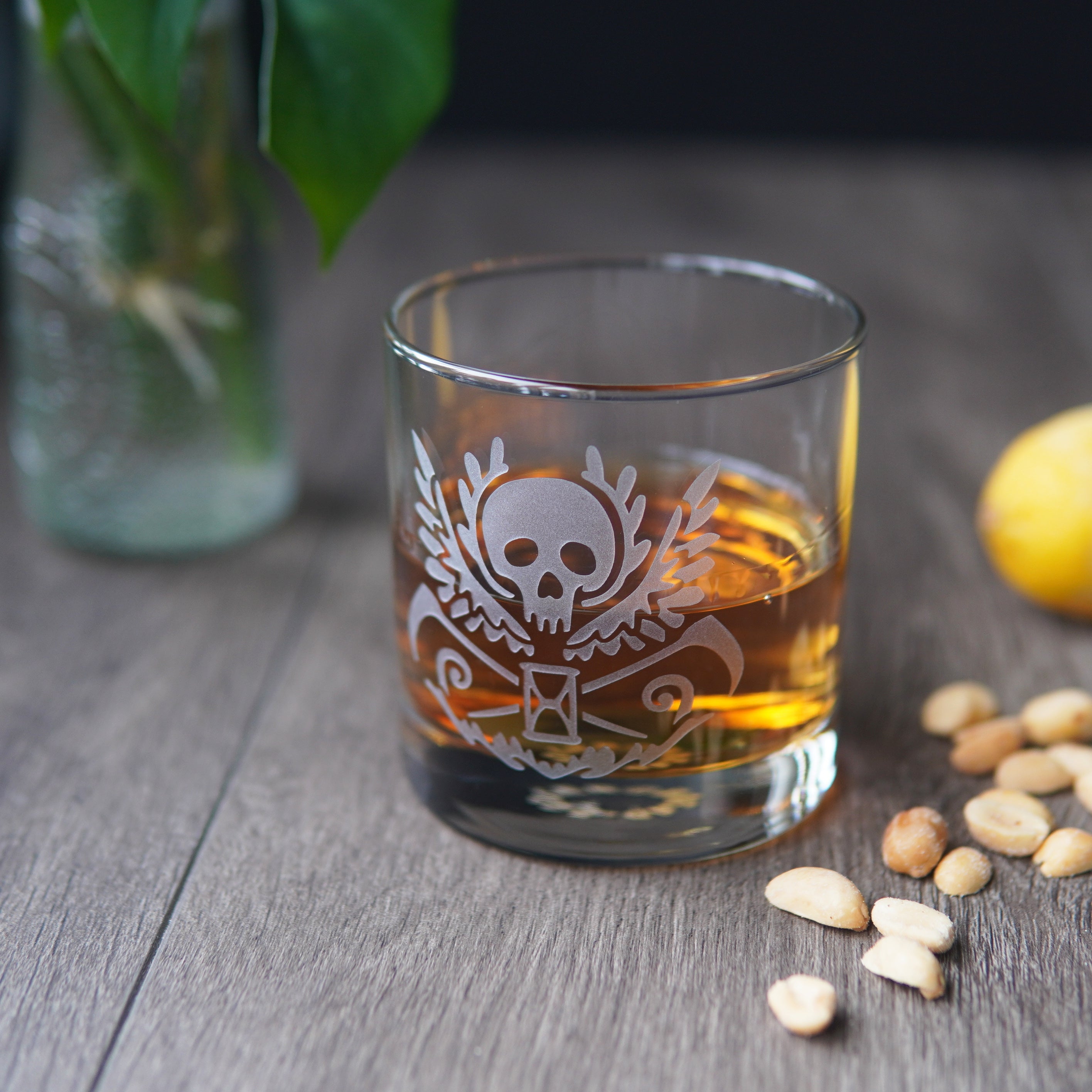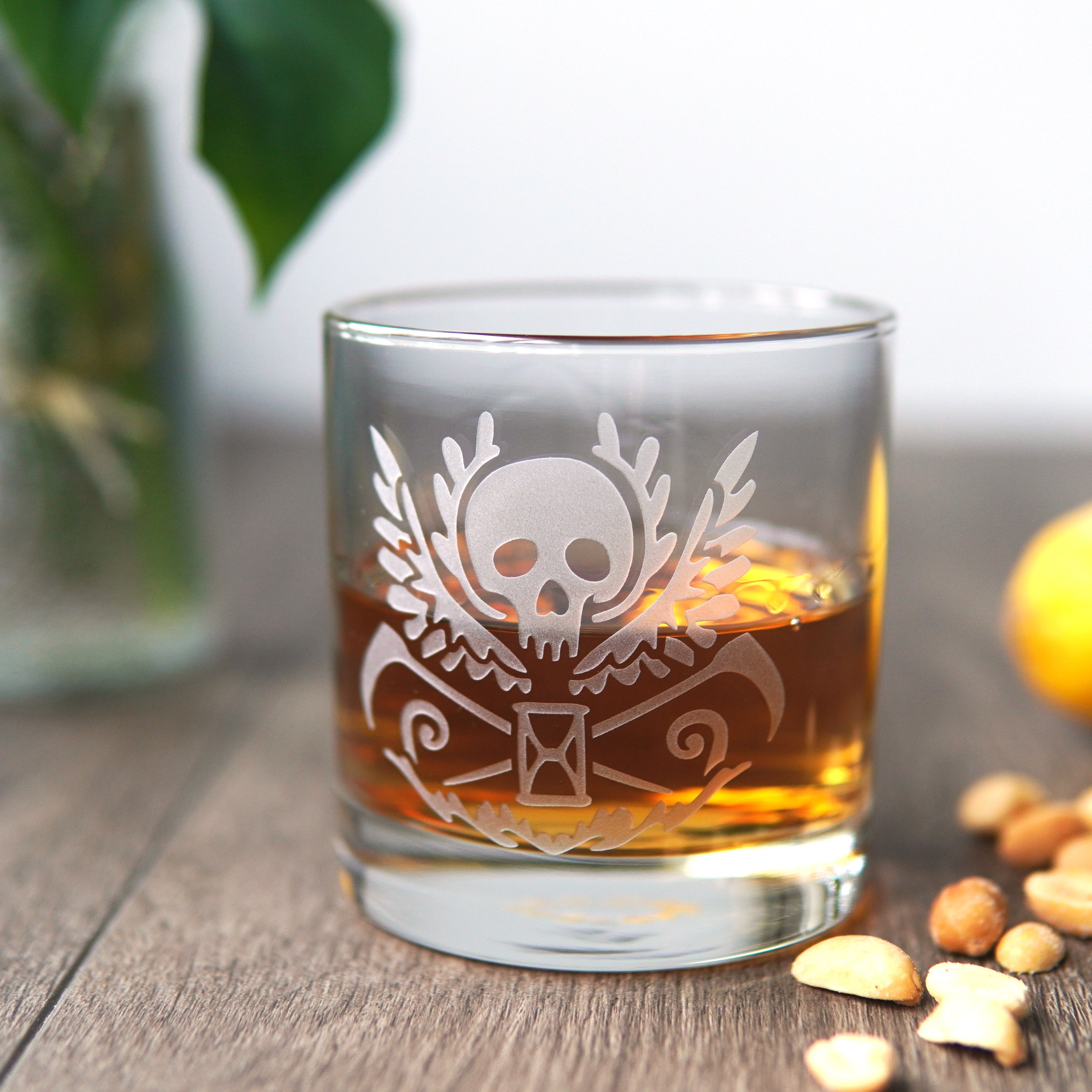 Enjoy your next craft cocktail in true Halloween-style with our unique Death Skull Cocktail Glass! Inspired by the iconic paintings on the ceiling of the Chapel of Bones ossuary in Portugal, this etched glassware is sure to add spooky flair to your barware collection.