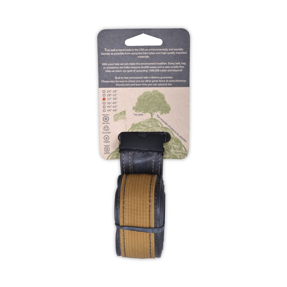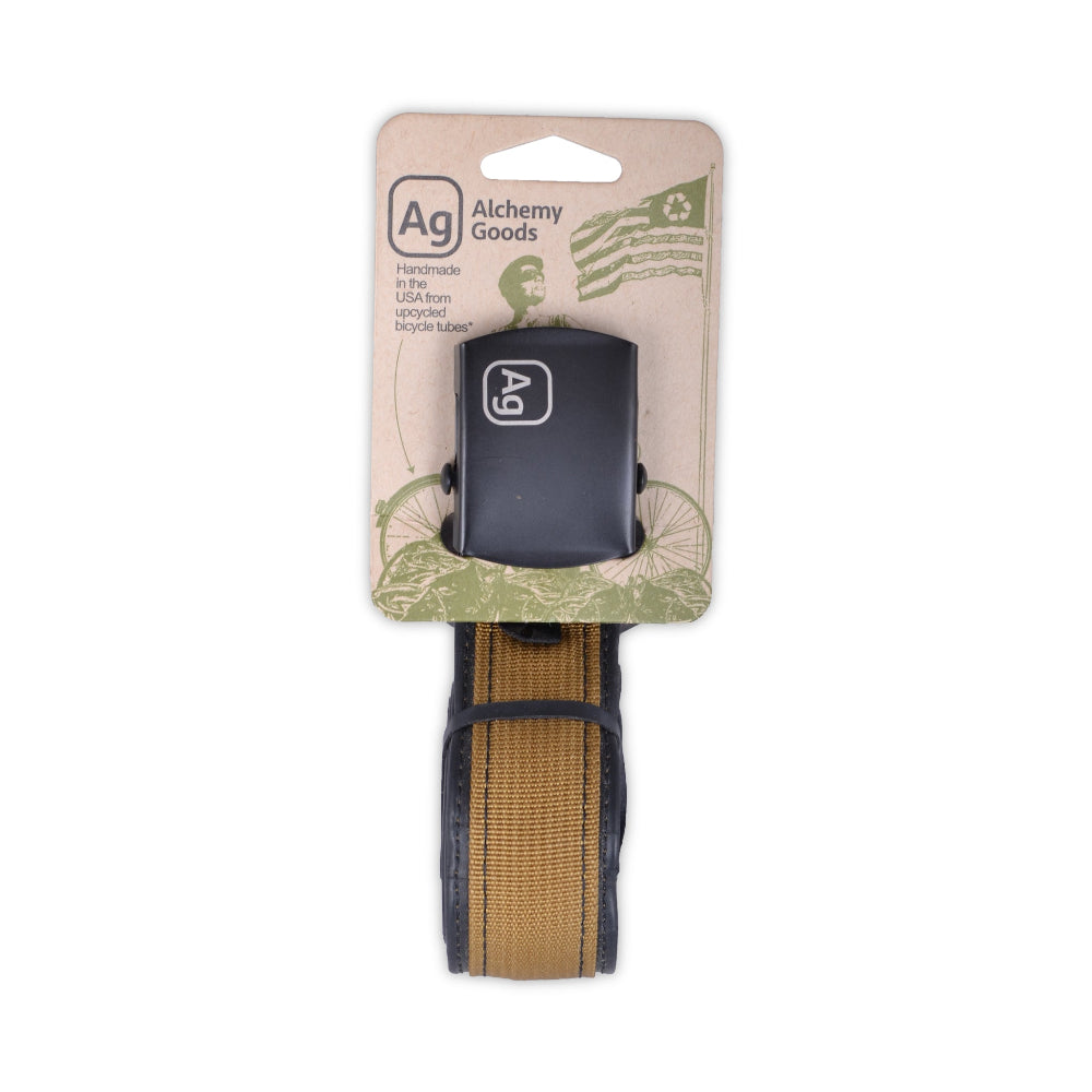 The Ag reversible Delridge Belt is made from a reclaimed bicycle inner tube and a colorful band of recycled polyester webbing. A matte black military-style buckle allows you to wear the belt with the tube side out, or colorful webbing side out to vary your look. Durable, stylish, and eco-friendly, the Delridge is available in 3 colors and 4 sizes.