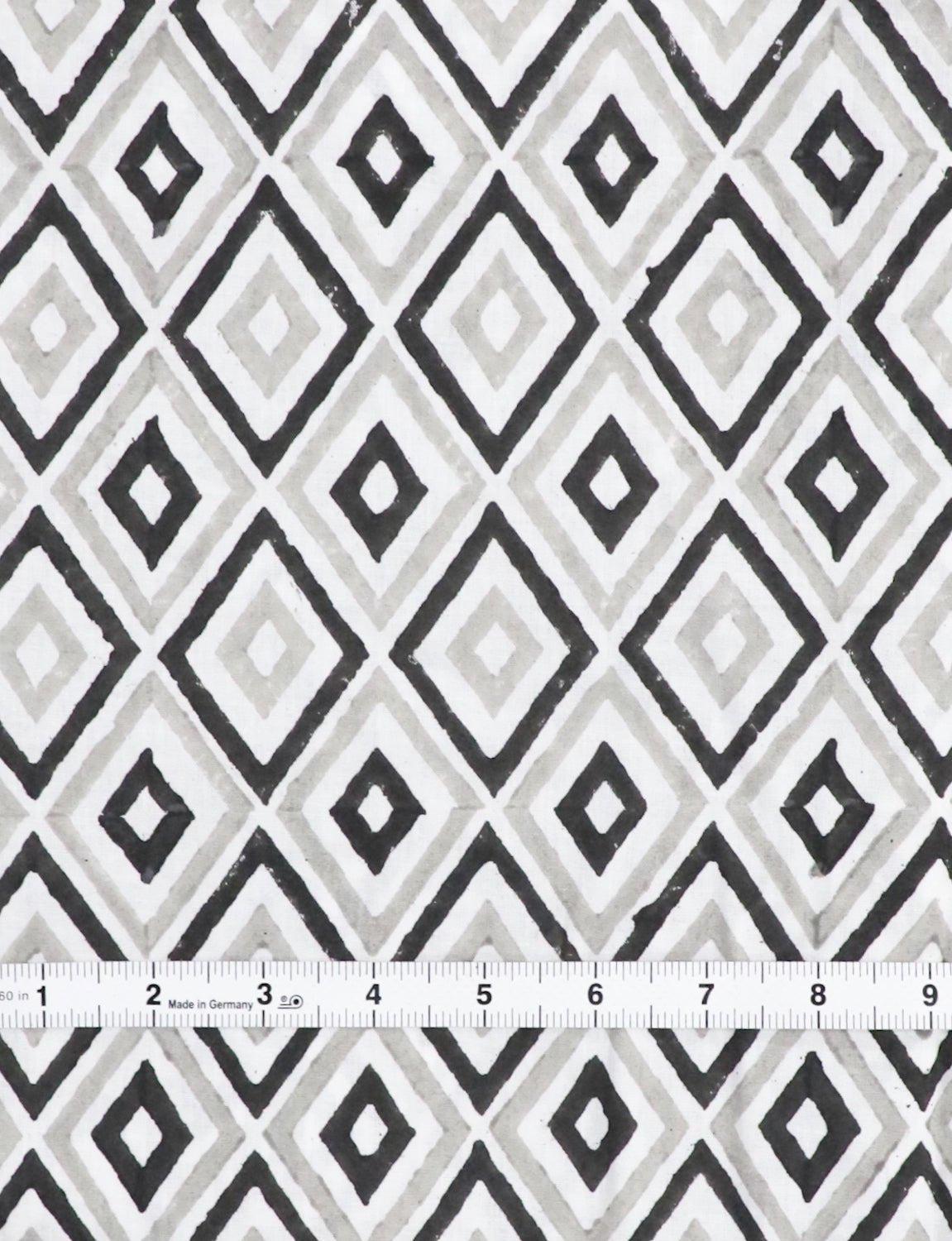 Diamond Block Printed Cotton Fabric by the Yard