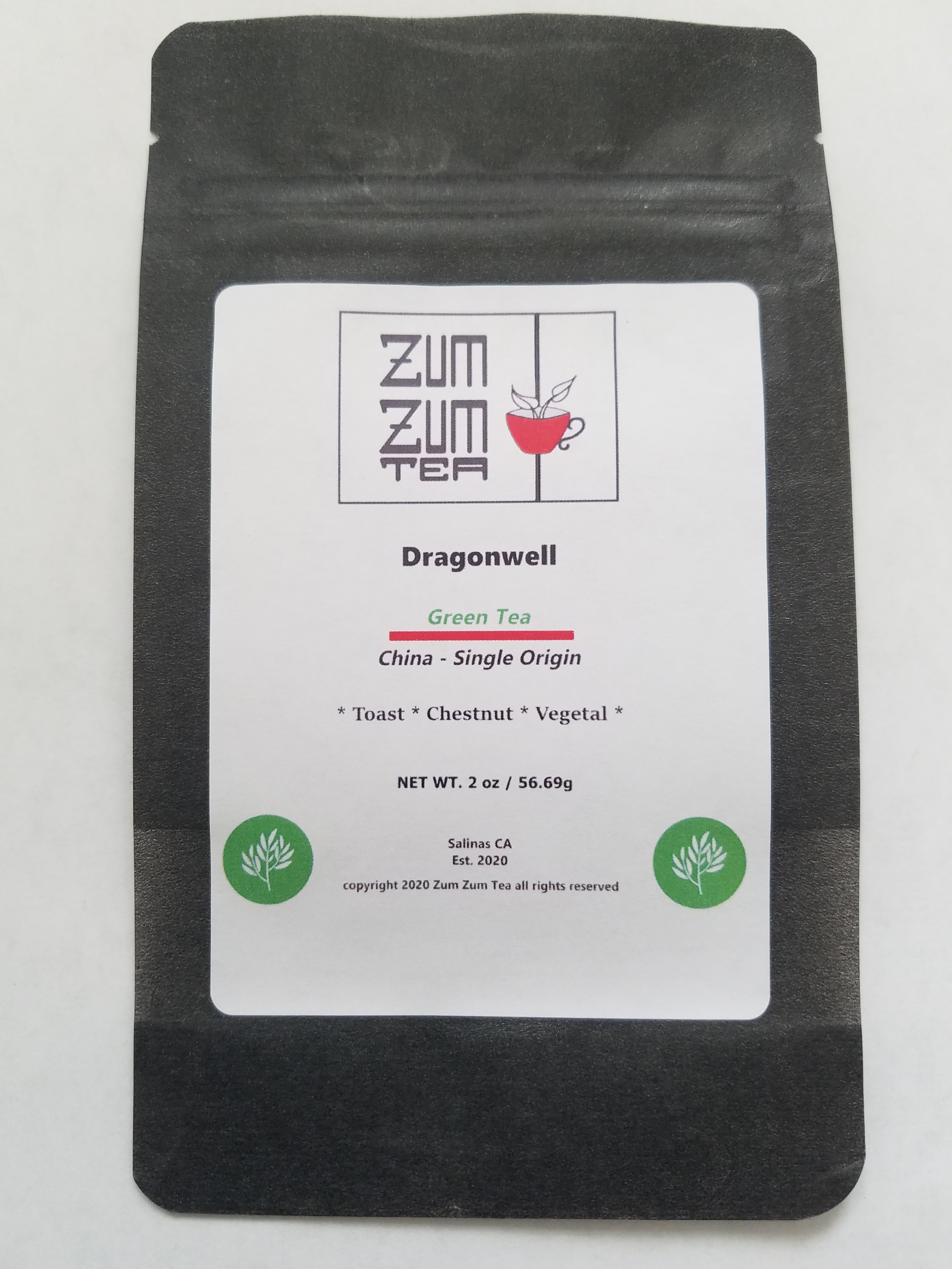 Perfect climate conditions in Southeast China allow for the production of this famous green tea specialty known as "Dragon Well Tea." This single origin green tea classic has a long, flat leaf, a jade green cup and an elegant, mild and delicate flavor. The result of highly skilled shaping in a hot wok. This process, known as pan-firing or pan-frying, was perfected in China by tea masters over the centuries and gives the tea an welcoming and toasty aroma. It's subtle and sweet, and has a rounded flavor with nuances of roasted chestnut that make this a truly satisfying cup of tea.