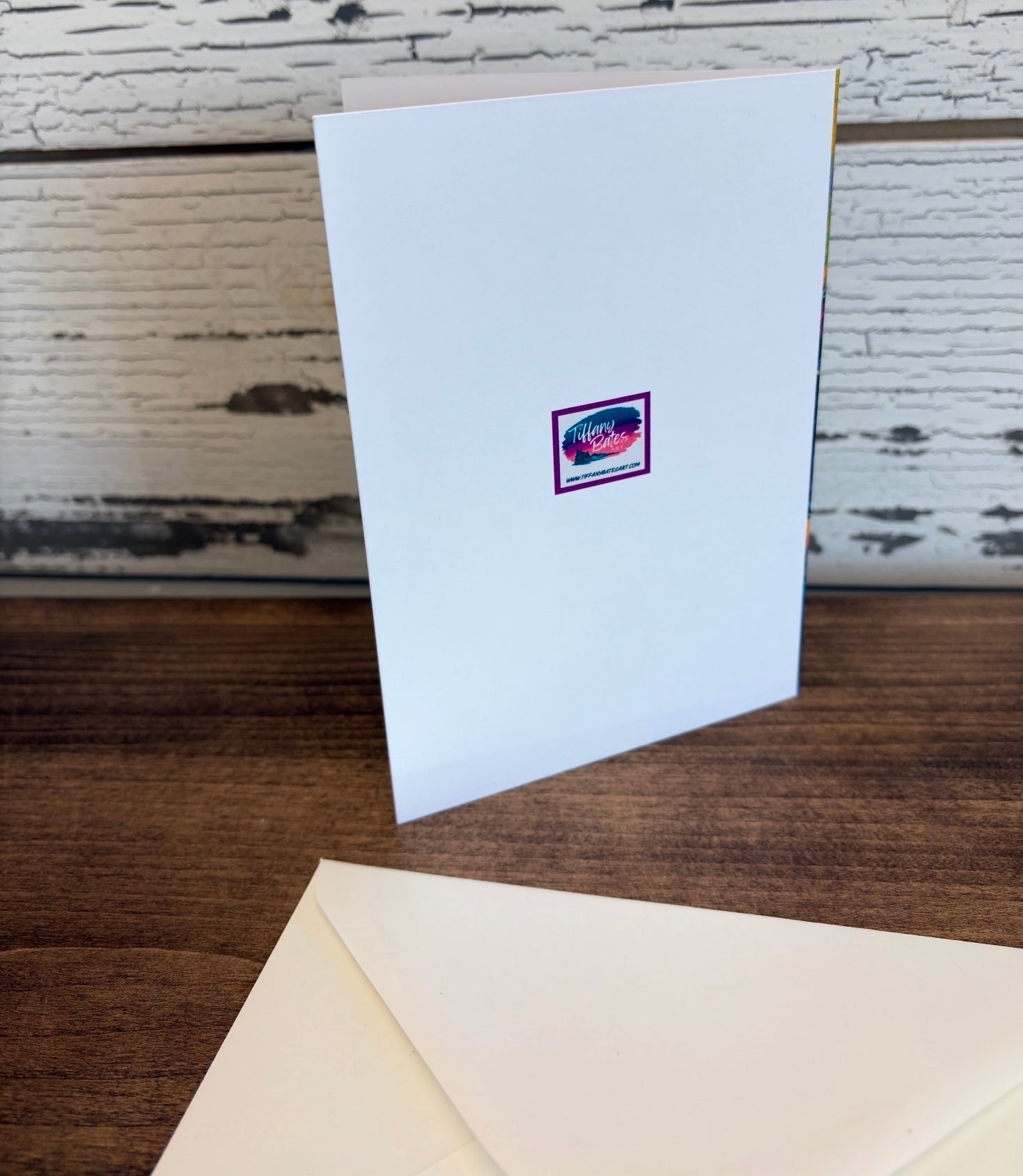 Send a burst of vibrant energy with an artist-designed greeting card that transforms a thoughtful message into a keepsake! Printed on sustainably sourced 16pt paper with a satin finish, which showcases the rich, vibrant colors of the artwork. Grab one today and share art and joy with those you love!