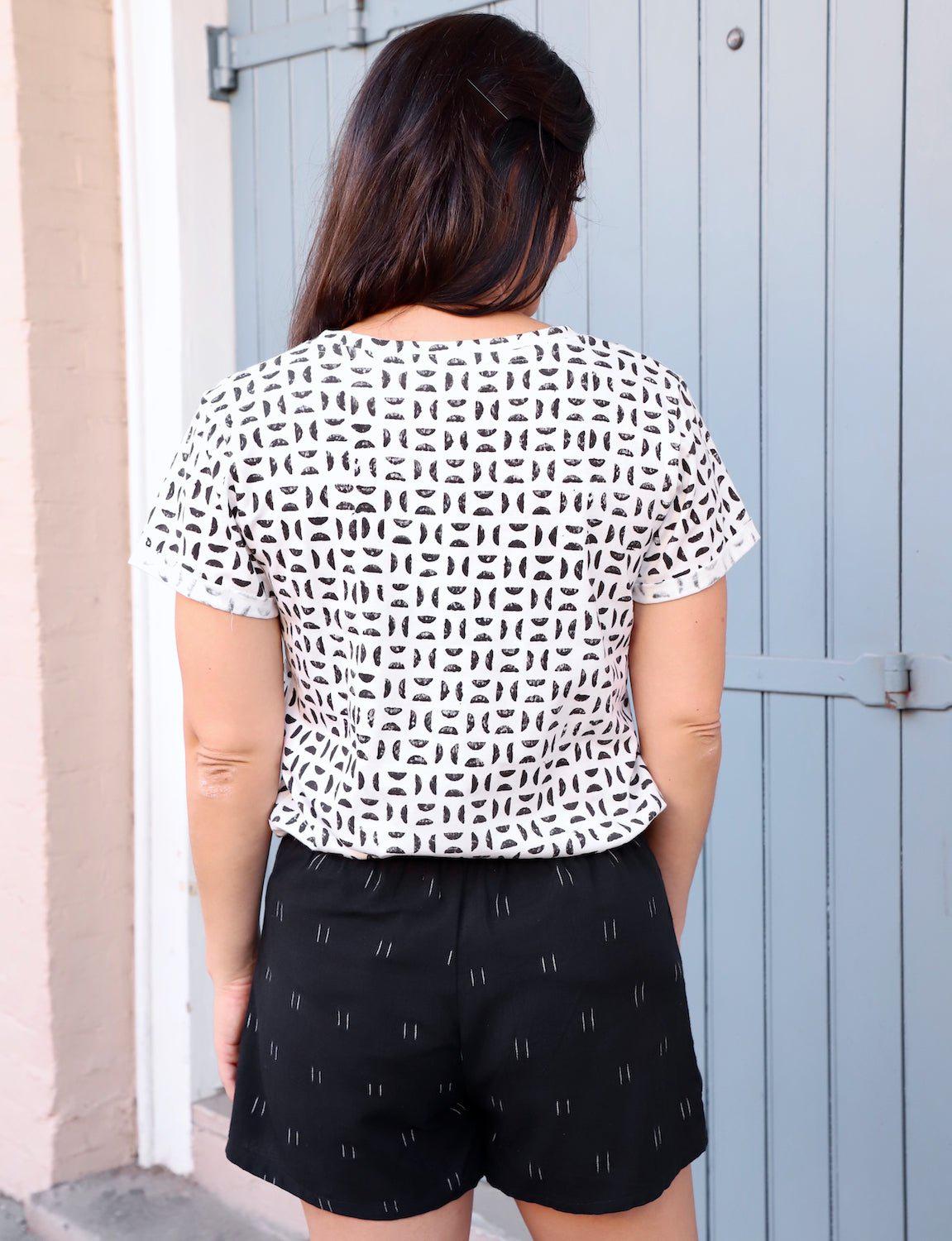 Dress them up or dress them down - these organic black shorts are ready for anything! This handwoven ikat fabric has white details that give these shorts a little something extra. The button front and hidden elastic waistband give these shorts the structure you need with the comfort you love in Passion Lilie clothes.