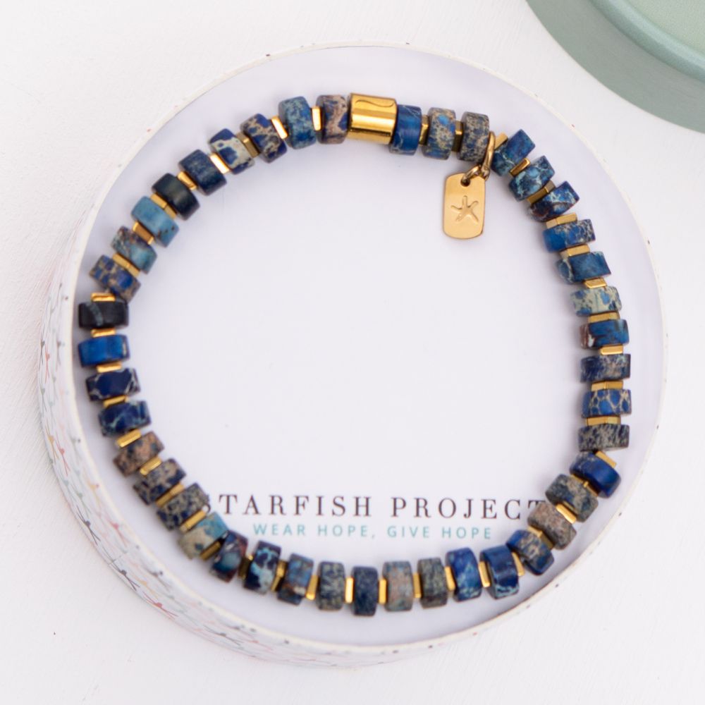 This gorgeous bracelet was made to add to your stack, yet it's also a perfect outfit-accenting pop of rich color if worn alone. The vibrant blue emperor stone paired with hematite beads makes a gorgeous statement.