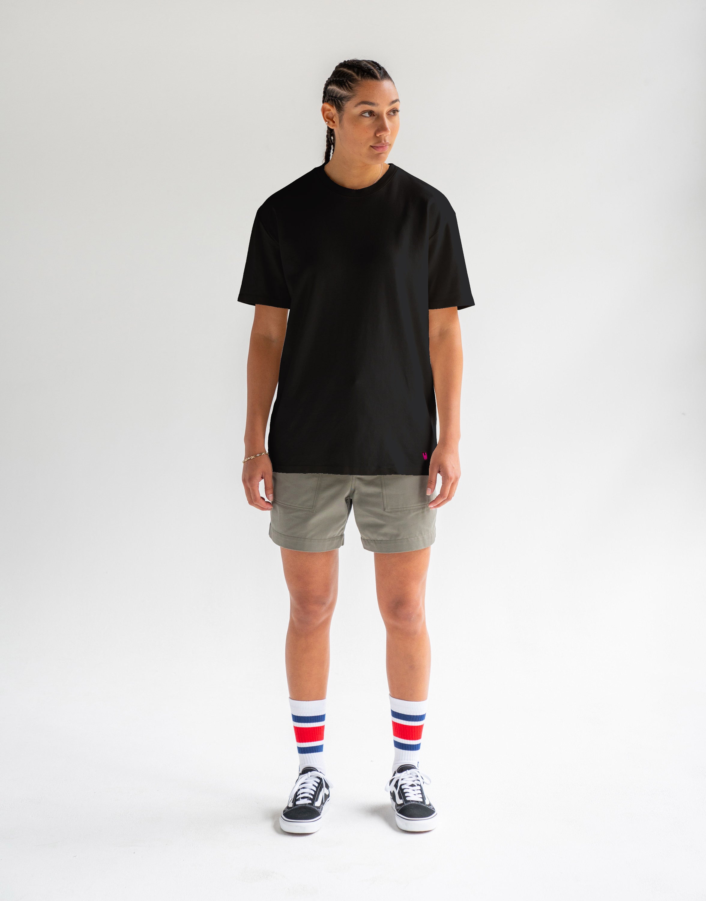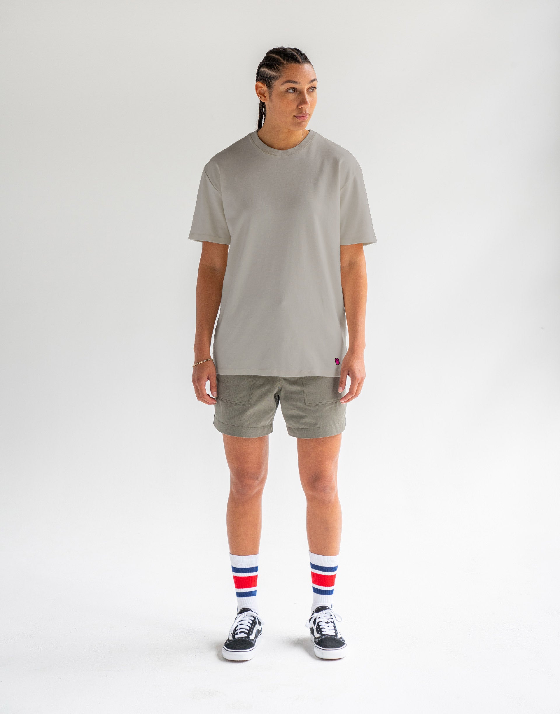 Created for a zero-plastic future, our 200 gsm regenerative Pima cotton is engineered for a comfortable drop-shoulder fit with a relaxed cut. Mechanical neck ribbing reinforces the natural shape, ensuring a consistent fit after wash and wear. Garment-dyed with rich, non-toxic, water-safe colors, the Essentials Tee uses nature to reinvent timeless style.