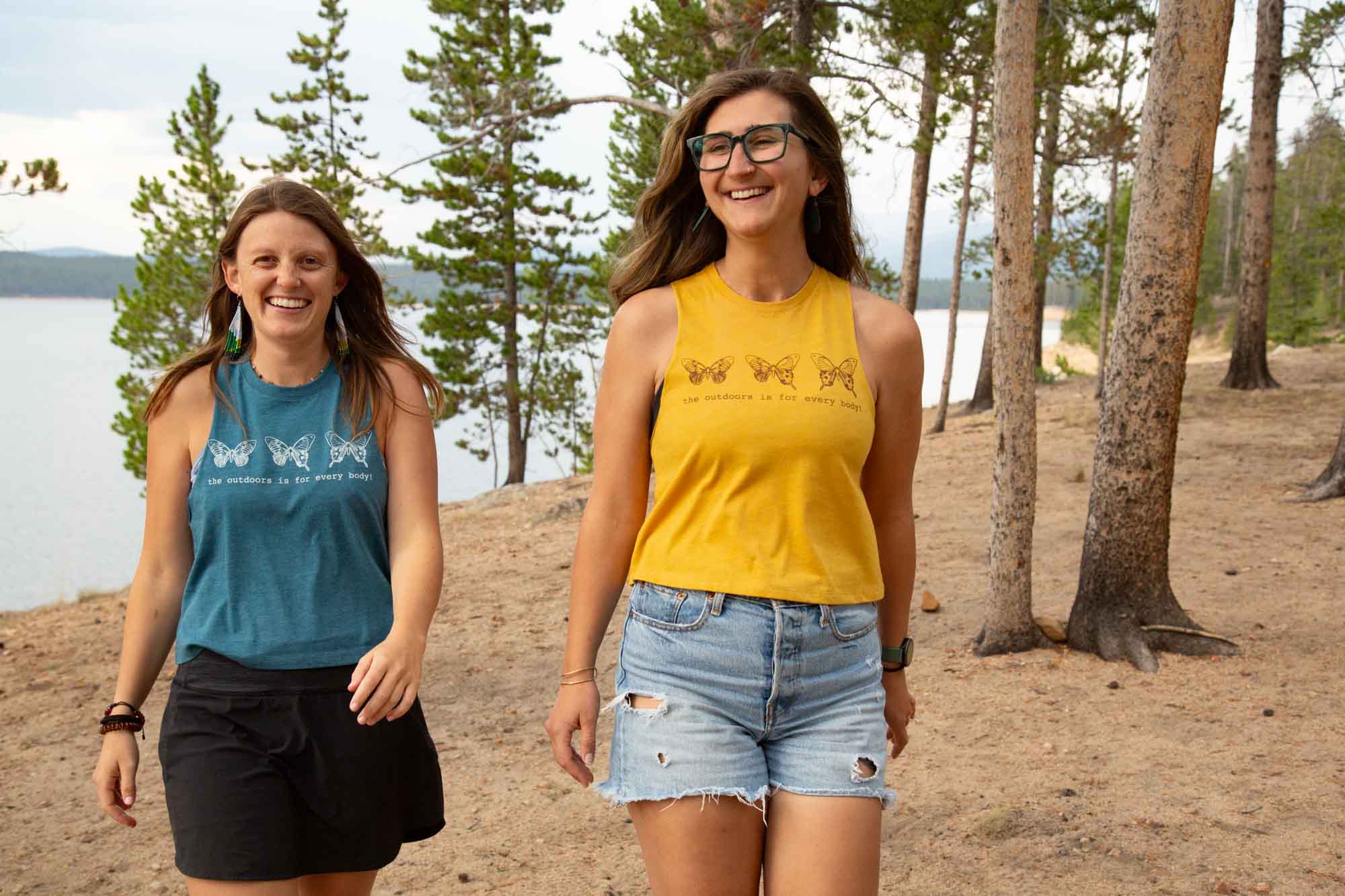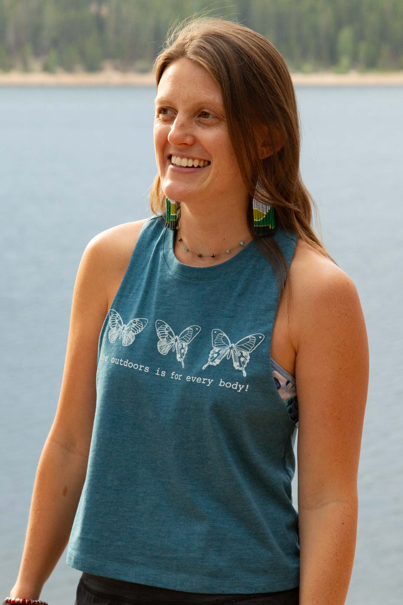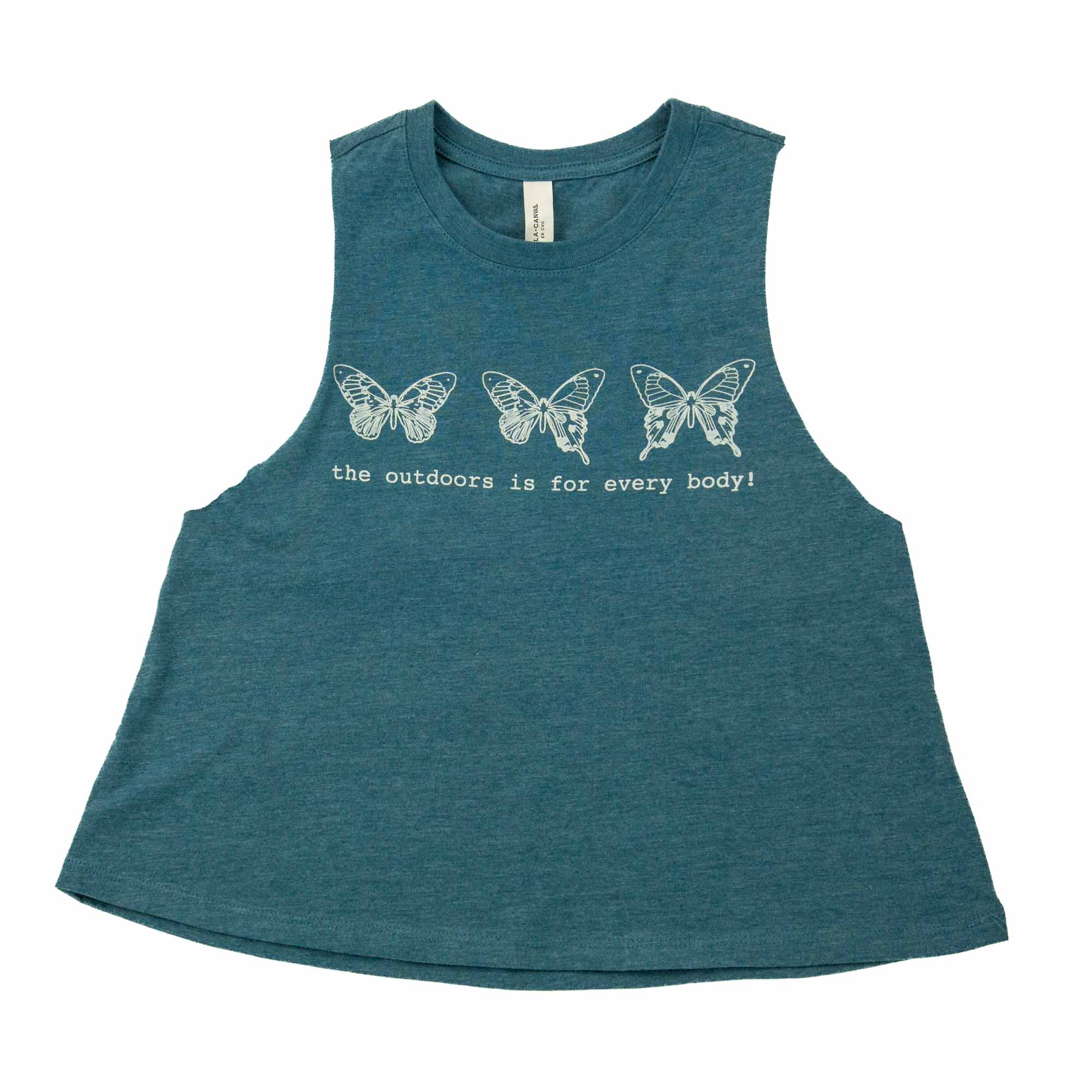 This lightweight cropped tank celebrates inclusivity on the trail with the message: “the outdoors is for every body.”