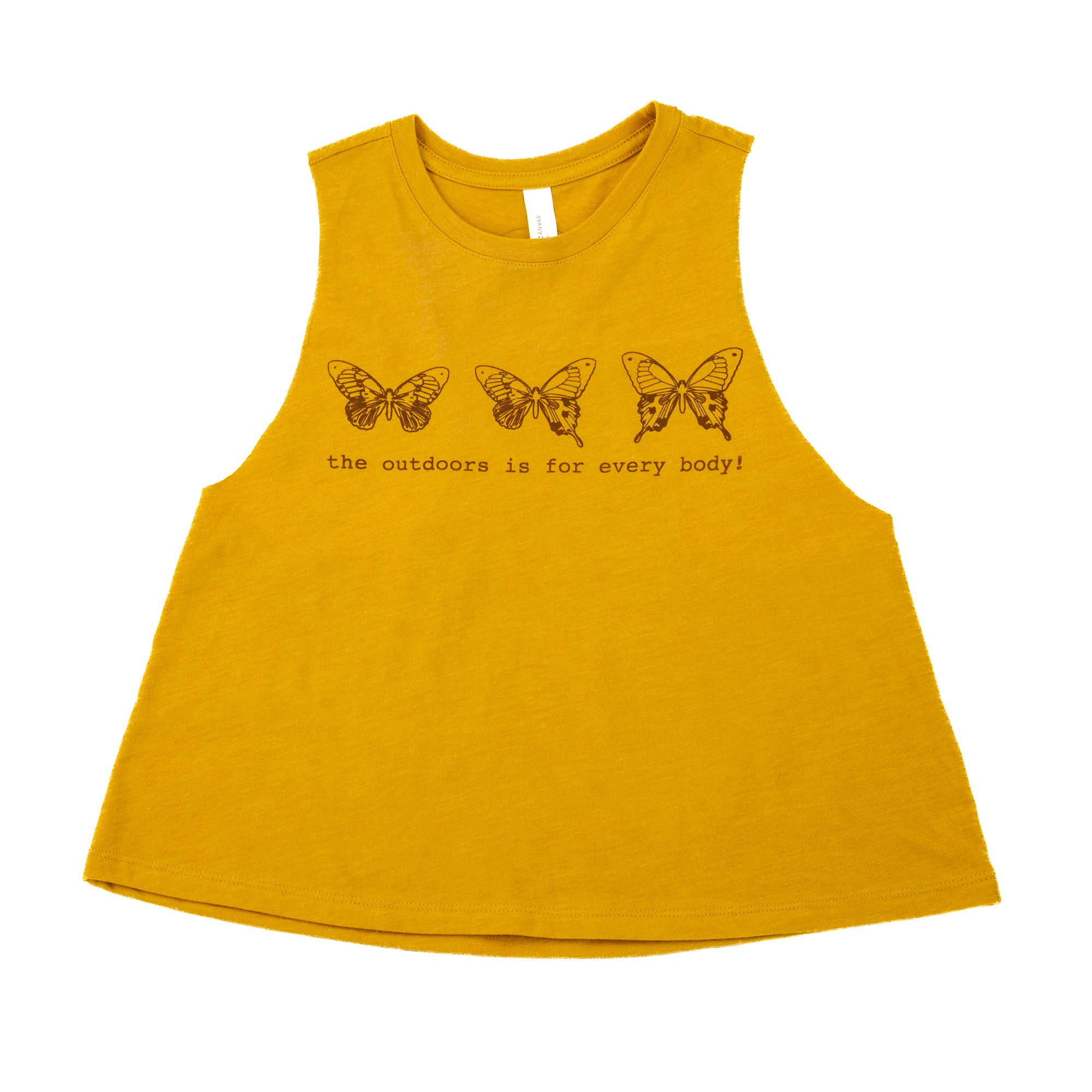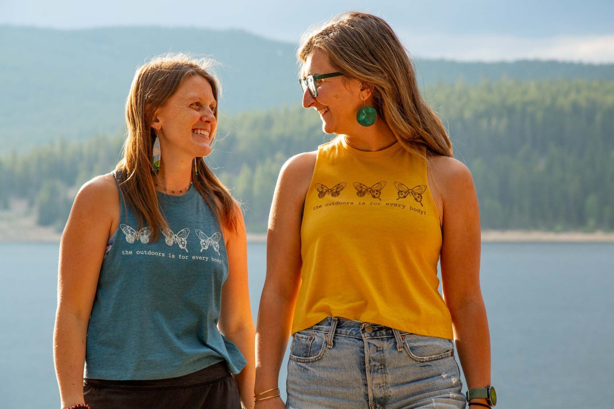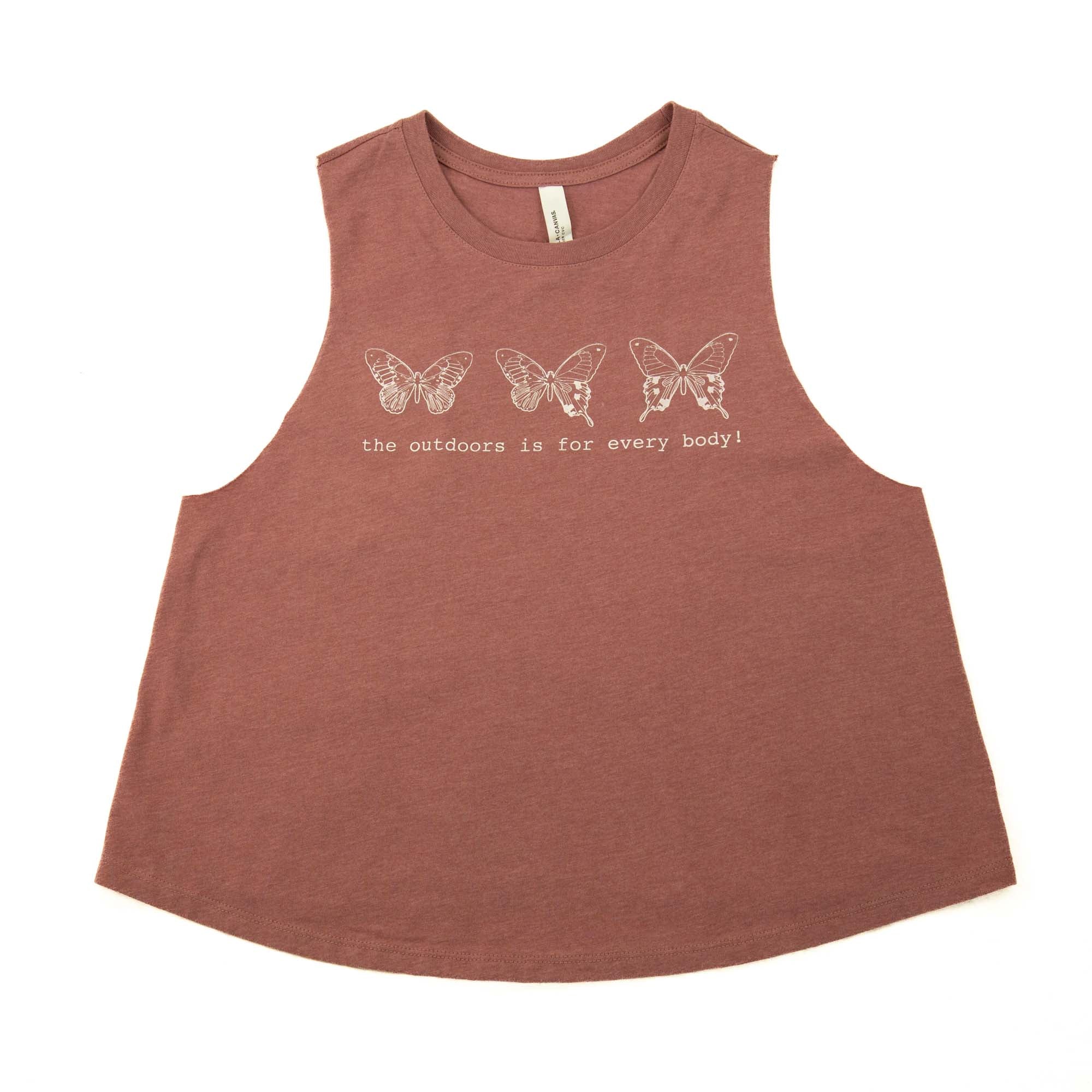 This lightweight cropped tank celebrates inclusivity on the trail with the message: “the outdoors is for every body.”